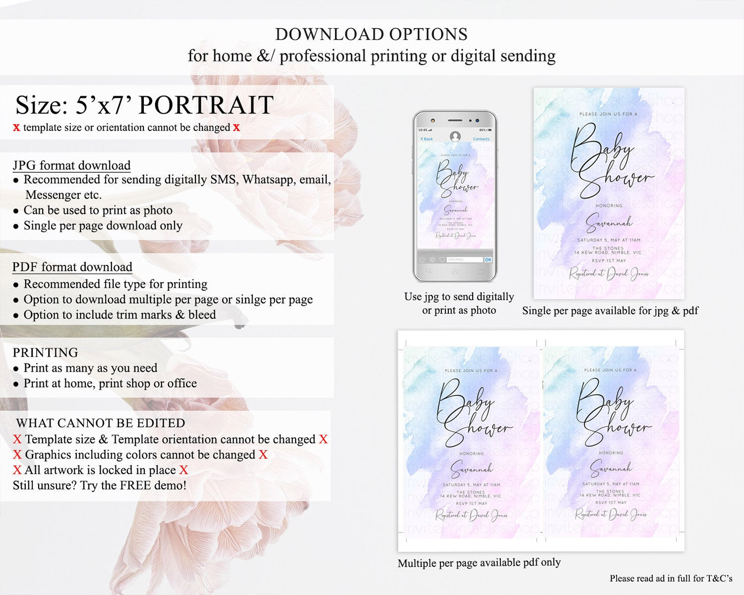 • Template size & orientation cannot be changed. Please use the demo link to confirm this product suits your needs.