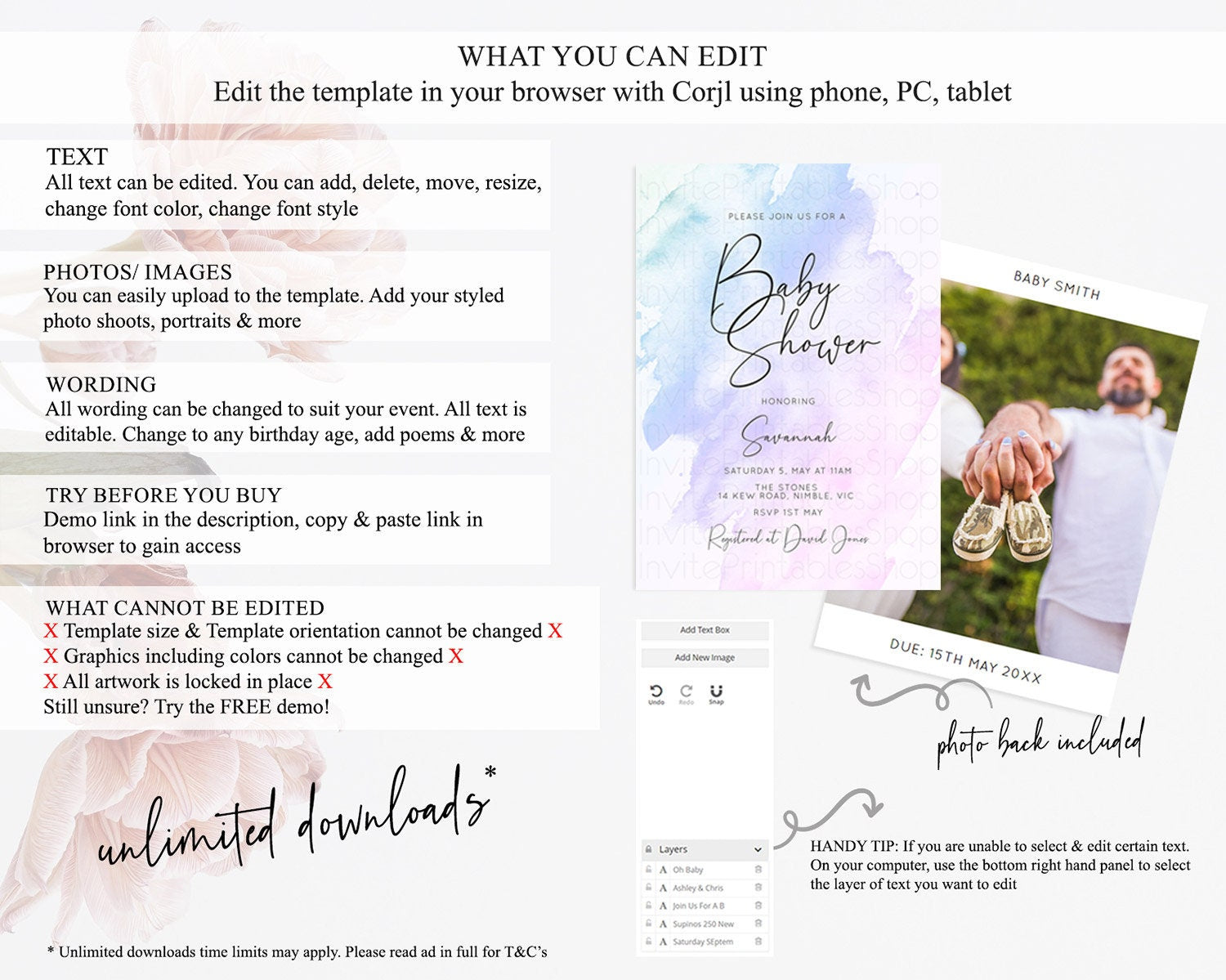 • After purchase, Corjl emails your editing link. Allow up to 15 minutes for delivery.