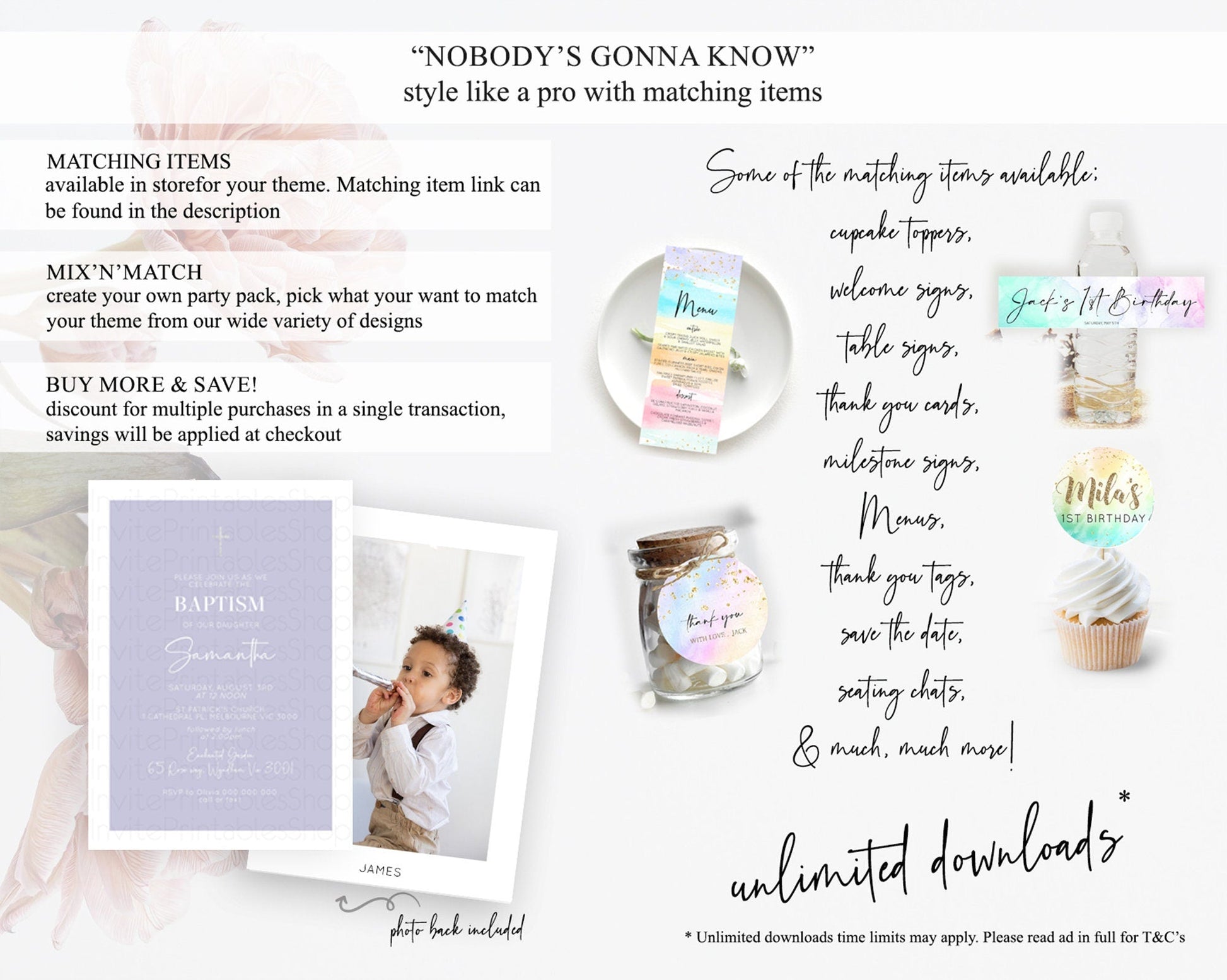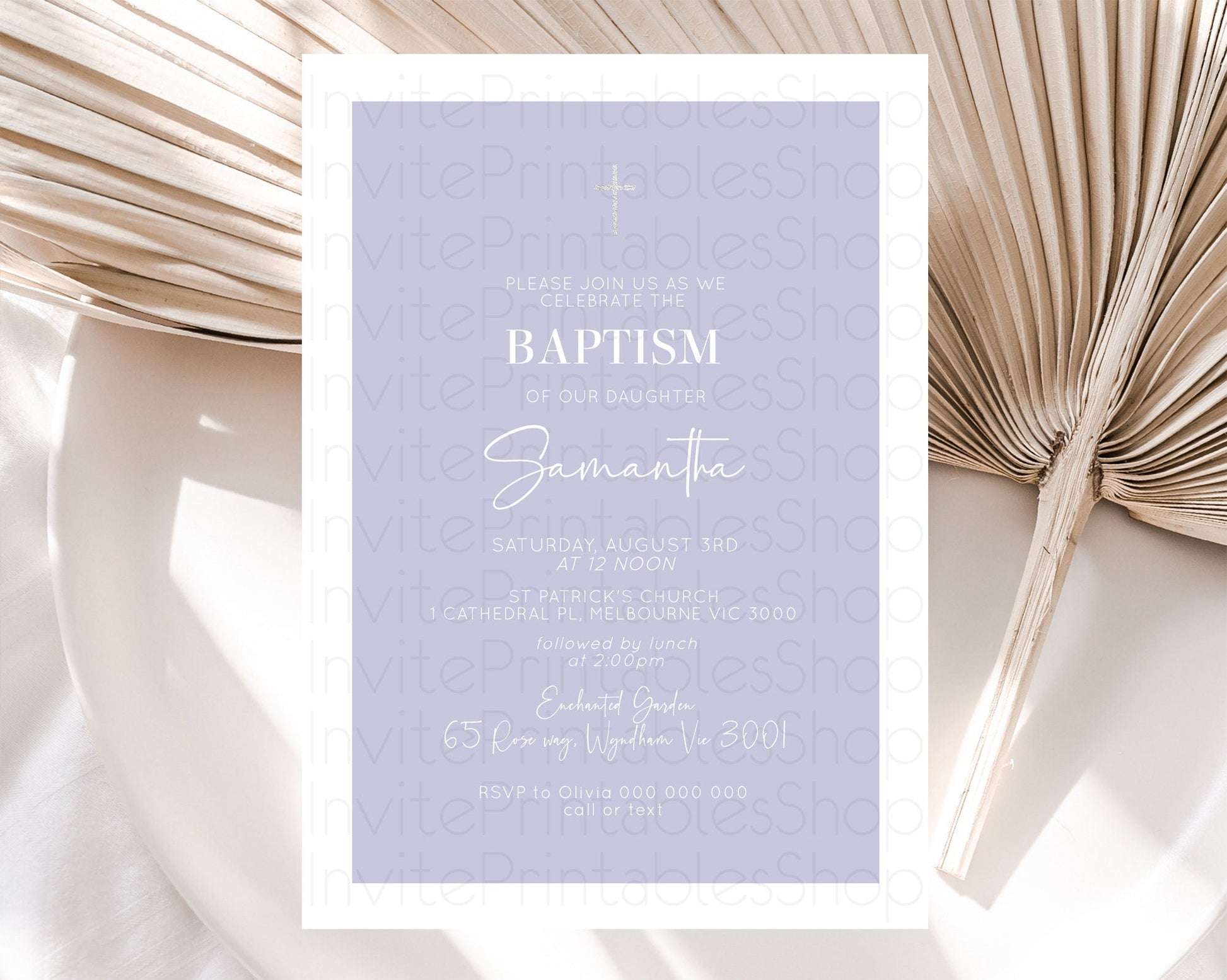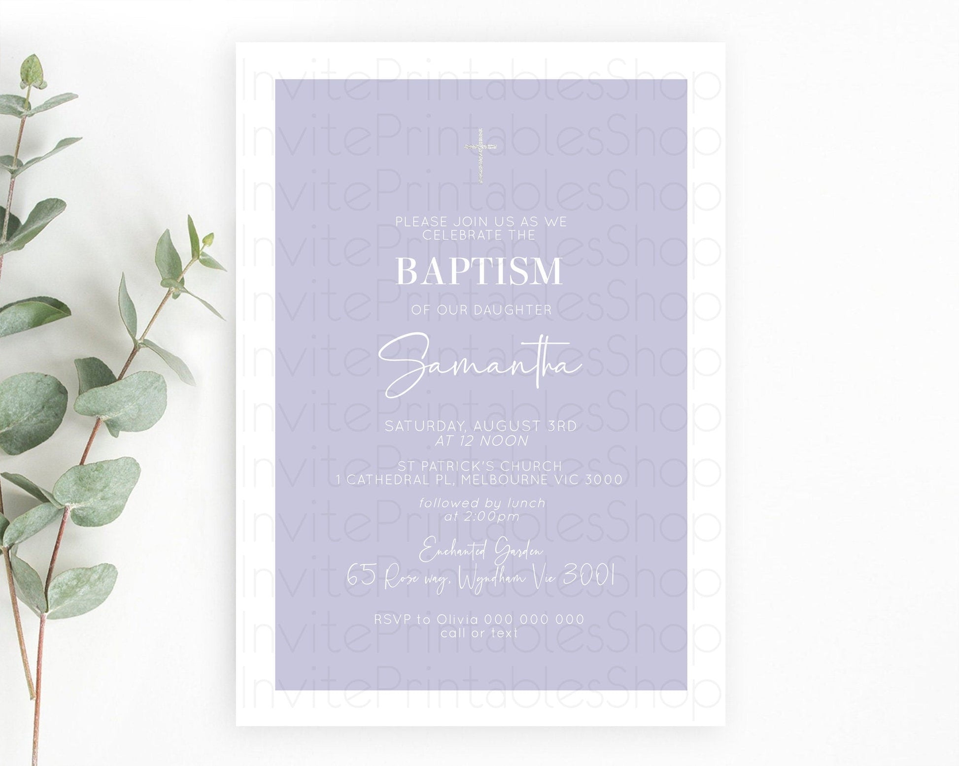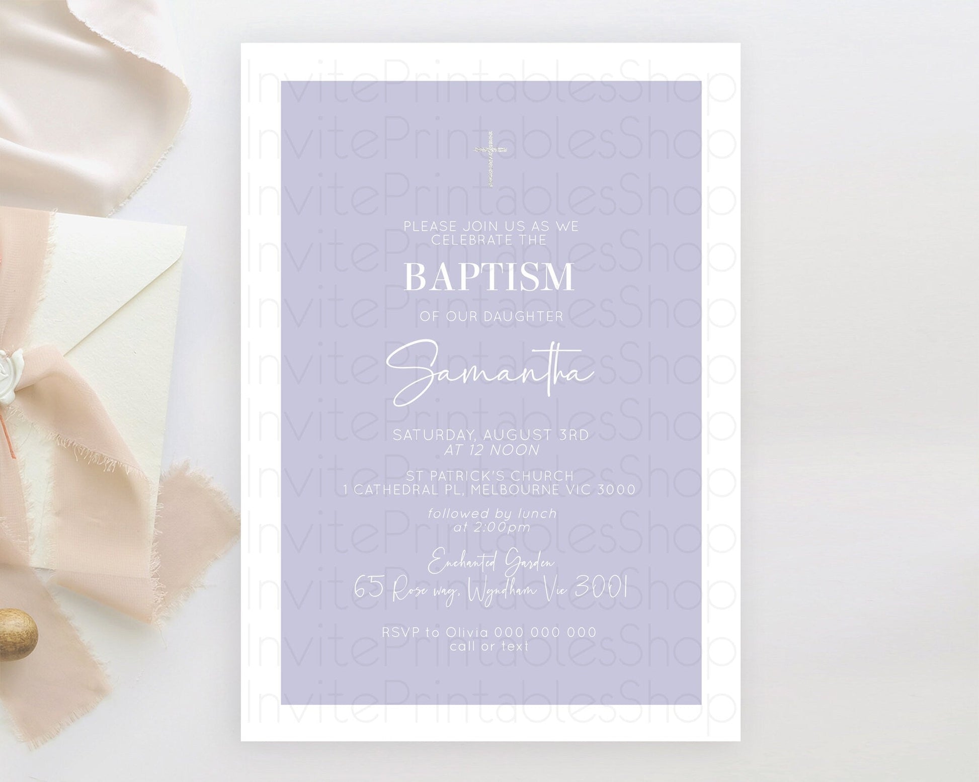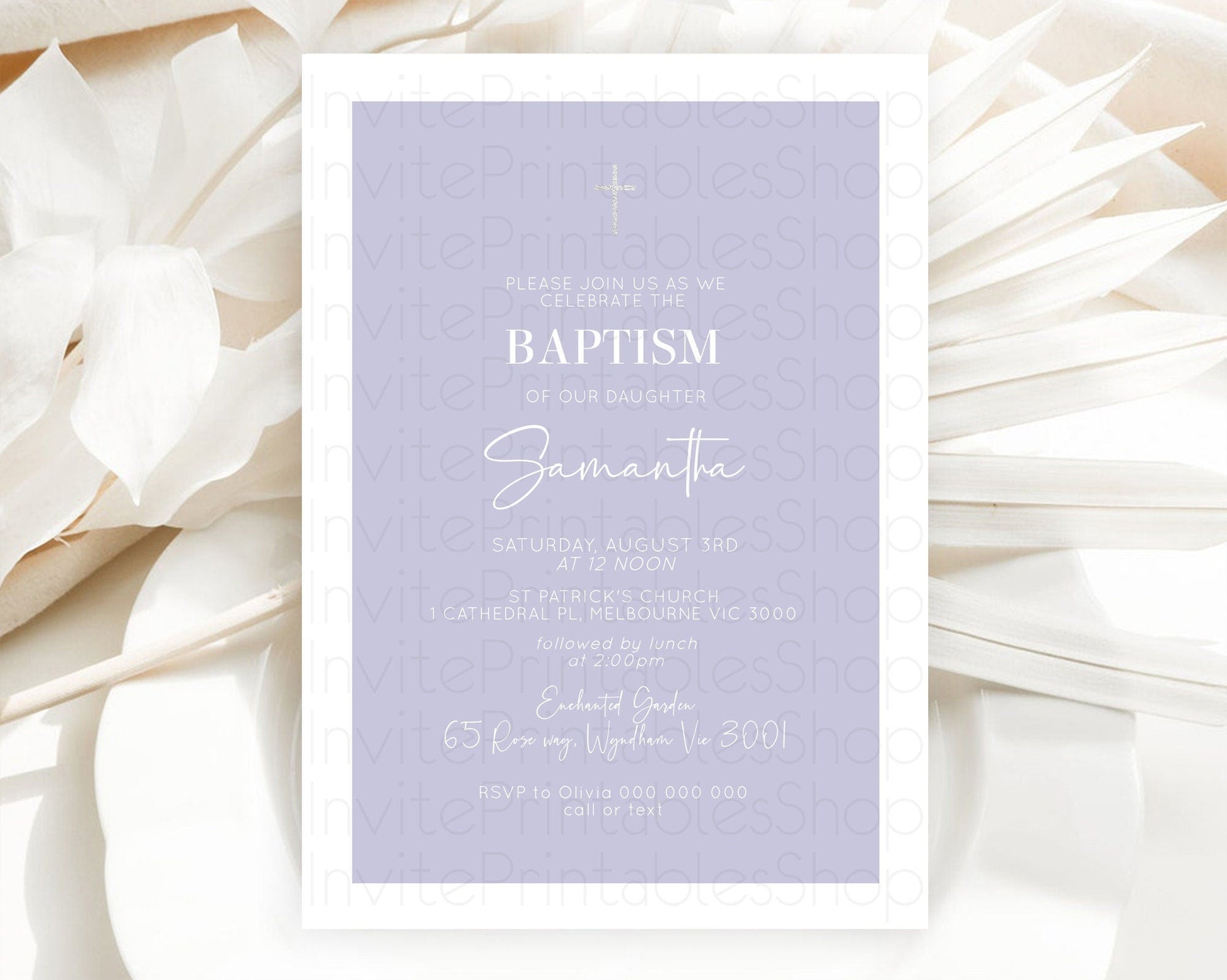 Purple Baptism Invitation Plain Purple Baptism 1st Birthday Invitation Minimalist Pastel Purple Christening Invite Holy Communion D10942