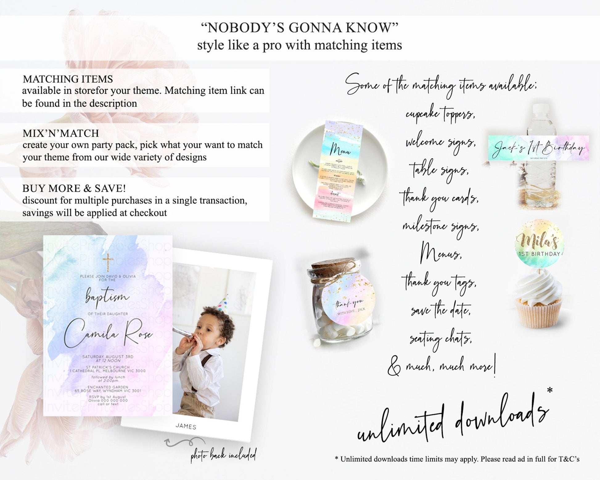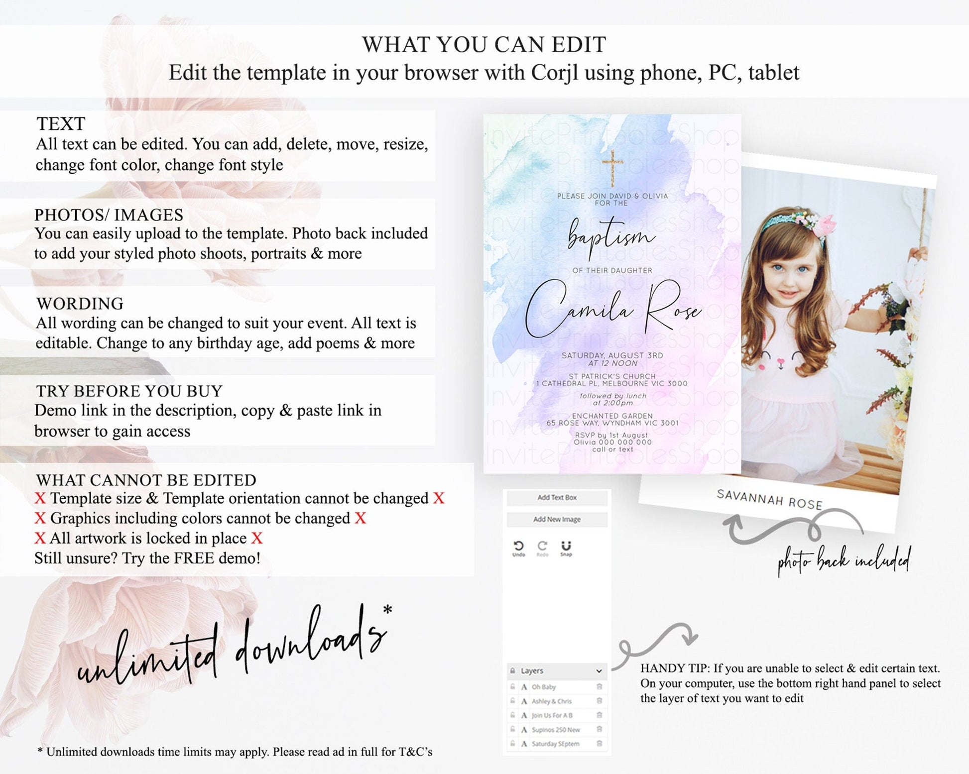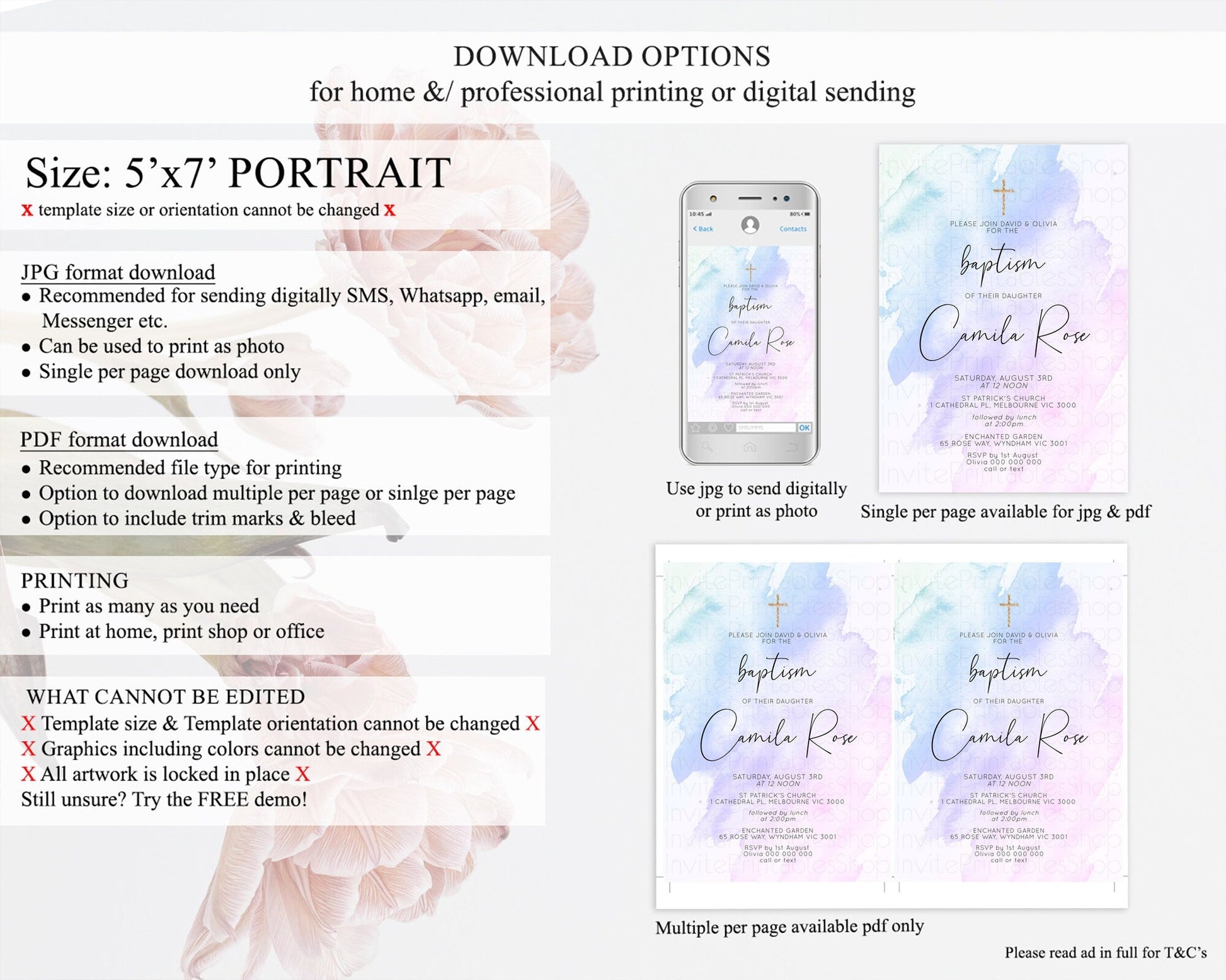 Purple Baptism Invitation Purple Watercolor Baptism Birthday Invitation Pastel Purple Watercolor Christening Invite Purple Splash D10165