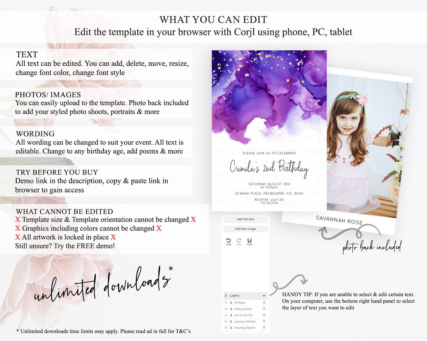 • After purchase, Corjl emails your editing link. Allow up to 15 minutes for delivery.