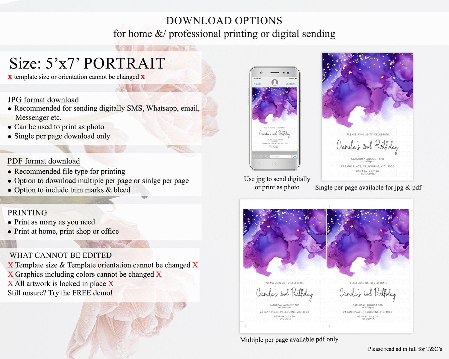 • Template size & orientation cannot be changed. Please use the demo link to confirm this product suits your needs.