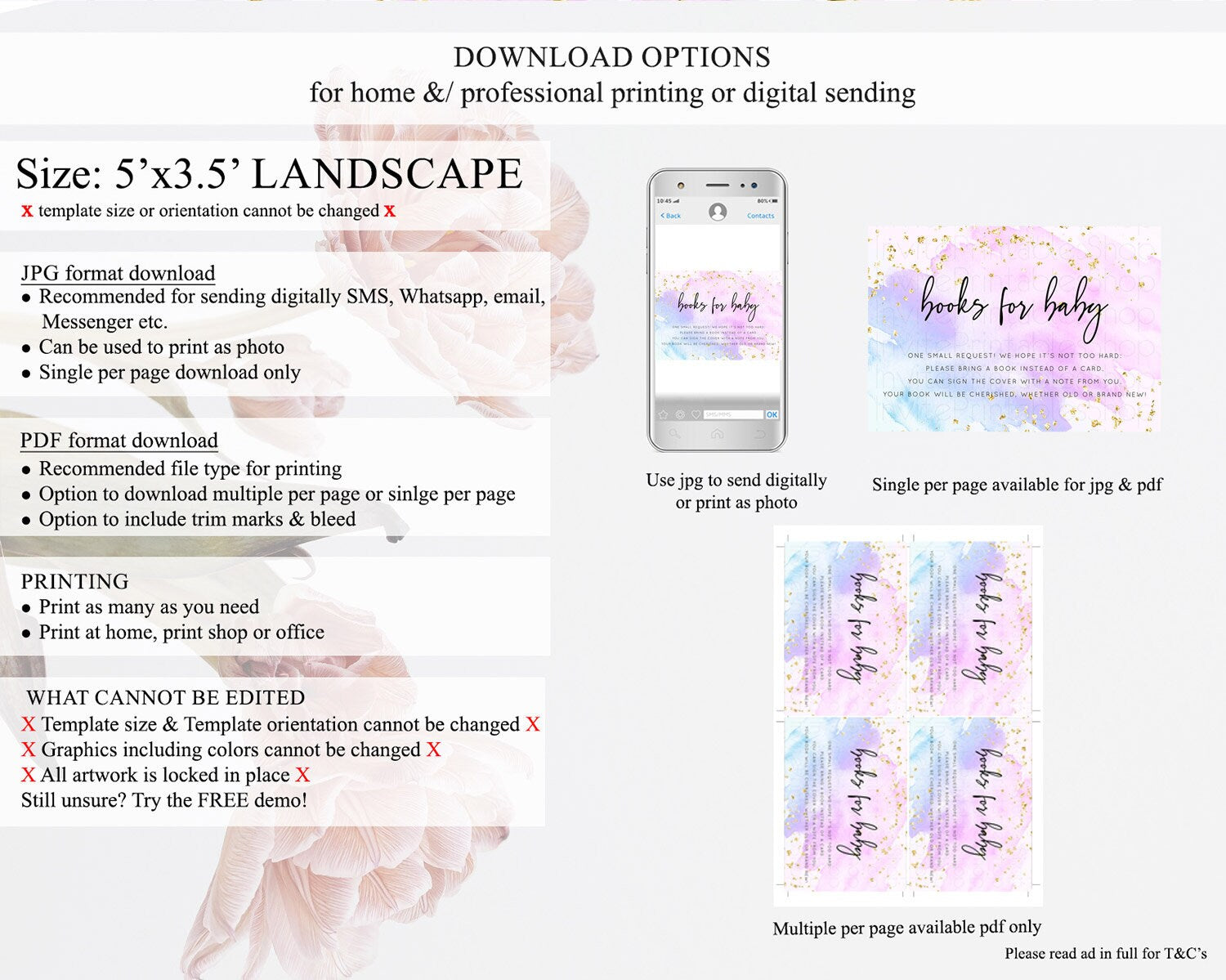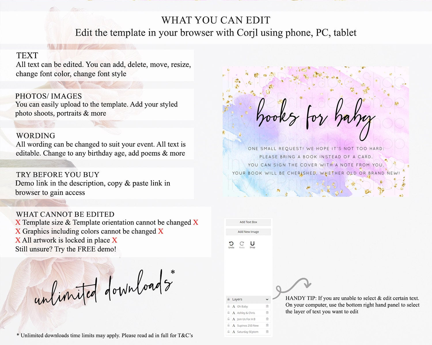 Purple Books For Baby Card Watercolor Book Insert Pastel Purple Baby Shower Book Card Purple Watercolor Guests Book Poem Request D10169