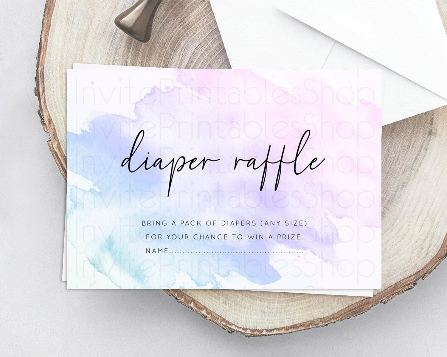 Purple Diaper Raffle Card Watercolor Diaper Raffle Insert Pastel Purple Baby Shower Diaper Ticket Purple Watercolor Raffle Game D10165