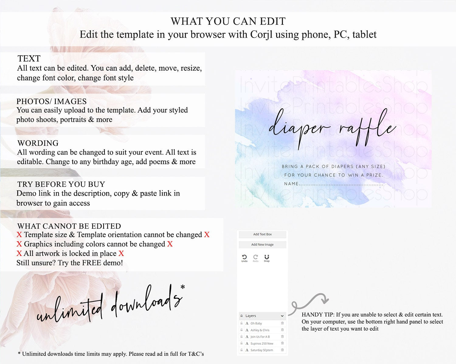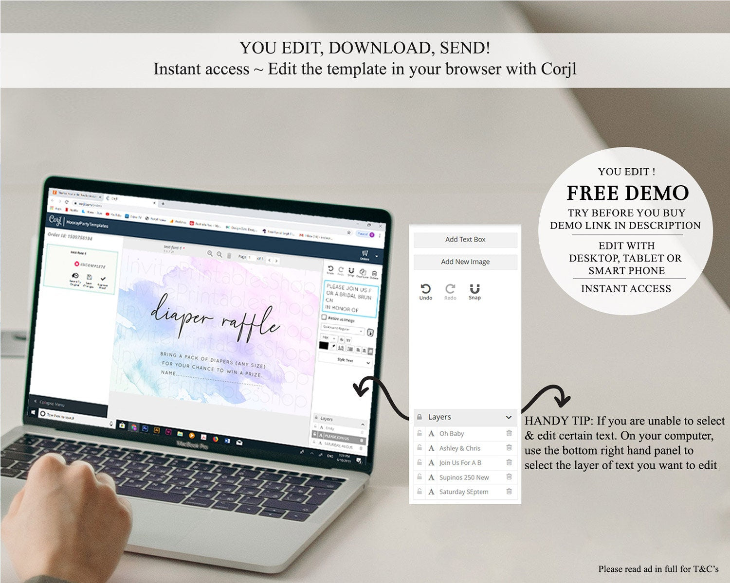 • After purchase, Corjl emails your editing link. Allow up to 15 minutes for delivery.