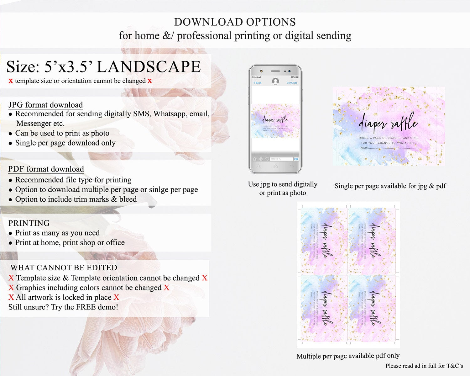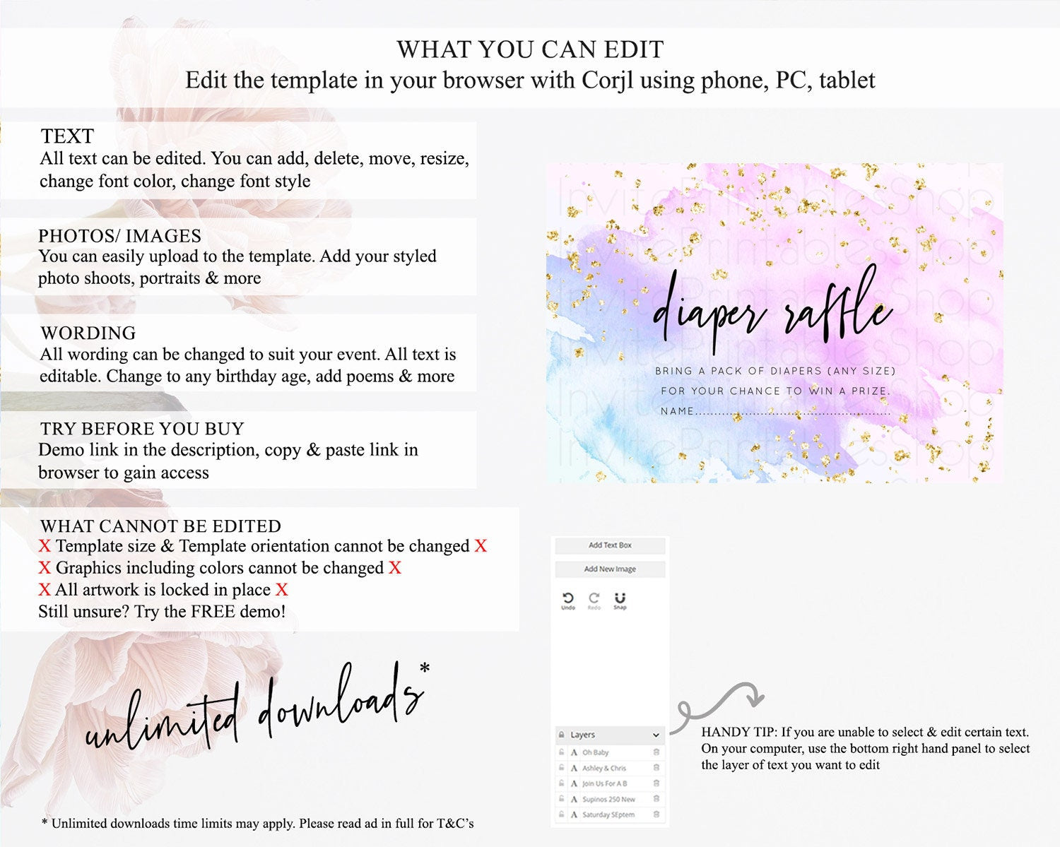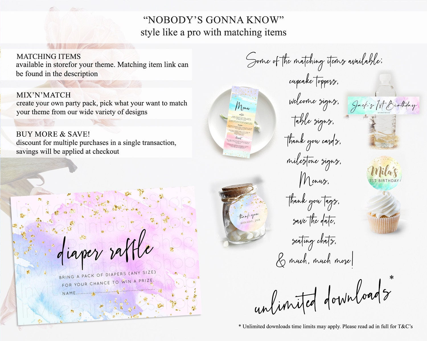 Purple Diaper Raffle Card Watercolor Diaper Raffle Insert Pastel Purple Baby Shower Diaper Ticket Purple Watercolor Raffle Game D10169