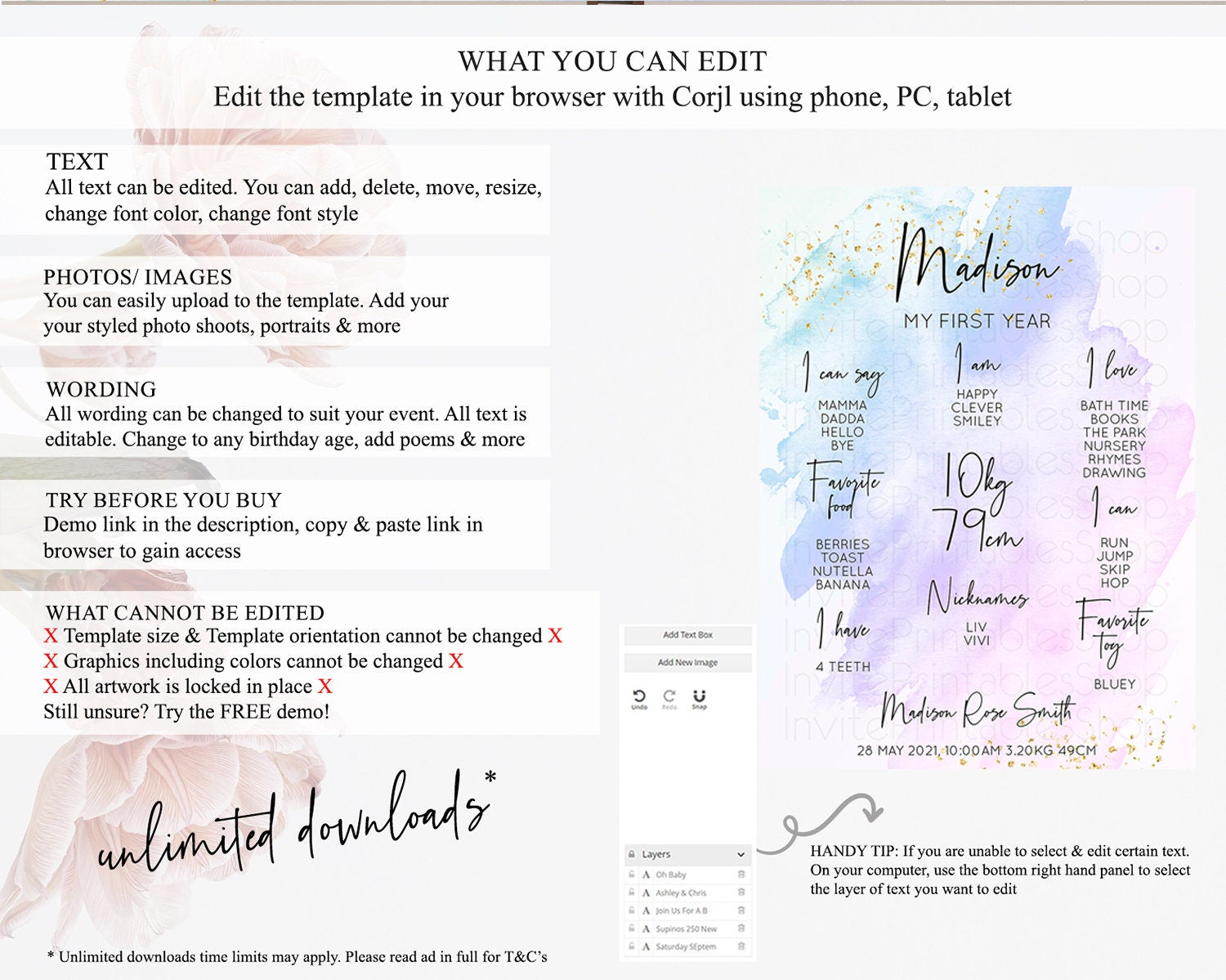 • After purchase, Corjl emails your editing link. Allow up to 15 minutes for delivery.