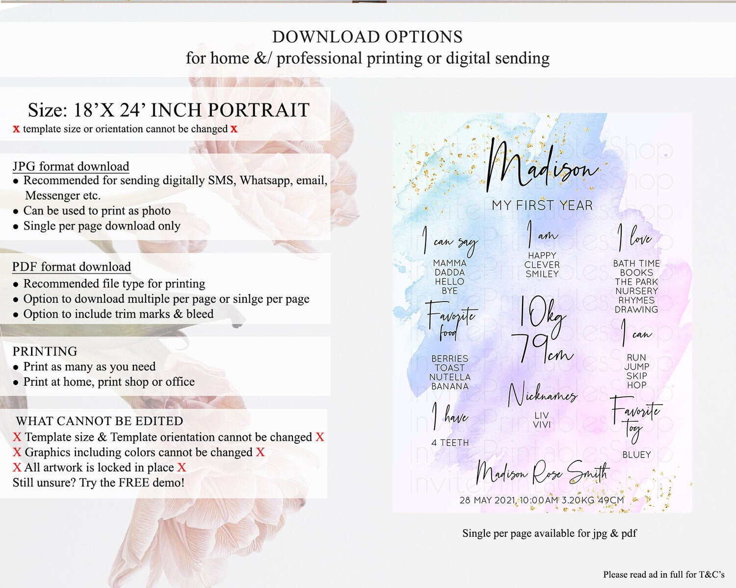 • Template size & orientation cannot be changed. Please use the demo link to confirm this product suits your needs.