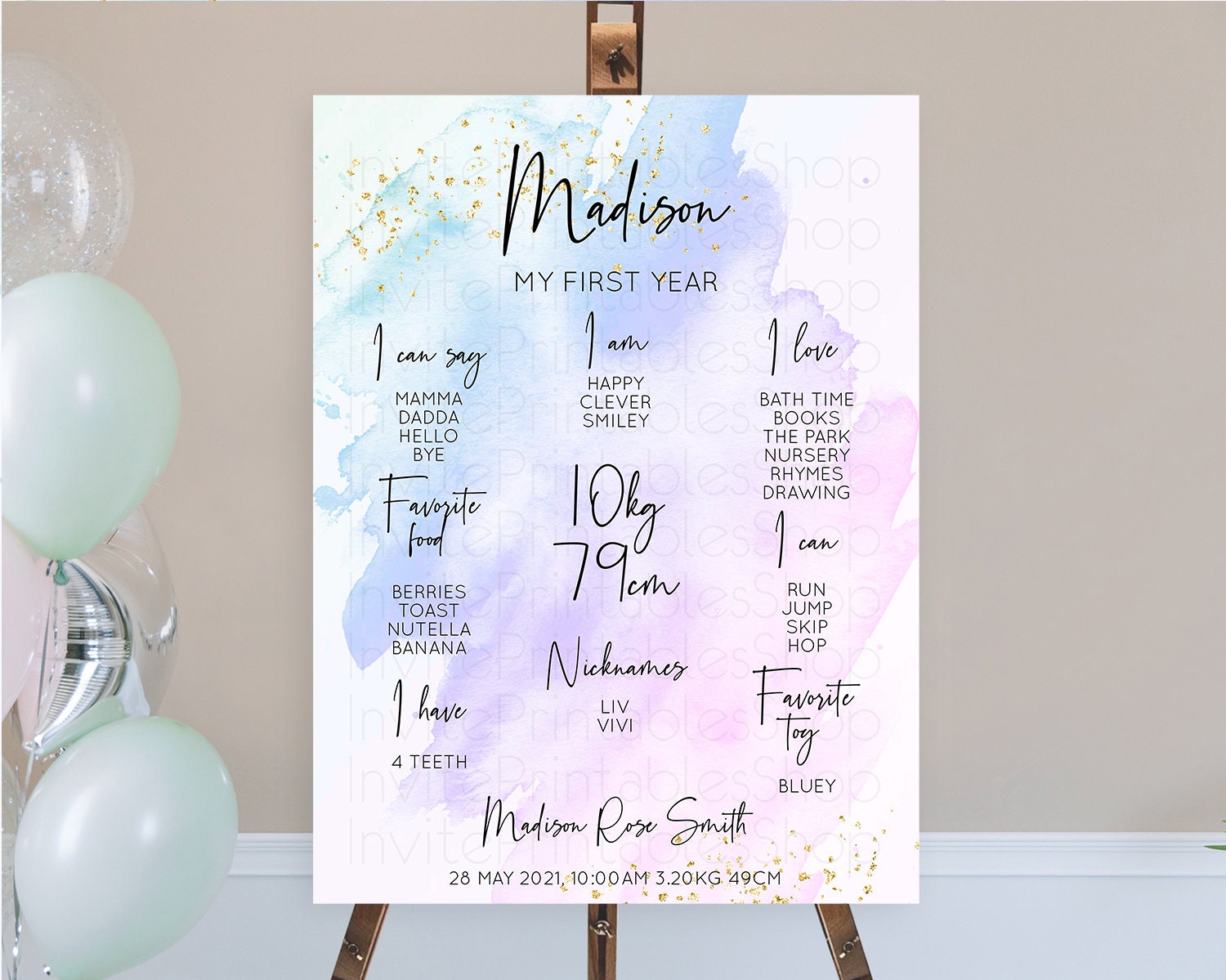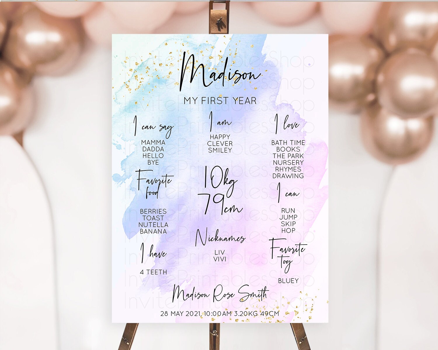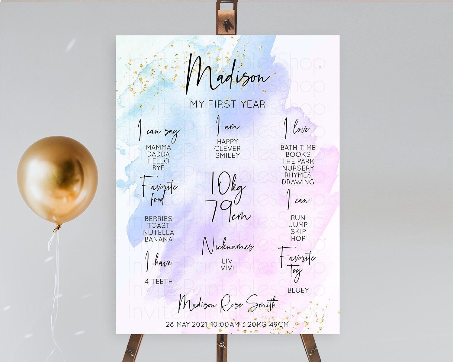 Purple First Birthday Milestone Poster Purple Watercolor Milestone Board Pastel Purple Watercolor Splash Milestone Sign 1st Birthday D10169