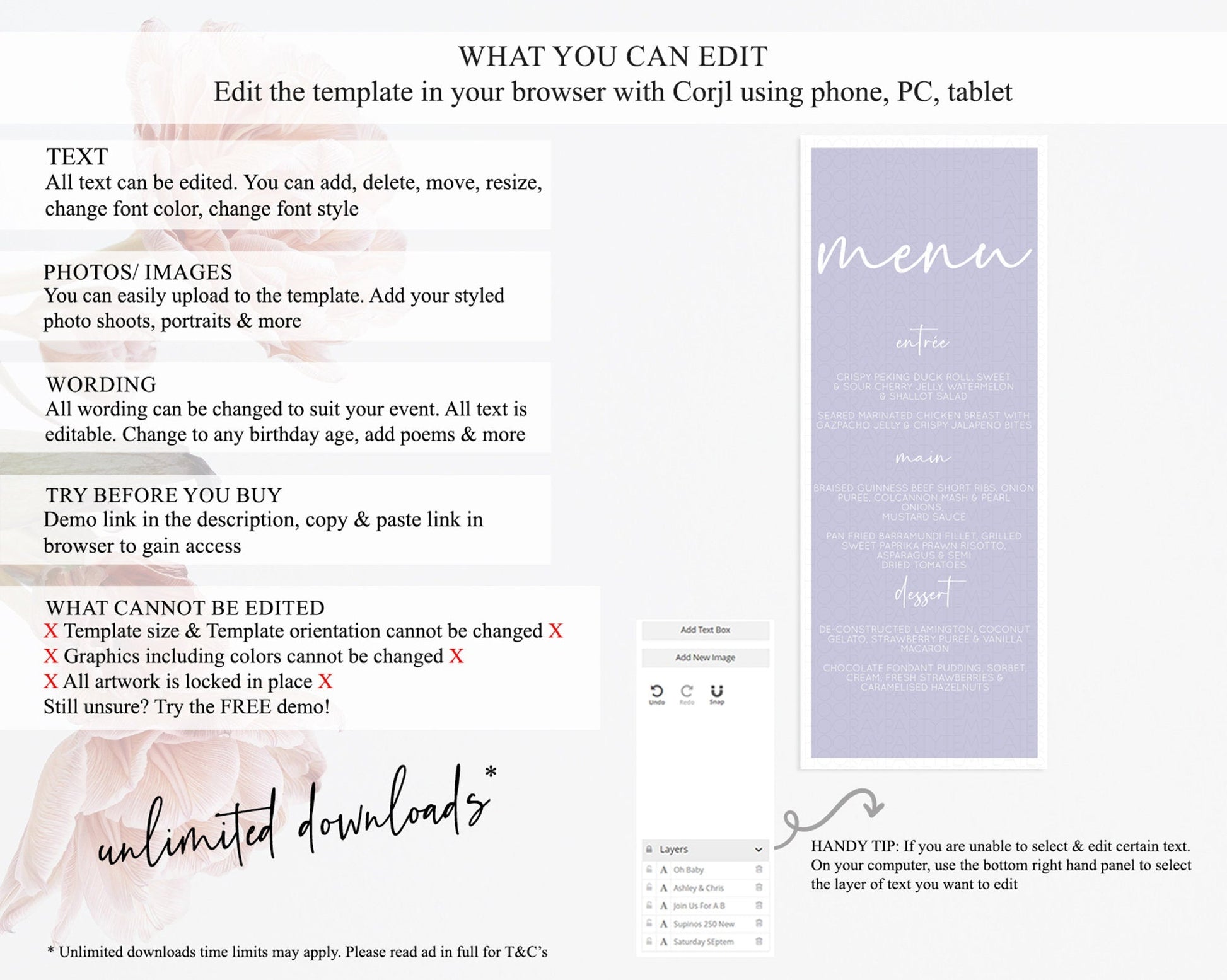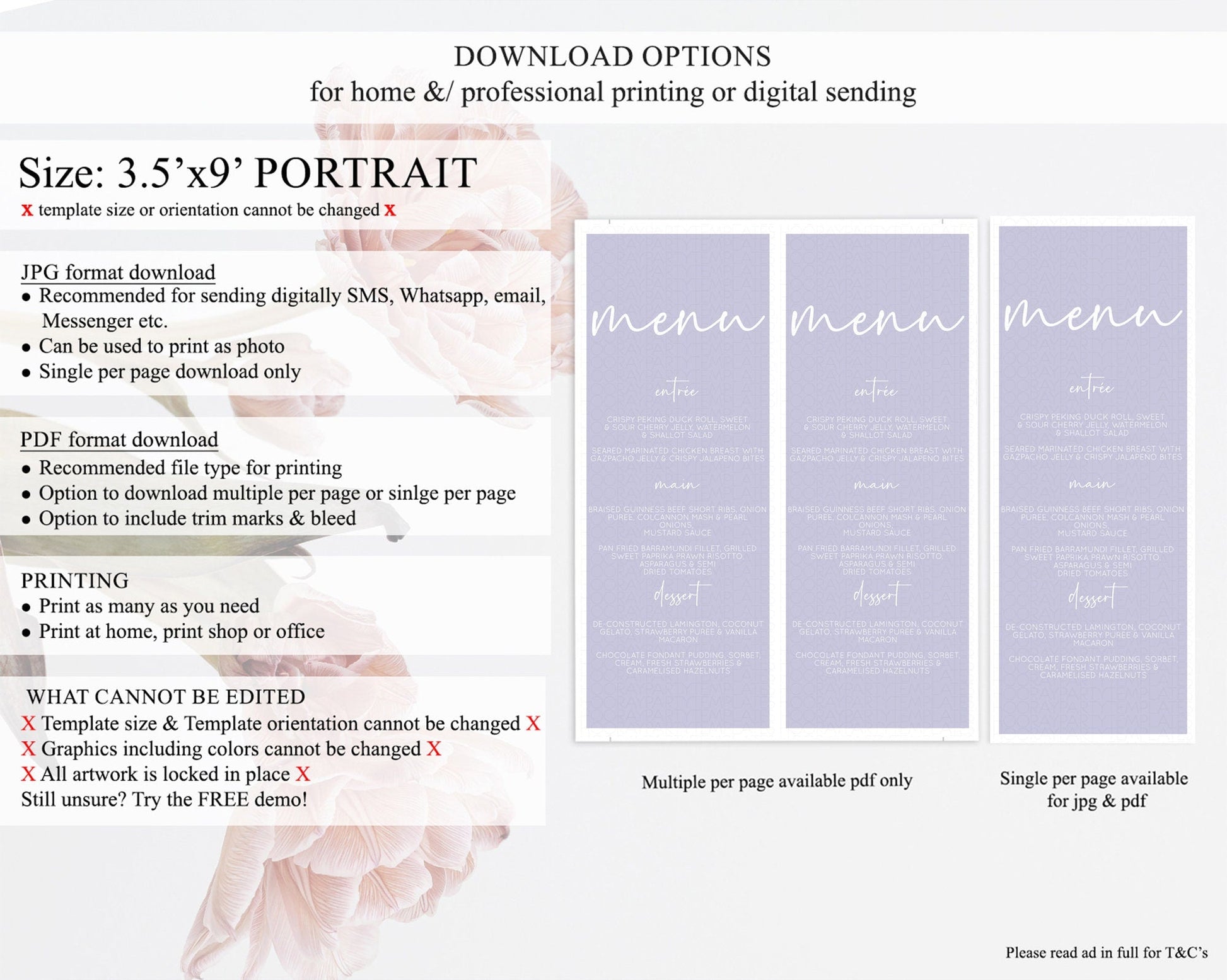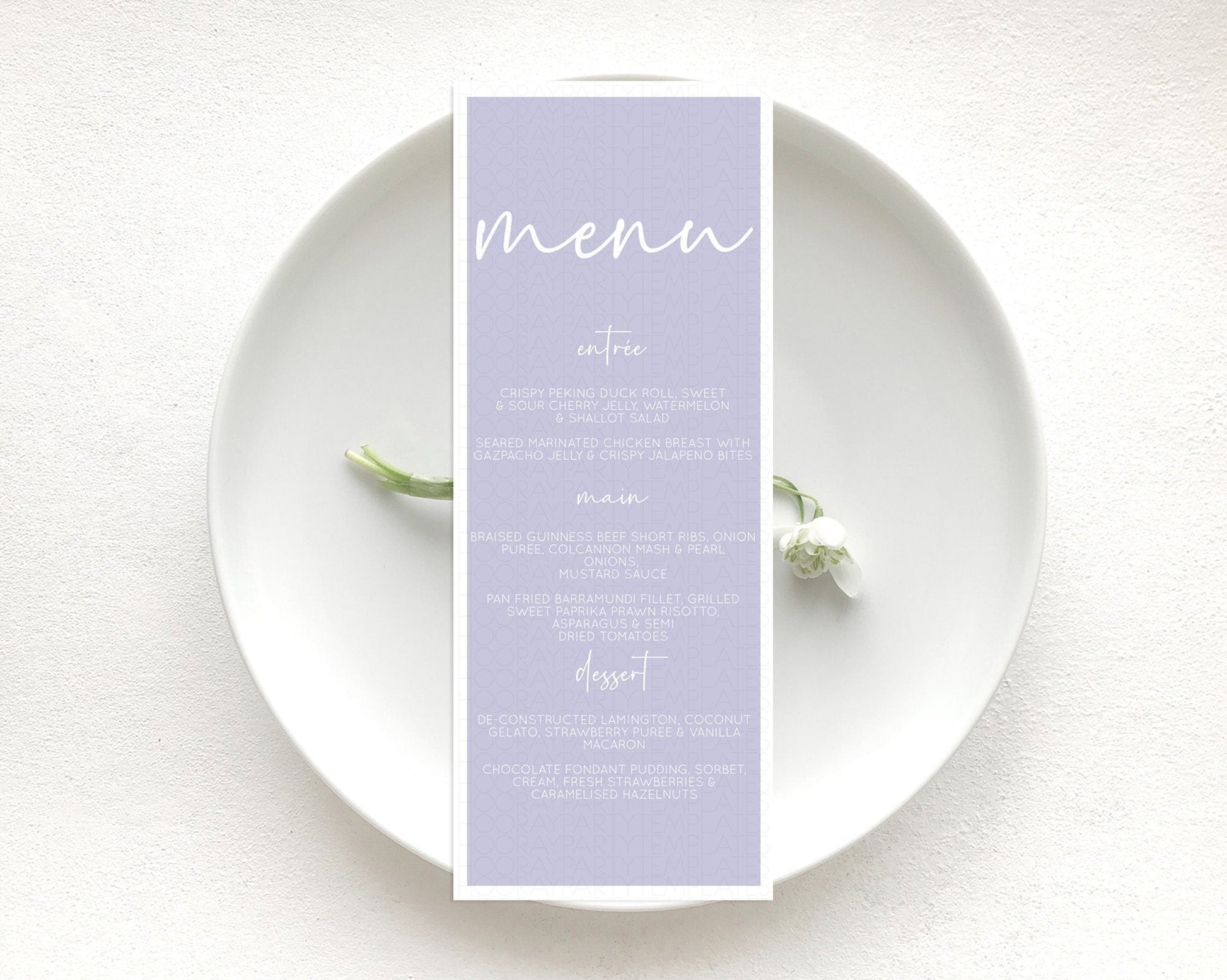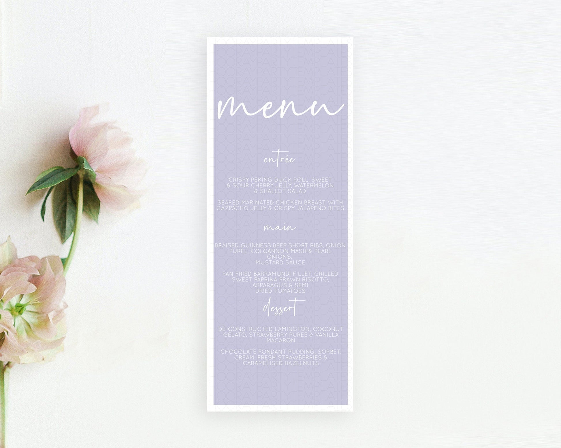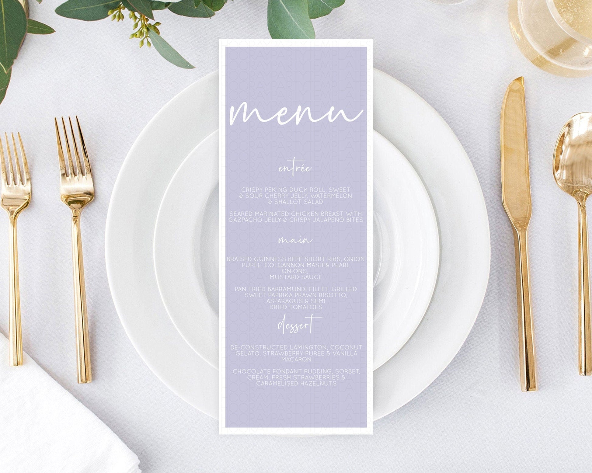 Purple Menu Pastel Purple Menu Template Purple Minimal Table Decor Modern Purple Menu Simple Purple Dinner Dessert Menu Food Menu D10942