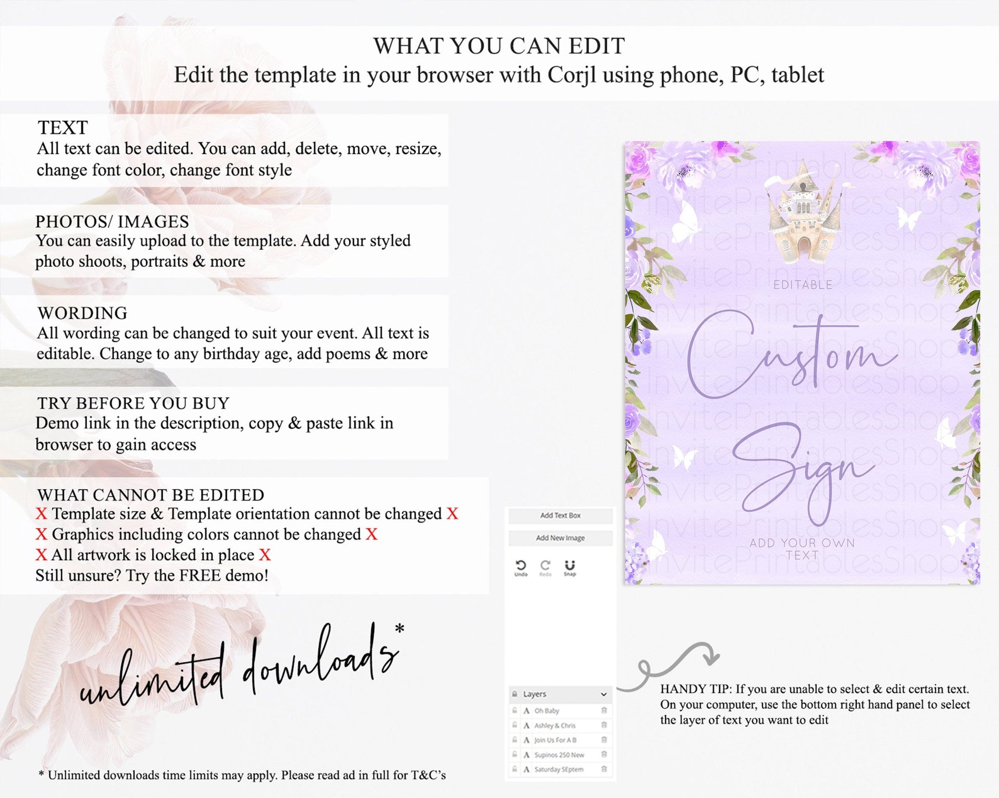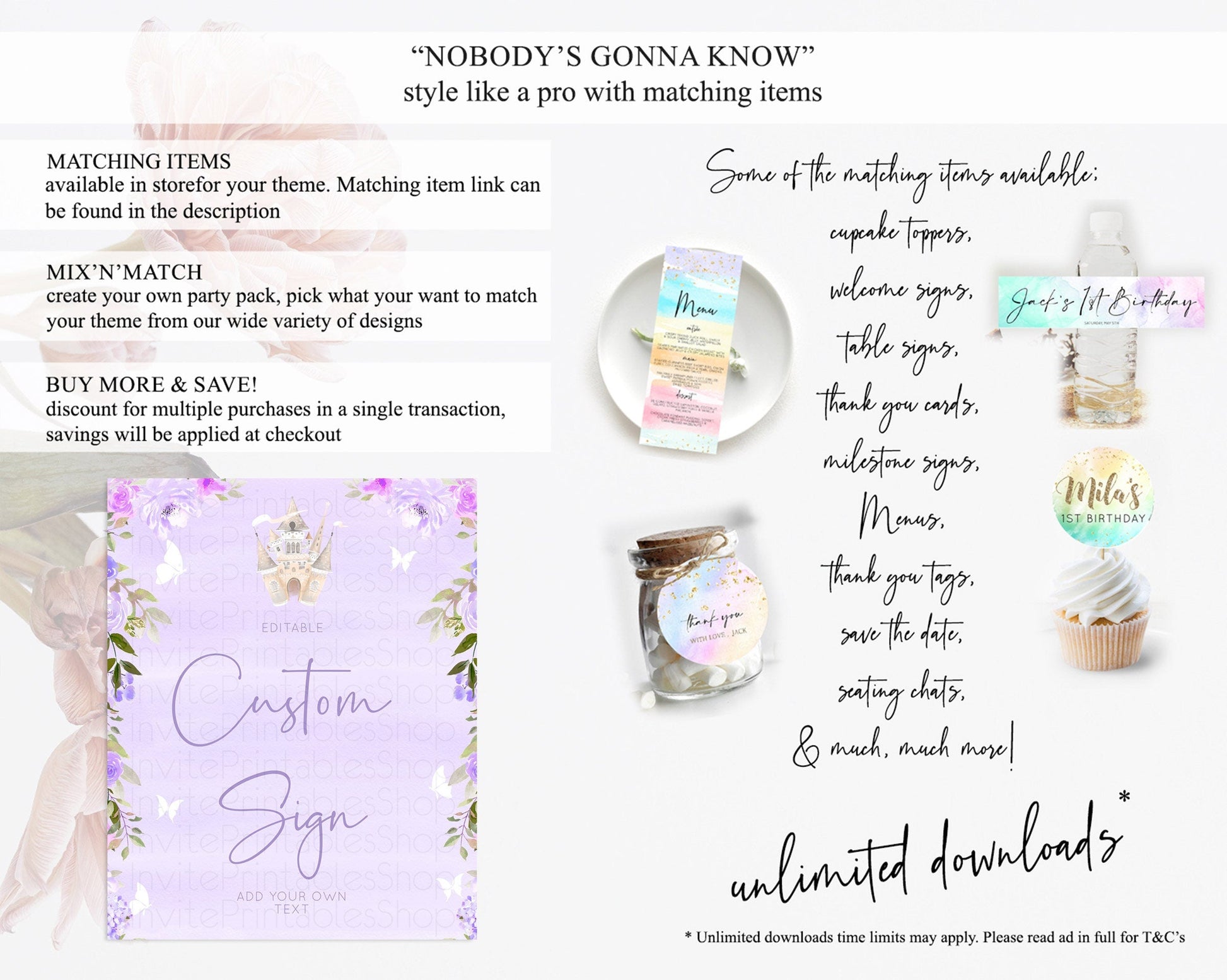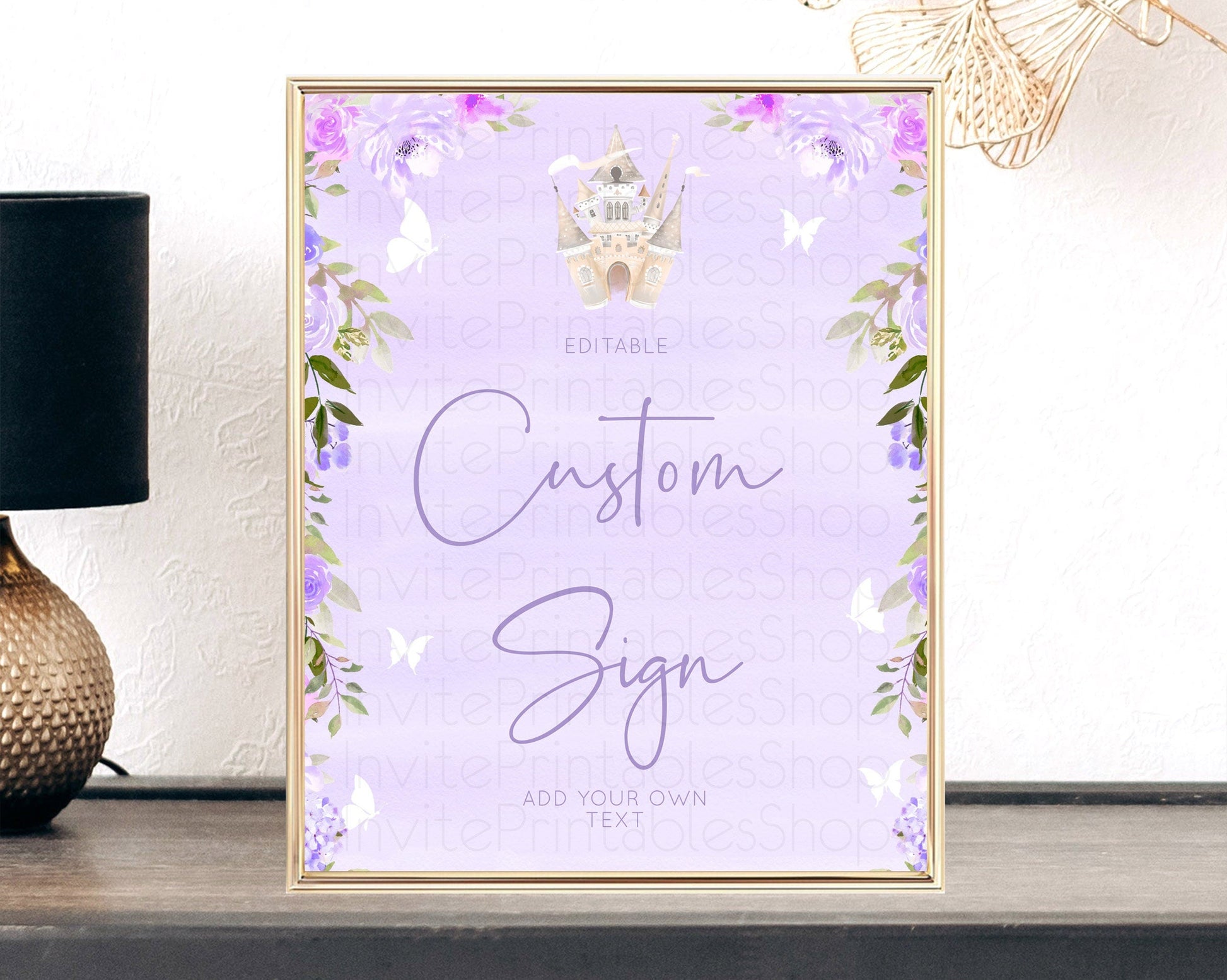 Purple Princess Party Table Sign Decor Secret Garden Enchanted Castle Pastel Floral Royal Party For 1st Birthday Baptism Baby Shower D10339