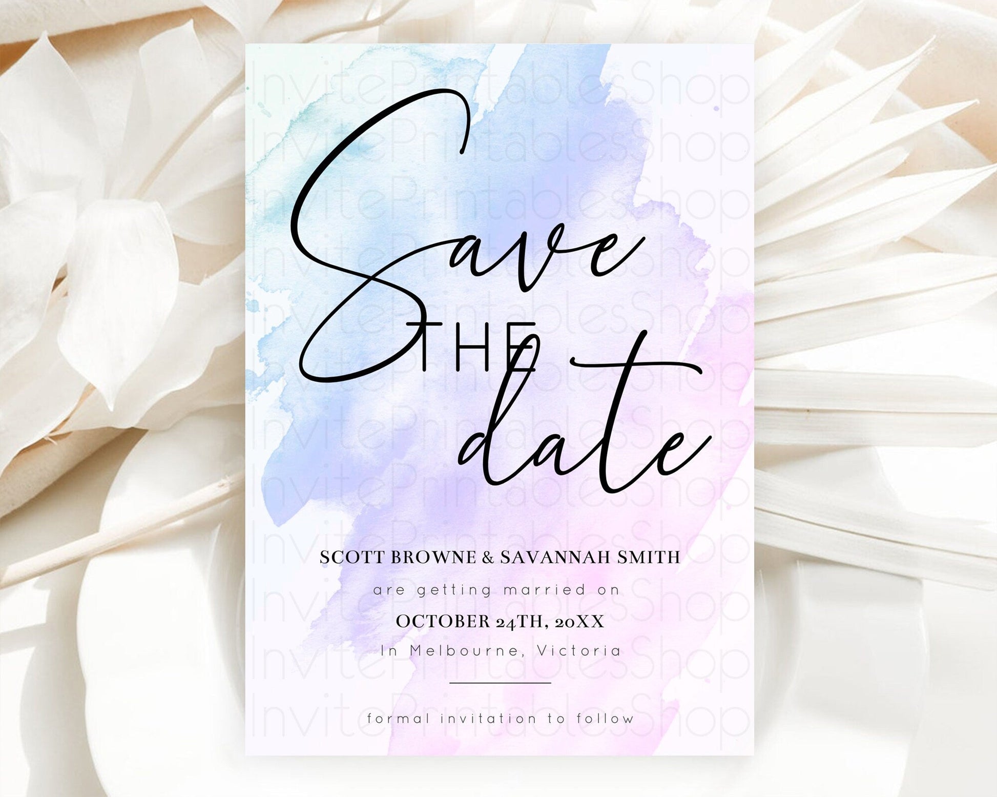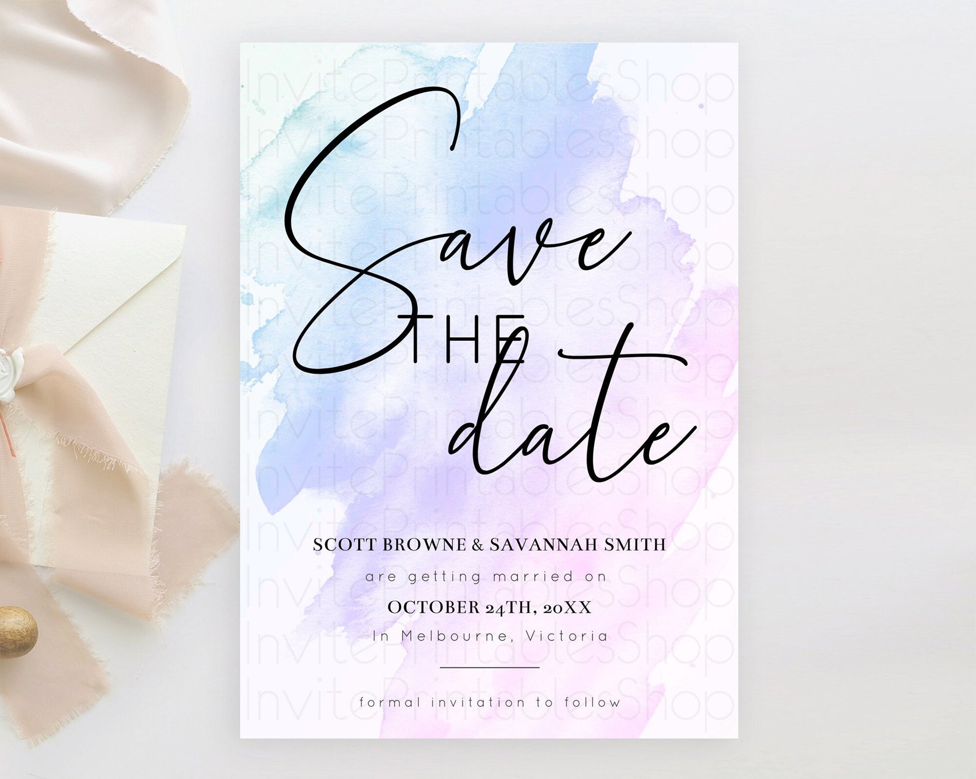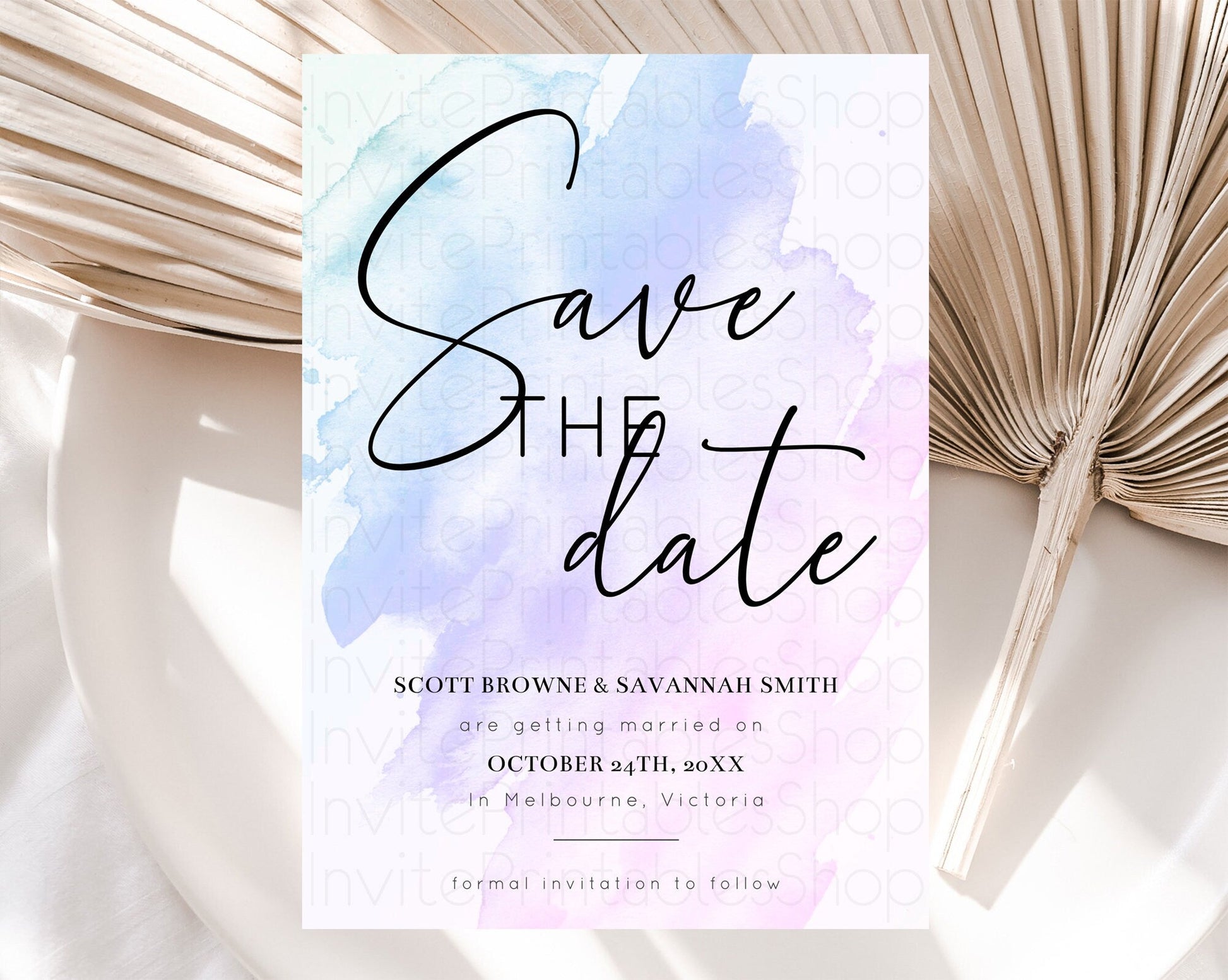 Purple Watercolor Save The Date Template Ombre Purple Watercolor Splash Party 1st Birthday Baby Shower Wedding Baptism Bridal Shower D10165