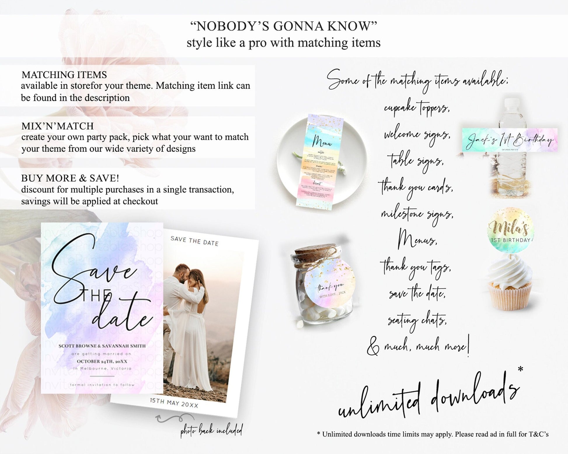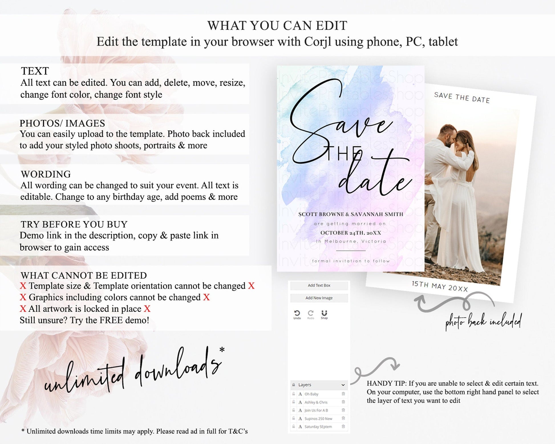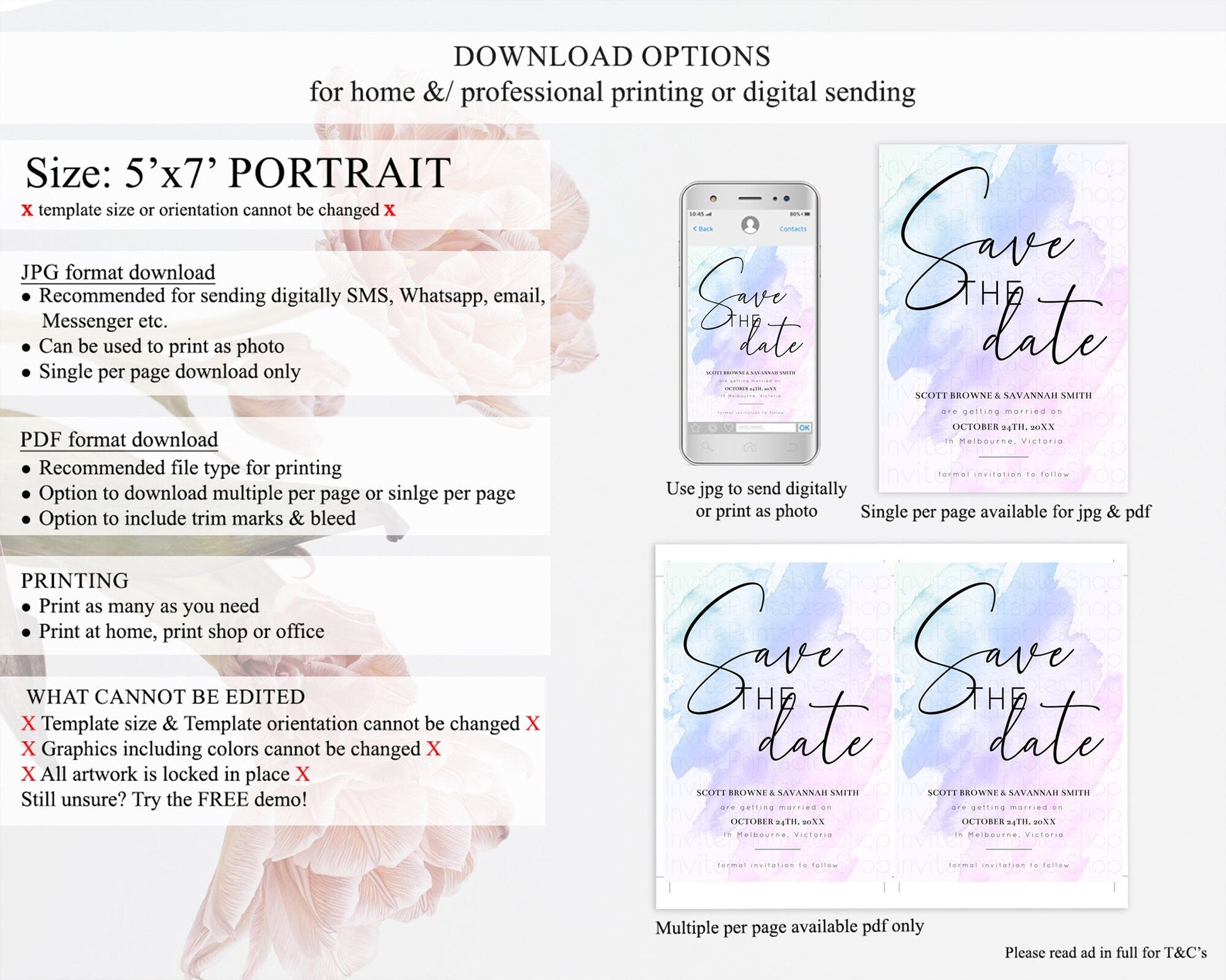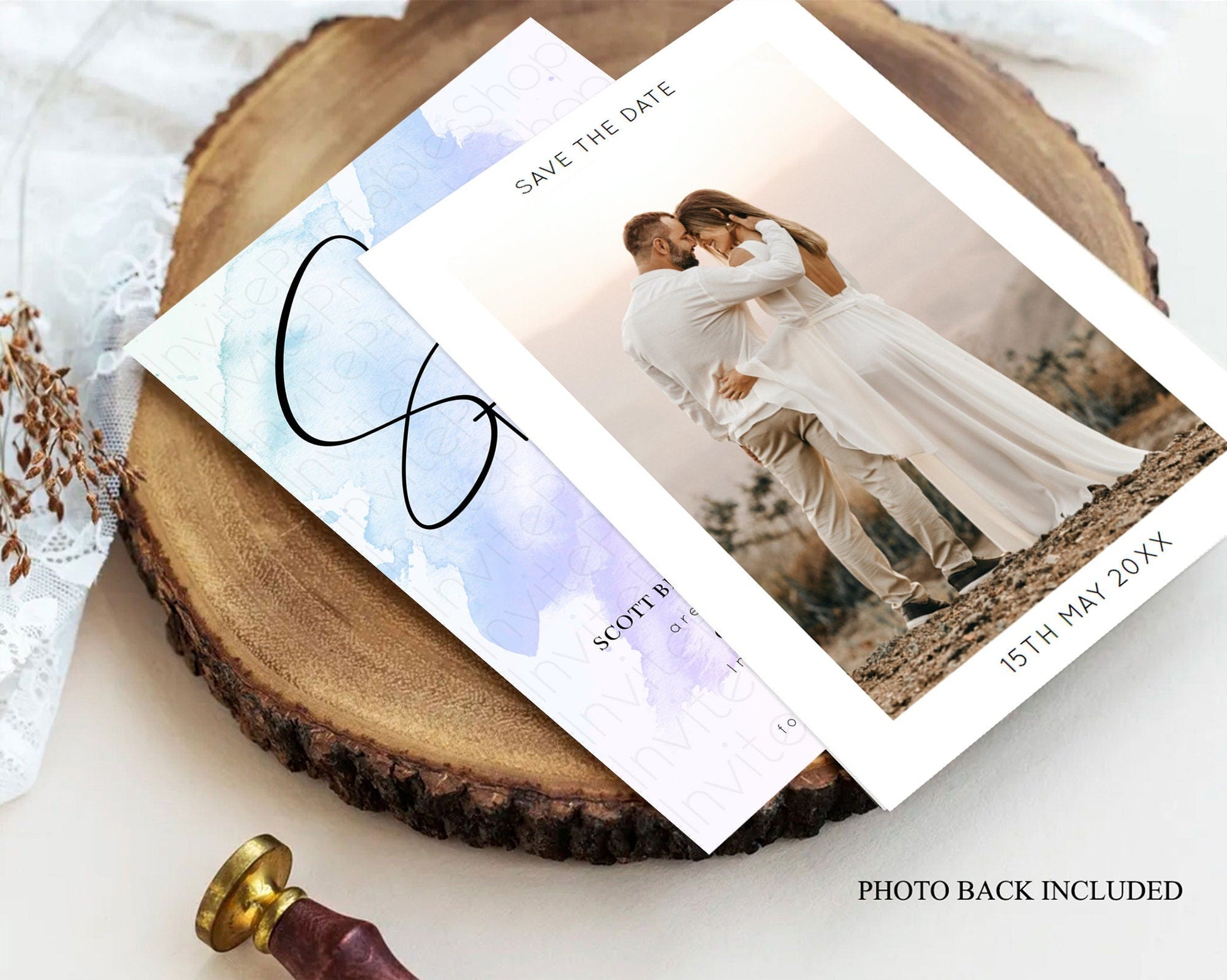 Purple Watercolor Save The Date Template Ombre Purple Watercolor Splash Party 1st Birthday Baby Shower Wedding Baptism Bridal Shower D10165