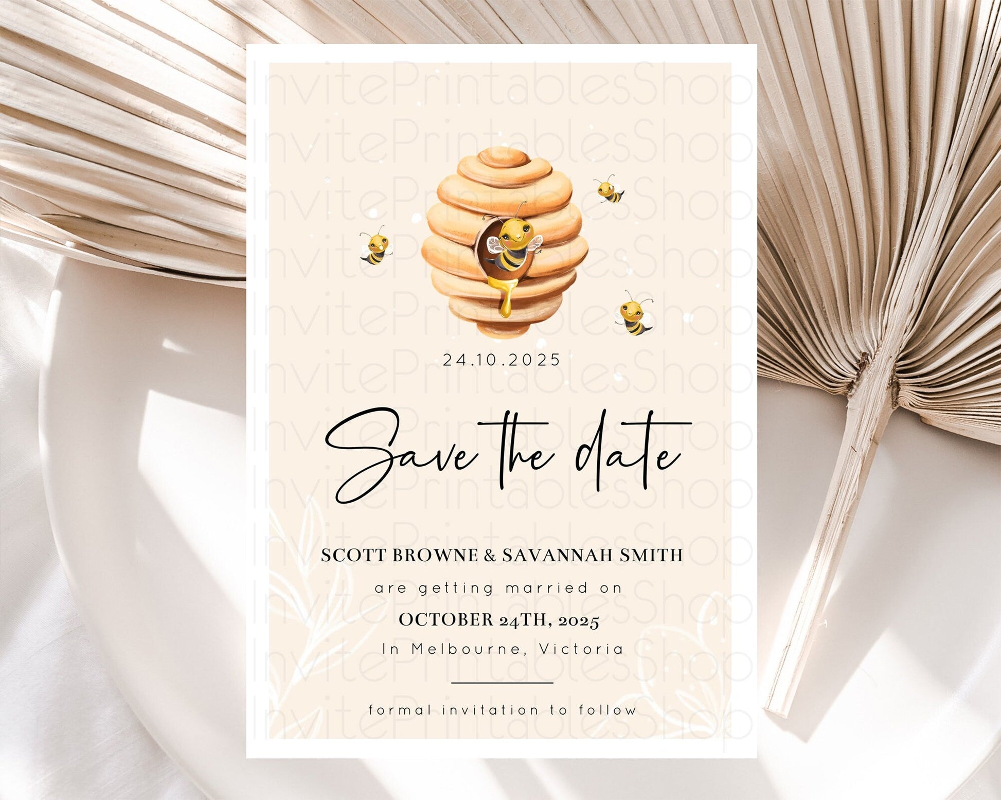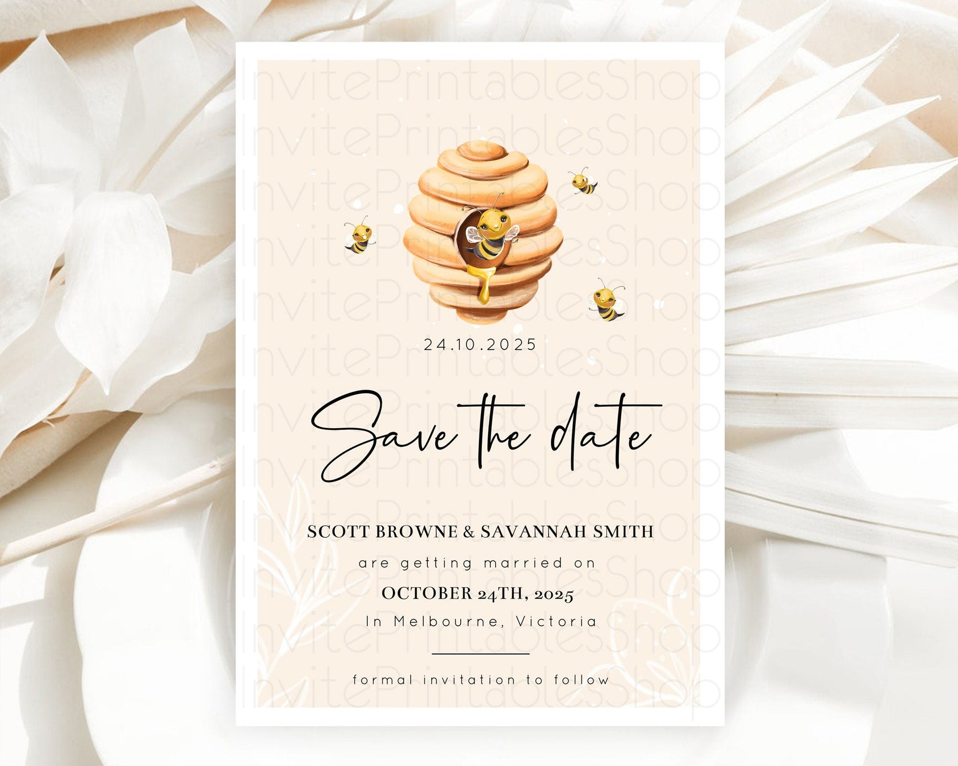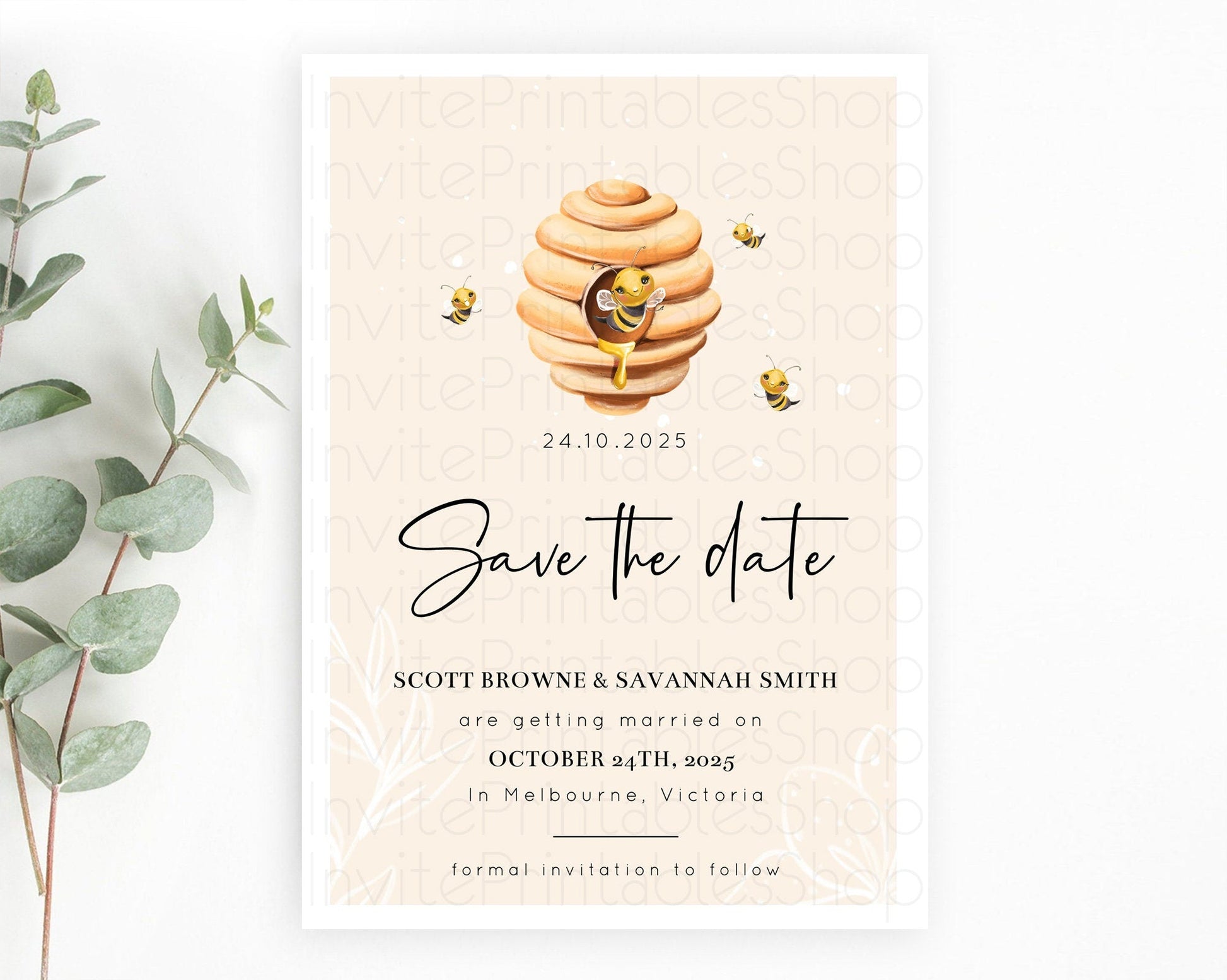Queen Bee Save The Date Template Momma BEE First BEE-DAY 1st Birthday Baby Shower Baptism Wedding Floral Sweet Honey Beehive Party D10754