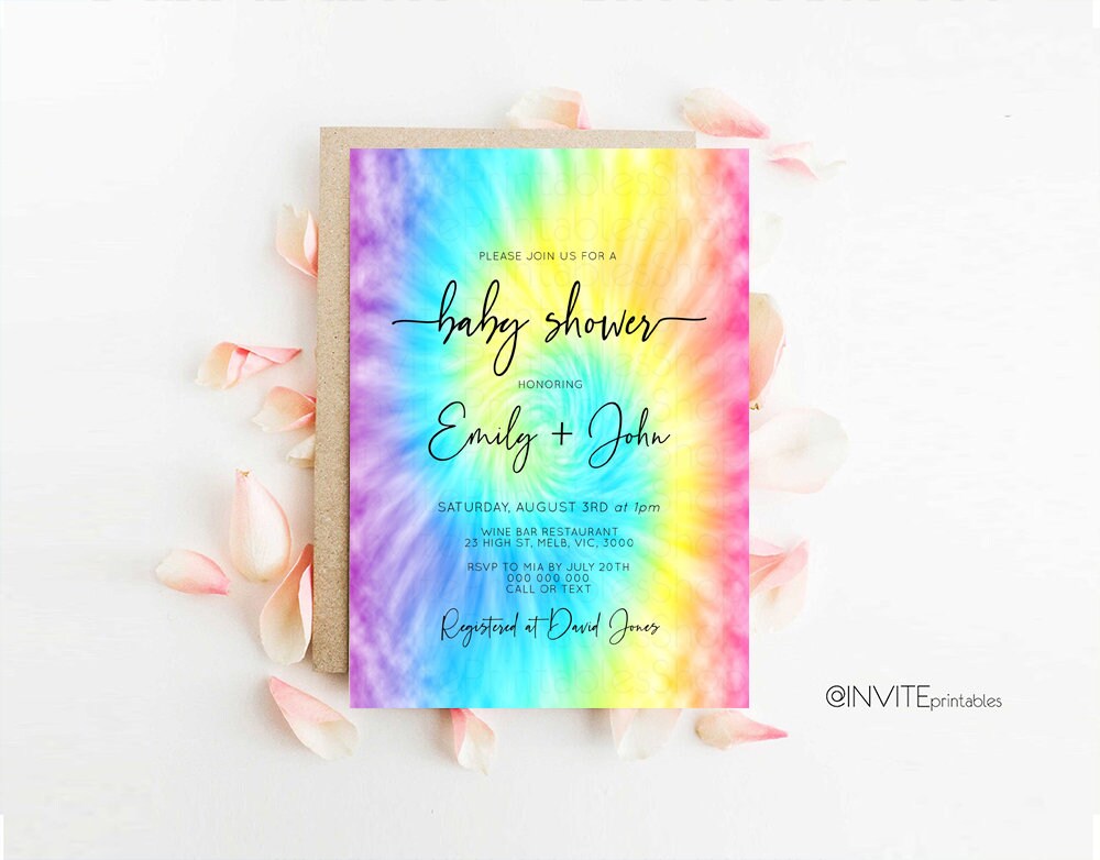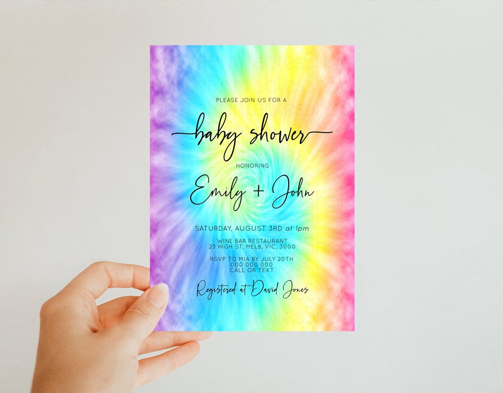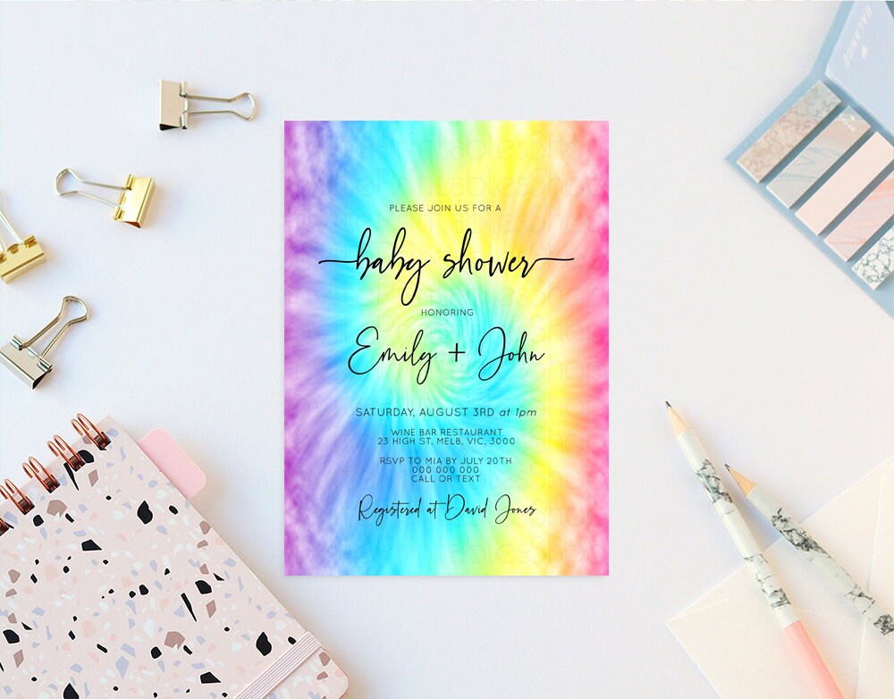 Rainbow Baby Shower Invitation Pastel Baby Shower Invite Rainbow Ombre Invite Colorful Watercolor Baby Shower Invite Tie Dye Invite D10578