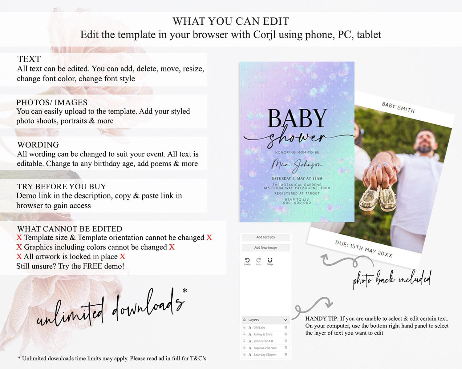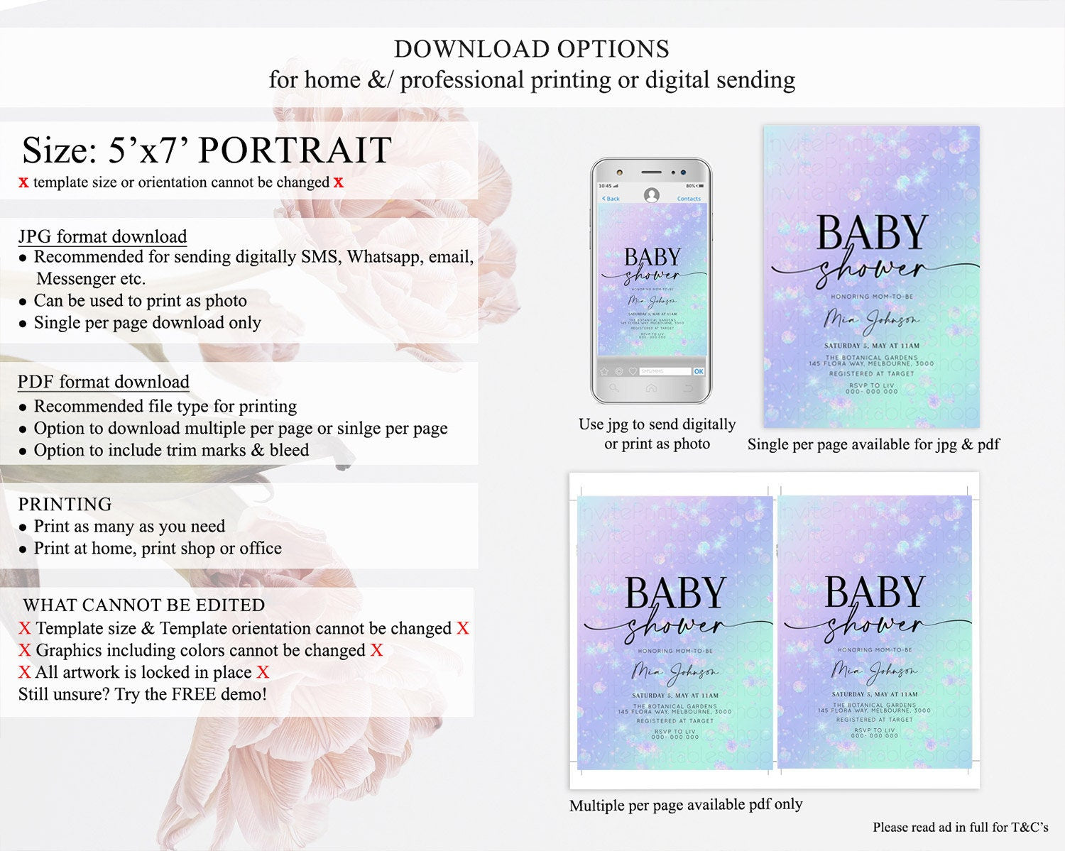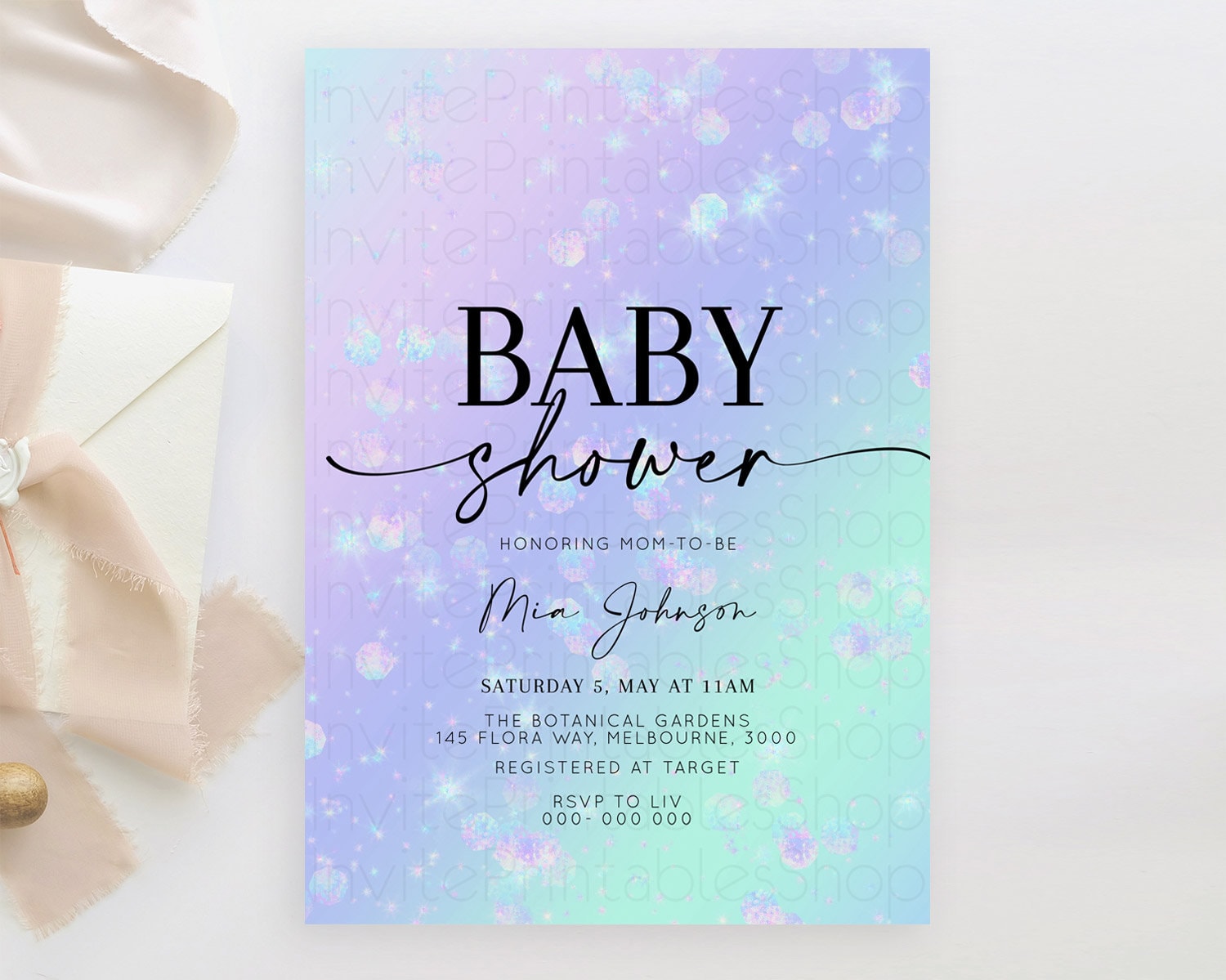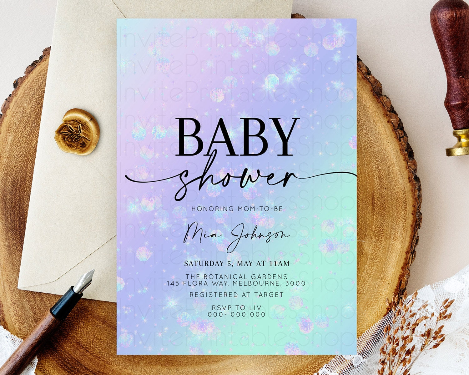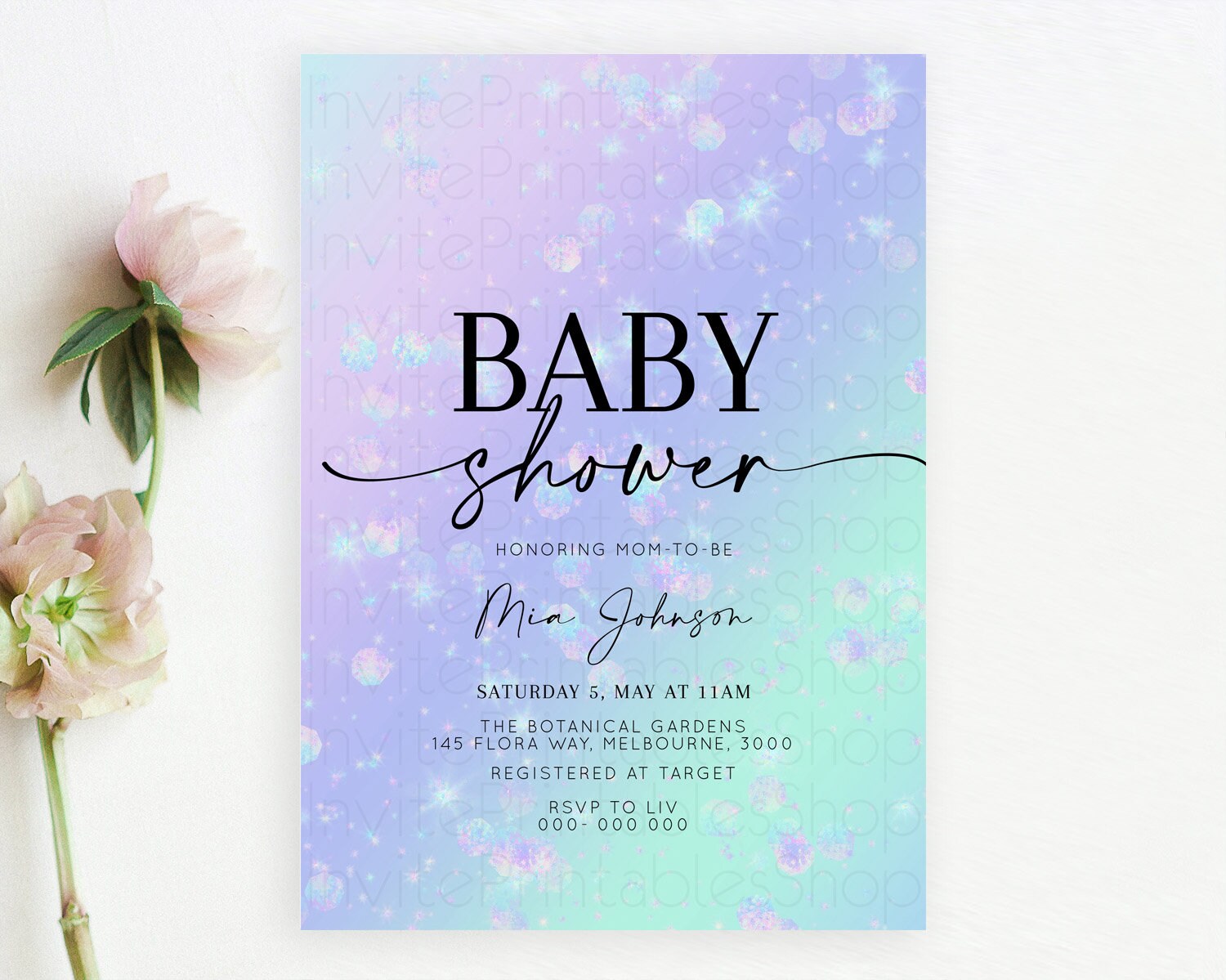 Rainbow Baby Shower Invitation Pastel Rainbow Baby Invitation Pastel Watercolor Invitation Colorful Ombre Sprinkle Shower D10663