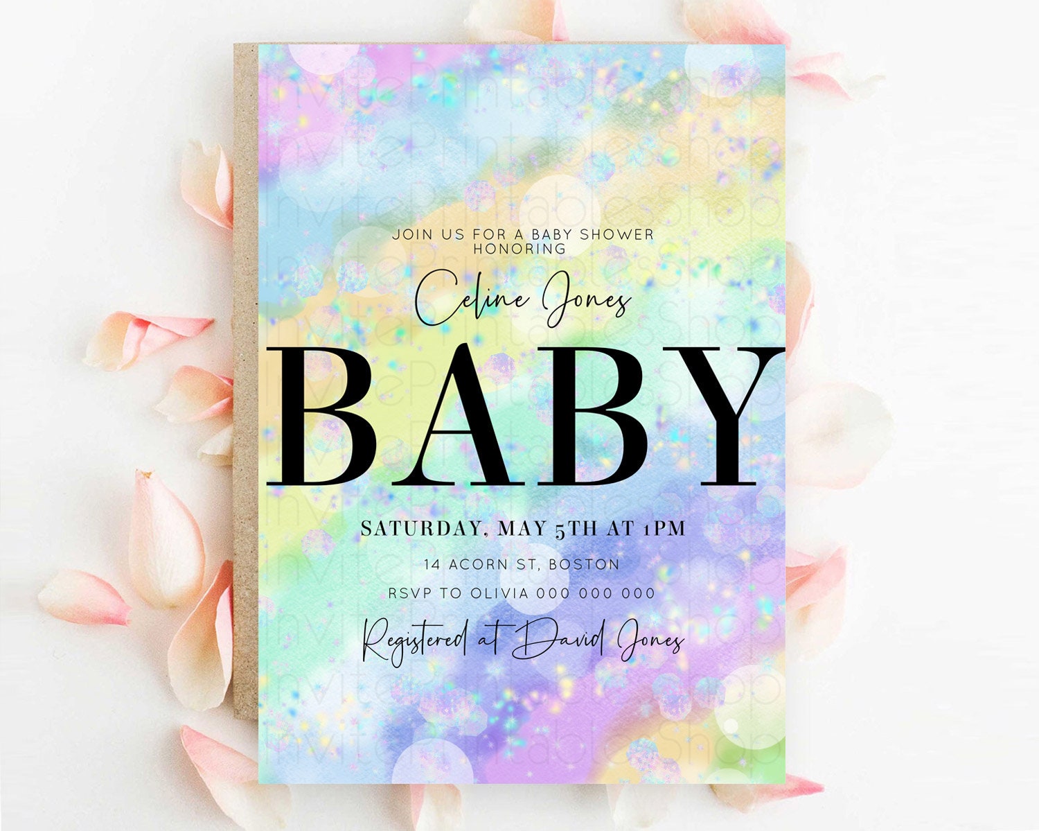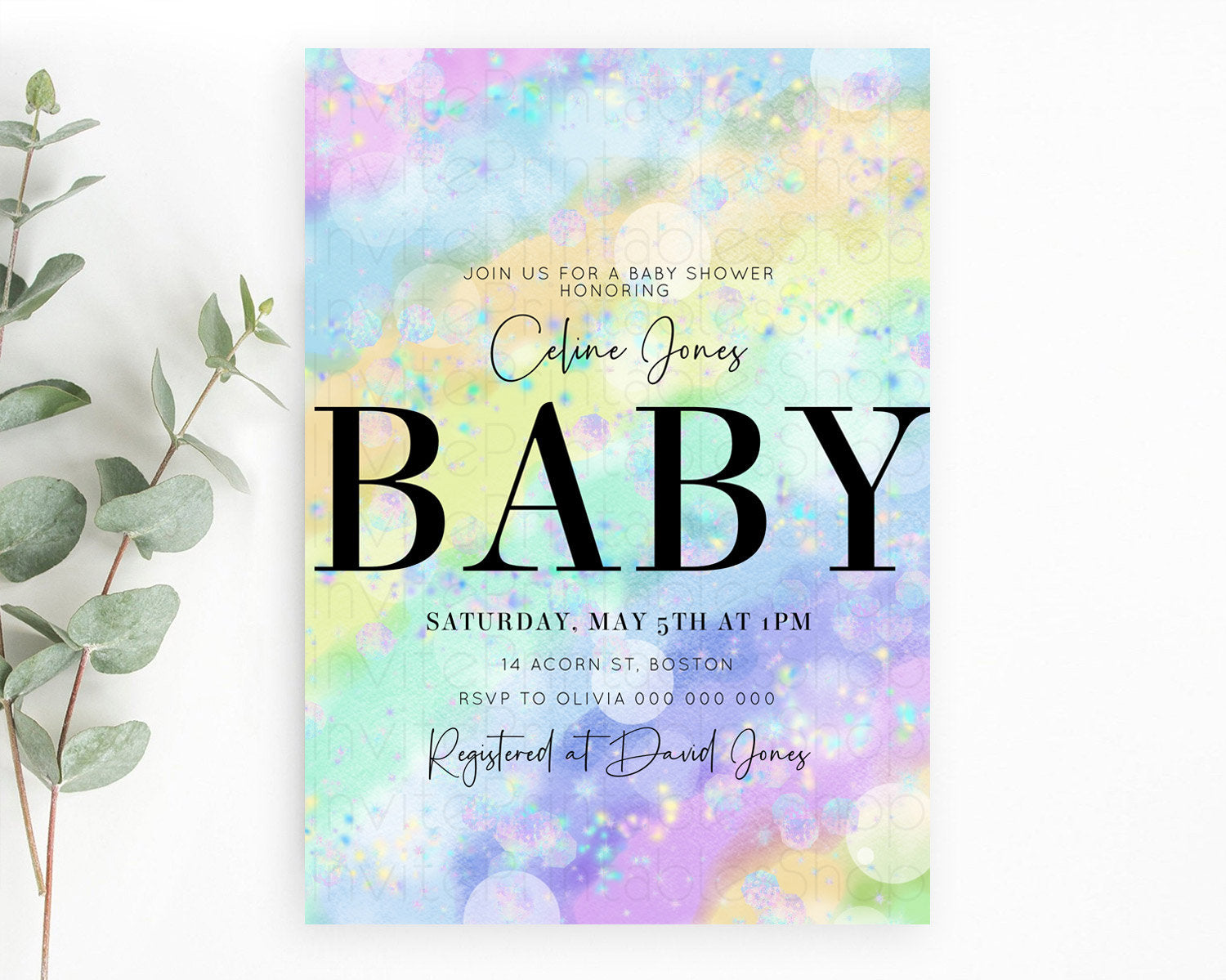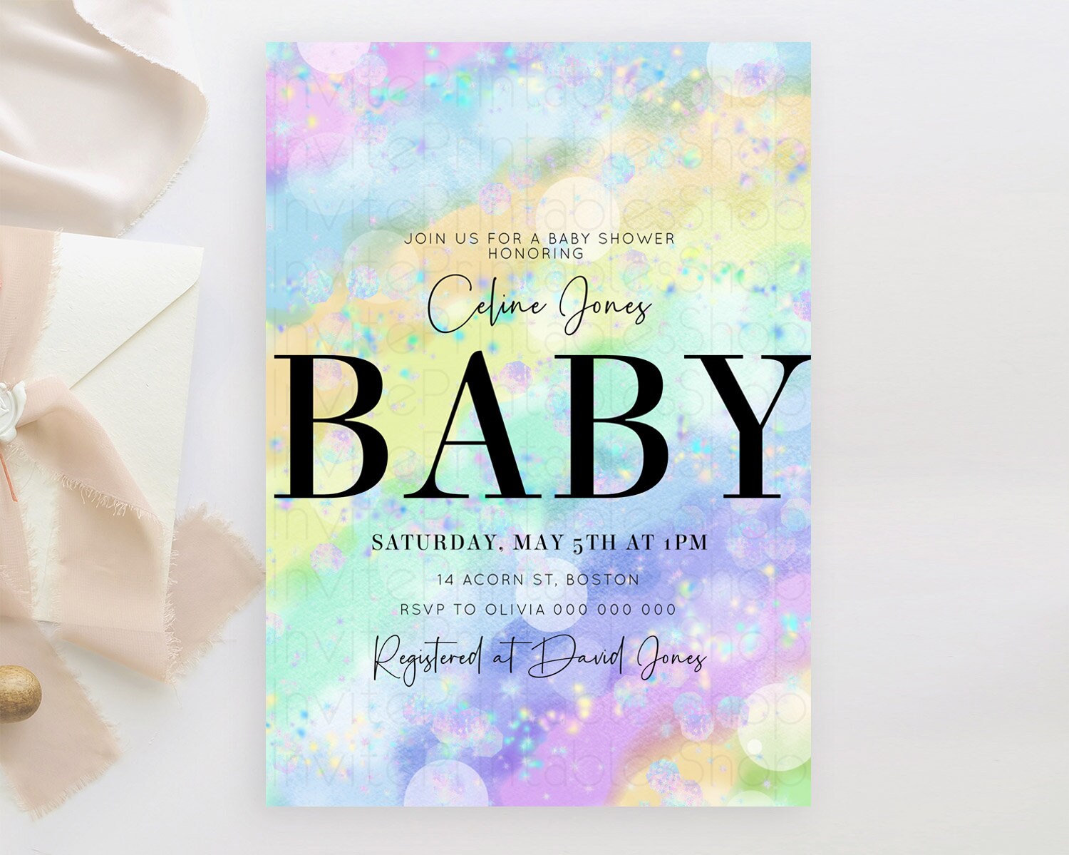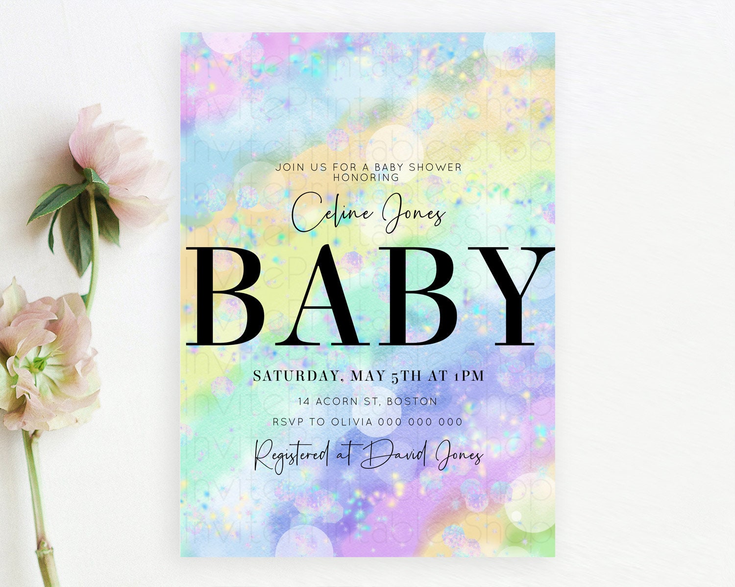Rainbow Baby Shower Invitation Pastel Rainbow Baby Invitation Pastel Watercolor Invitation Colorful Ombre Sprinkle Shower D10689