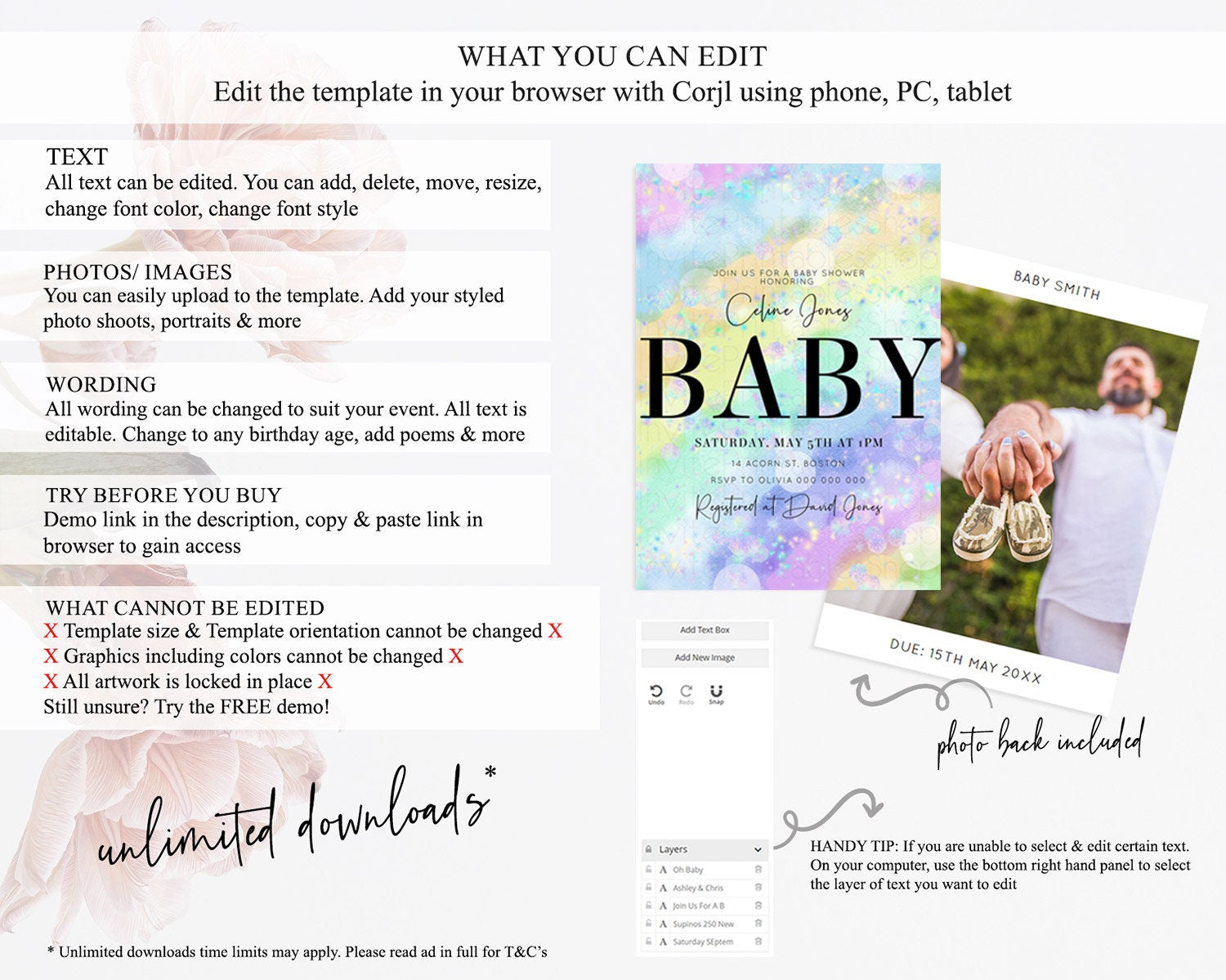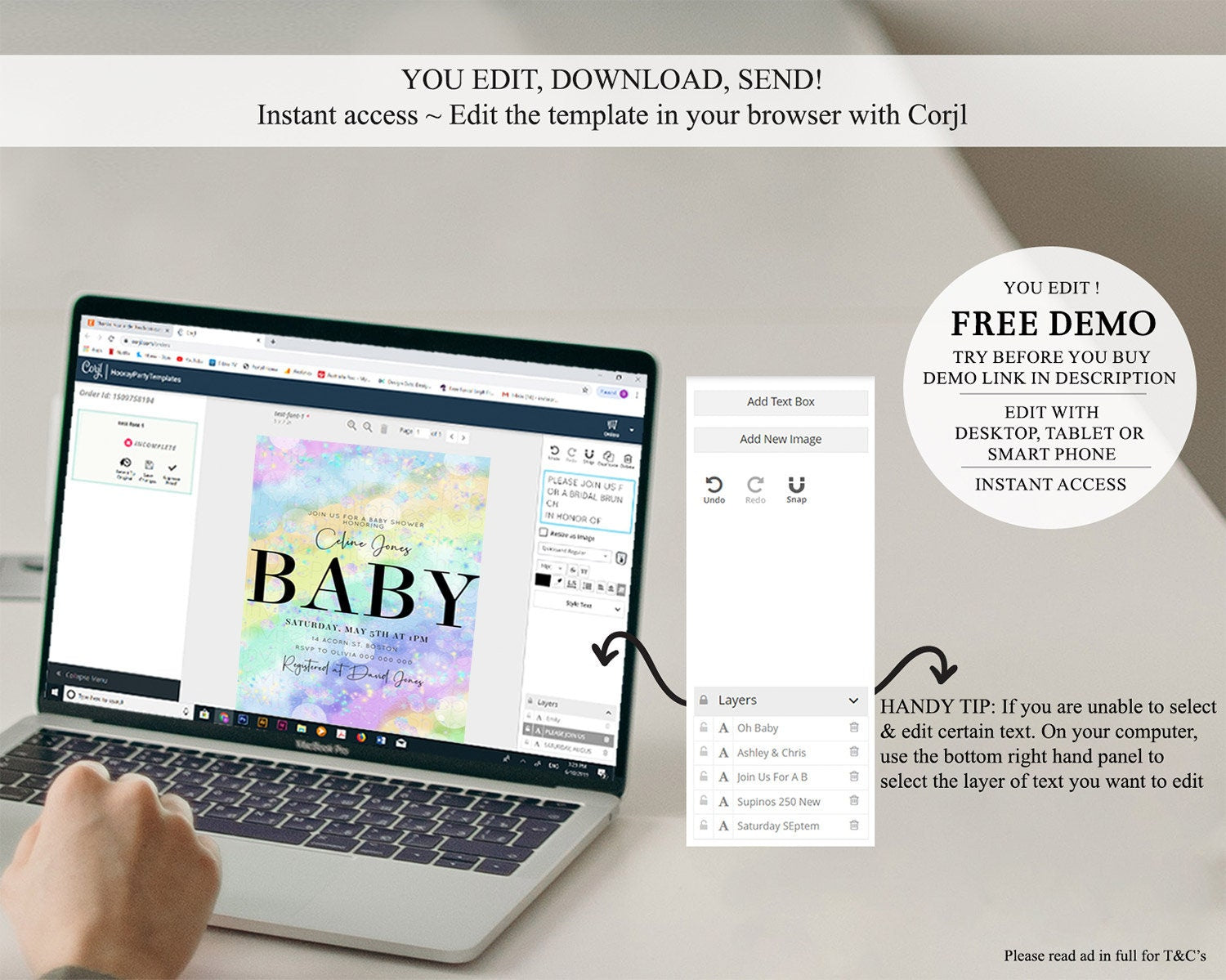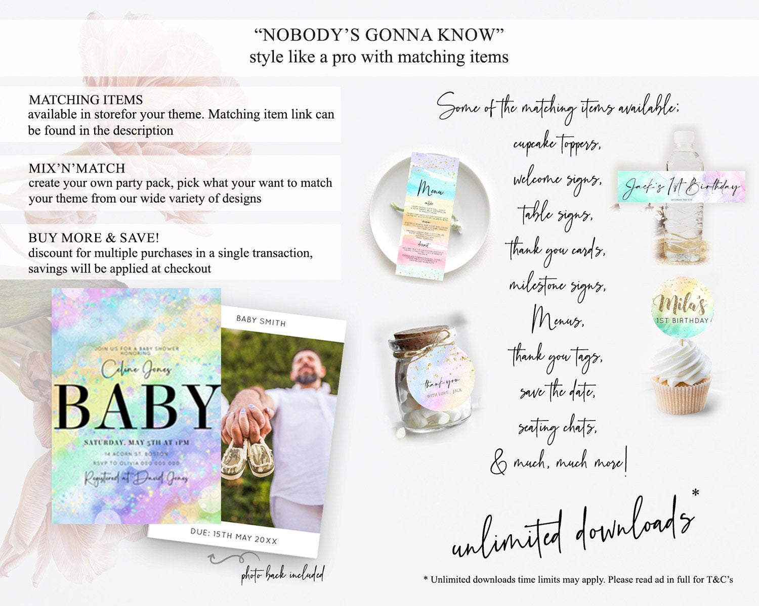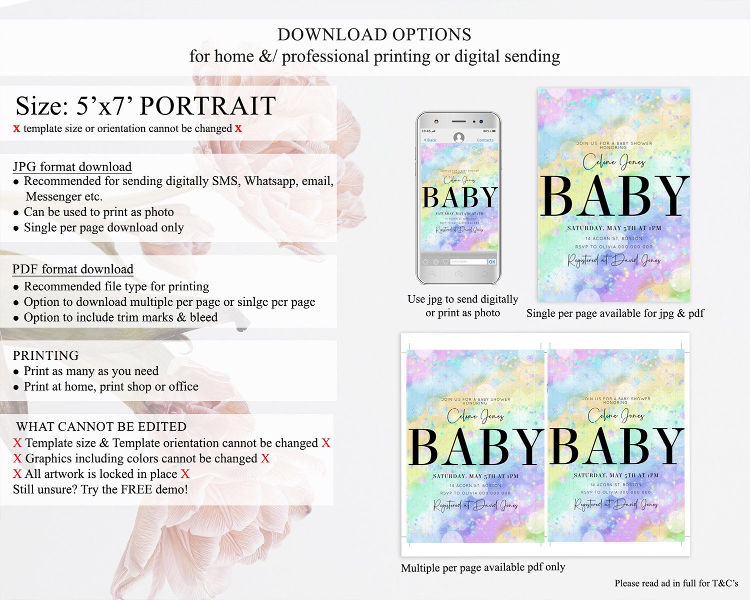 Rainbow Baby Shower Invitation Pastel Rainbow Baby Invitation Pastel Watercolor Invitation Colorful Ombre Sprinkle Shower D10689
