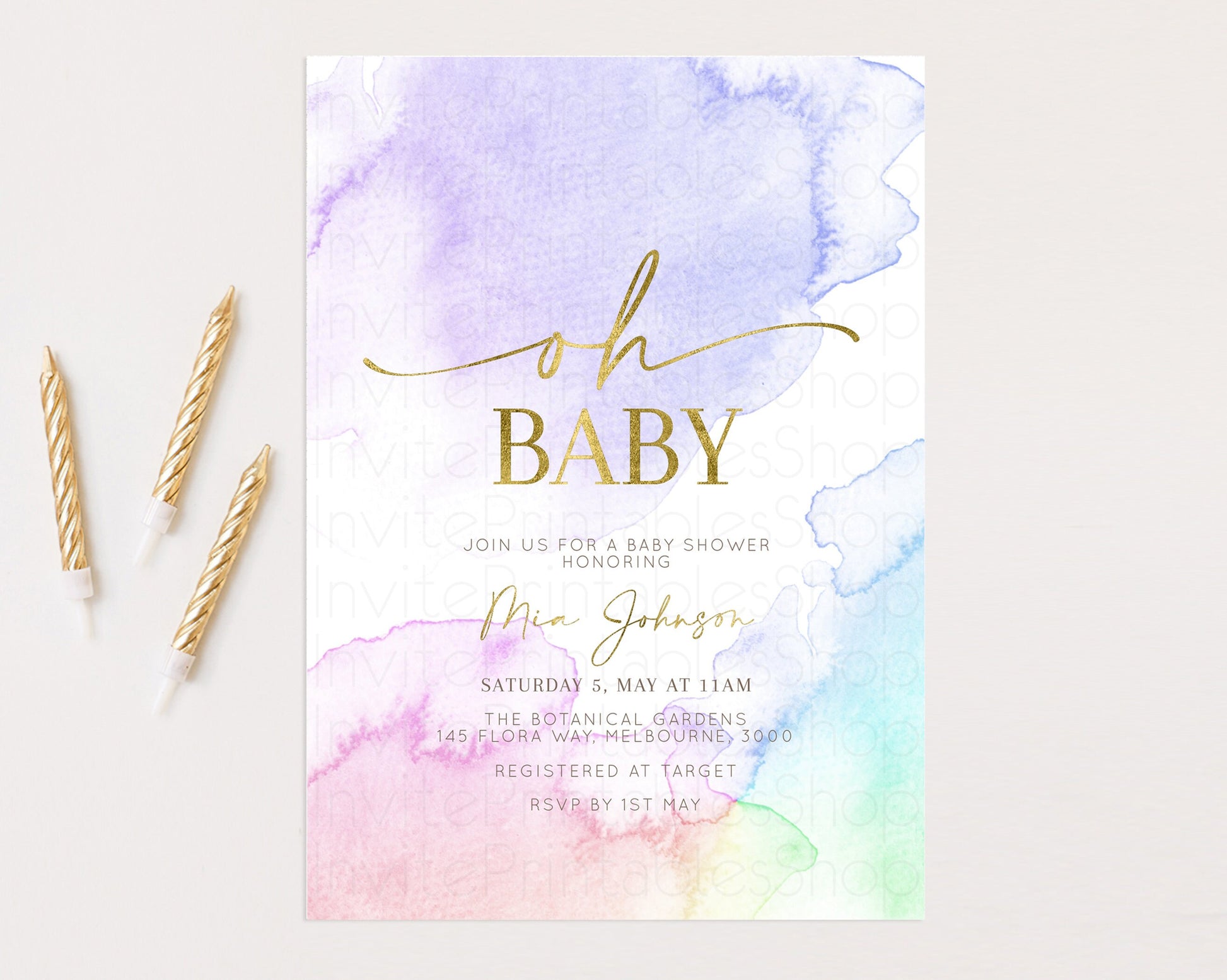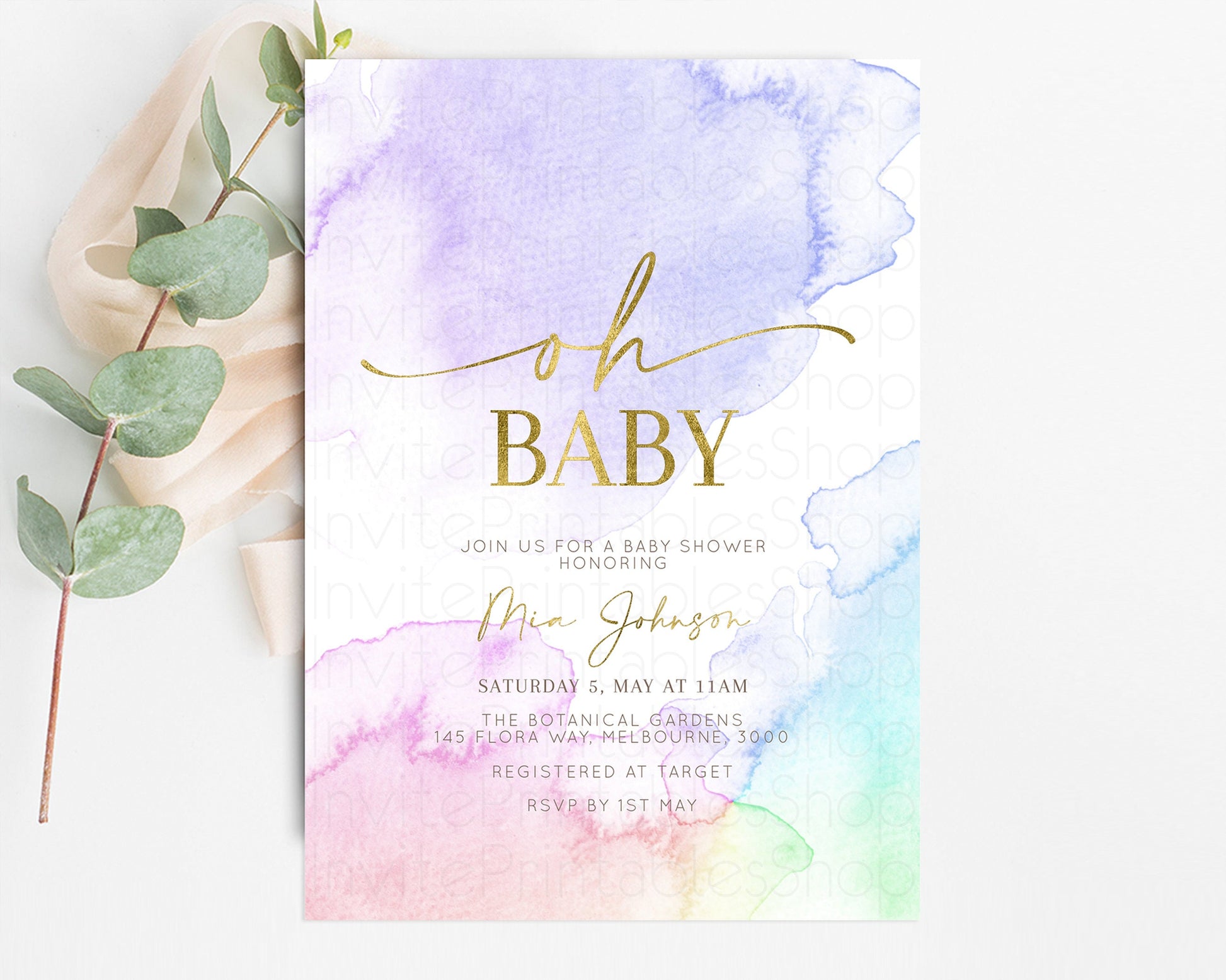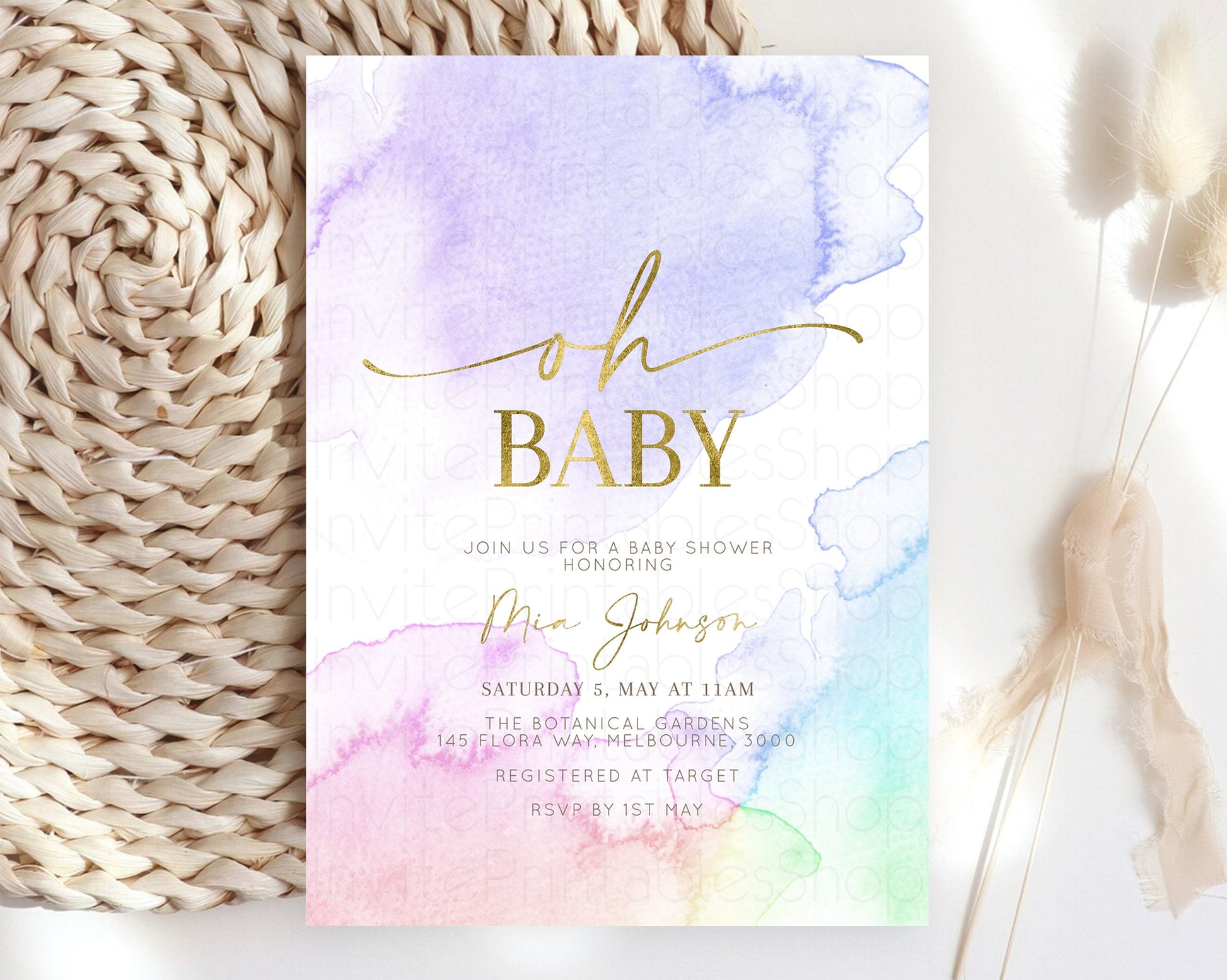 Rainbow Baby Shower Invitation Pastel Watercolor Invitation Ombre Splash Invite Glitter Confetti Sprinkles Colorful Gender Neutral 193
