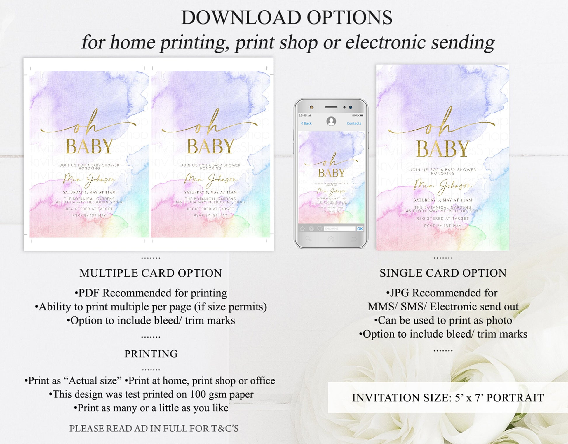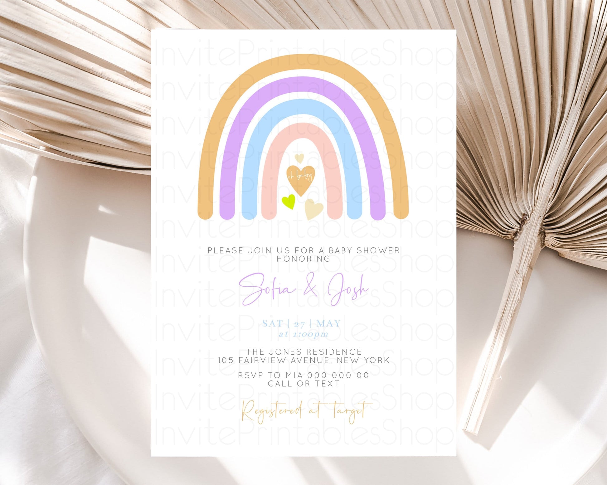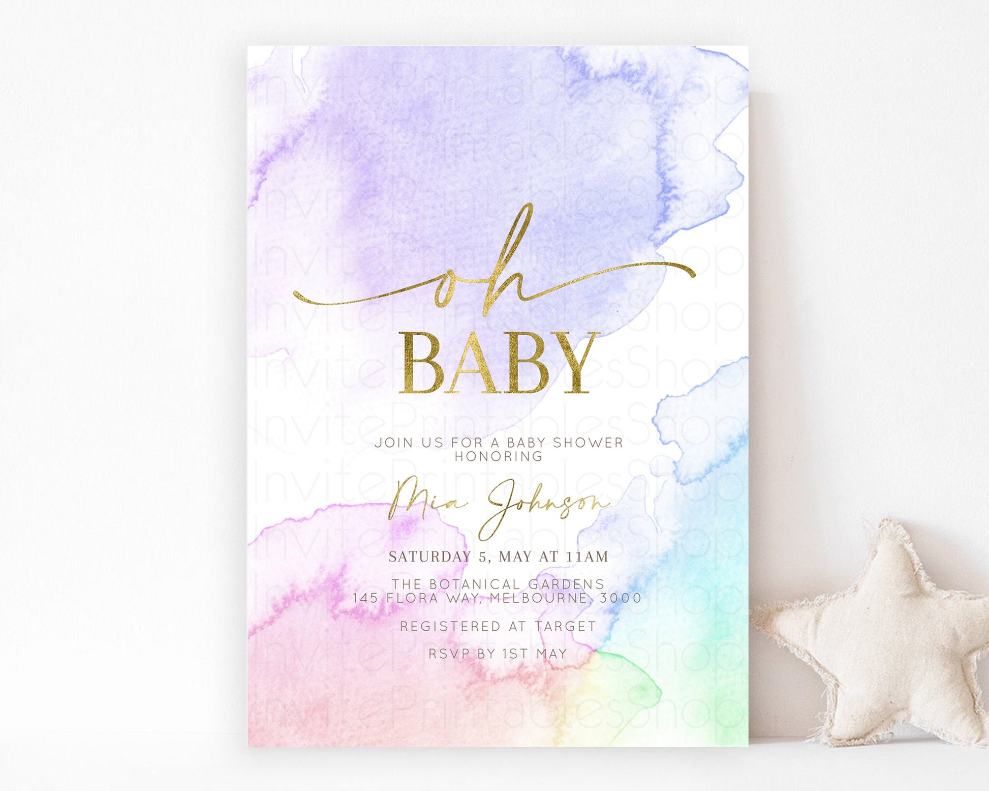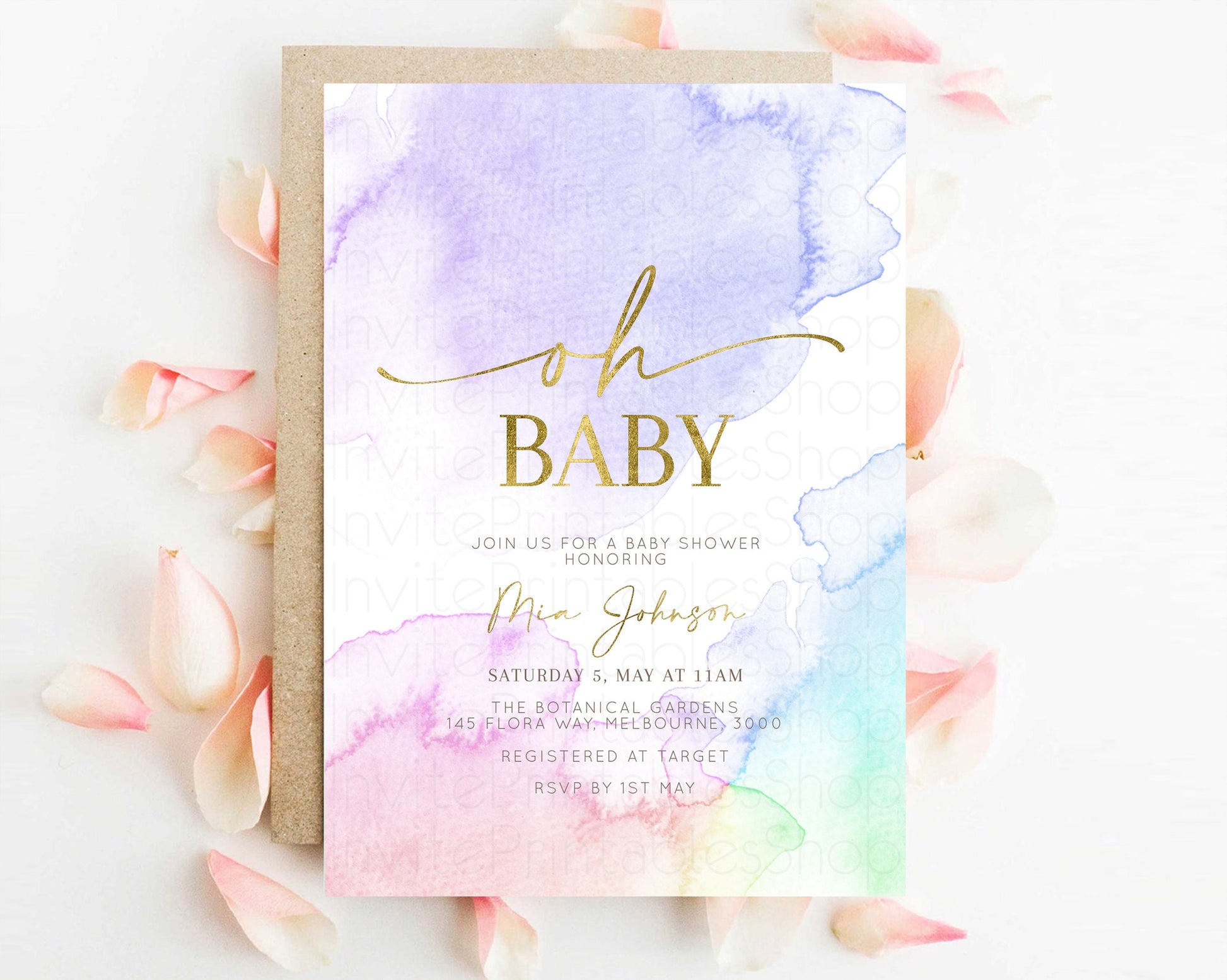 Rainbow Baby Shower Invitation Pastel Watercolor Invitation Ombre Splash Invite Glitter Confetti Sprinkles Colorful Gender Neutral 193