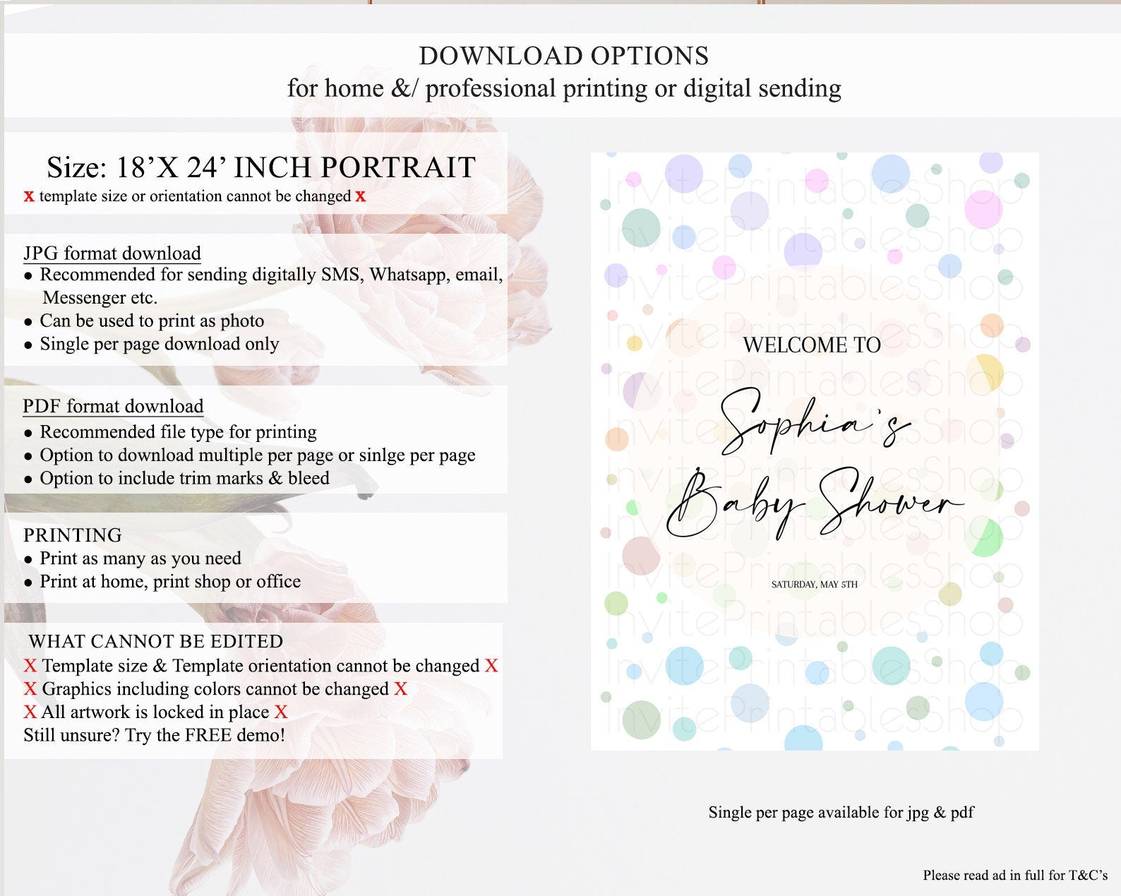 • Template size & orientation cannot be changed. Please use the demo link to confirm this product suits your needs.