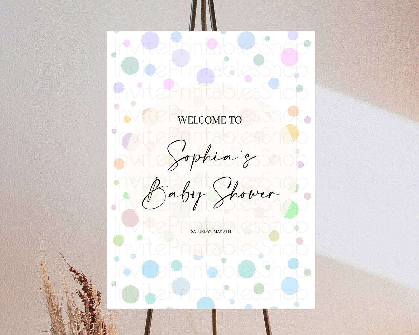 Rainbow Baby Shower Welcome Sign Pastel Welcome Board Pastel Rainbow Confetti Welcome Sign Colorful Bubbles Pastel Welcome Sign D10135