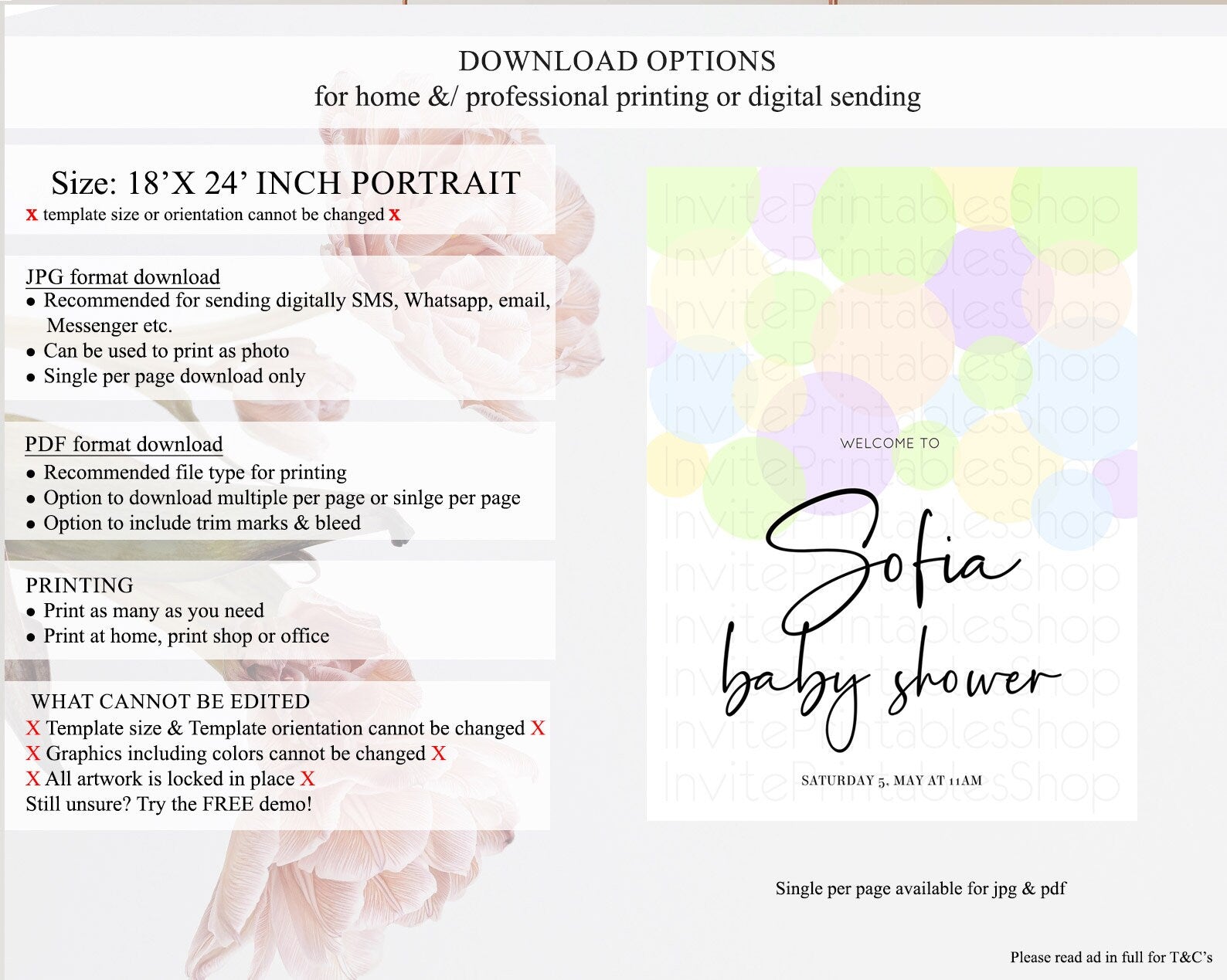 • Template size & orientation cannot be changed. Please use the demo link to confirm this product suits your needs.