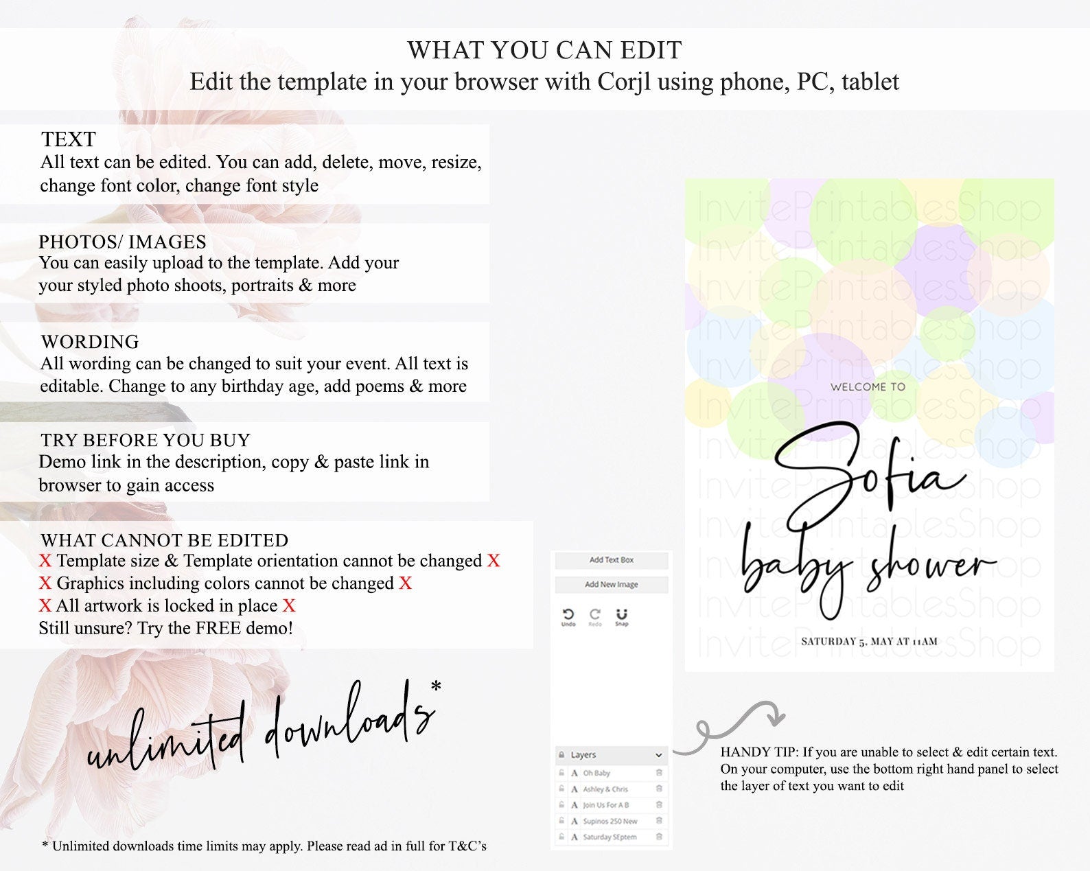 • After purchase, Corjl emails your editing link. Allow up to 15 minutes for delivery.