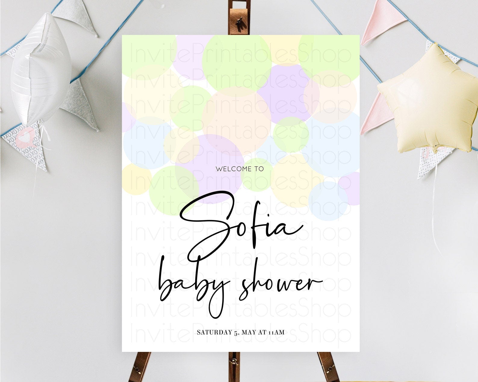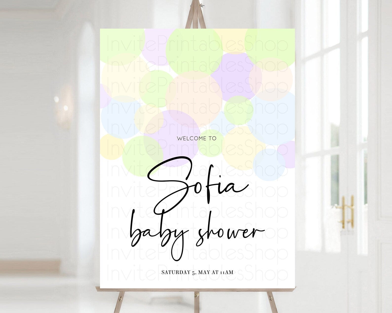 Rainbow Baby Shower Welcome Sign Pastel Welcome Board Pastel Rainbow Confetti Welcome Sign Colorful Bubbles Pastel Welcome Sign D10228