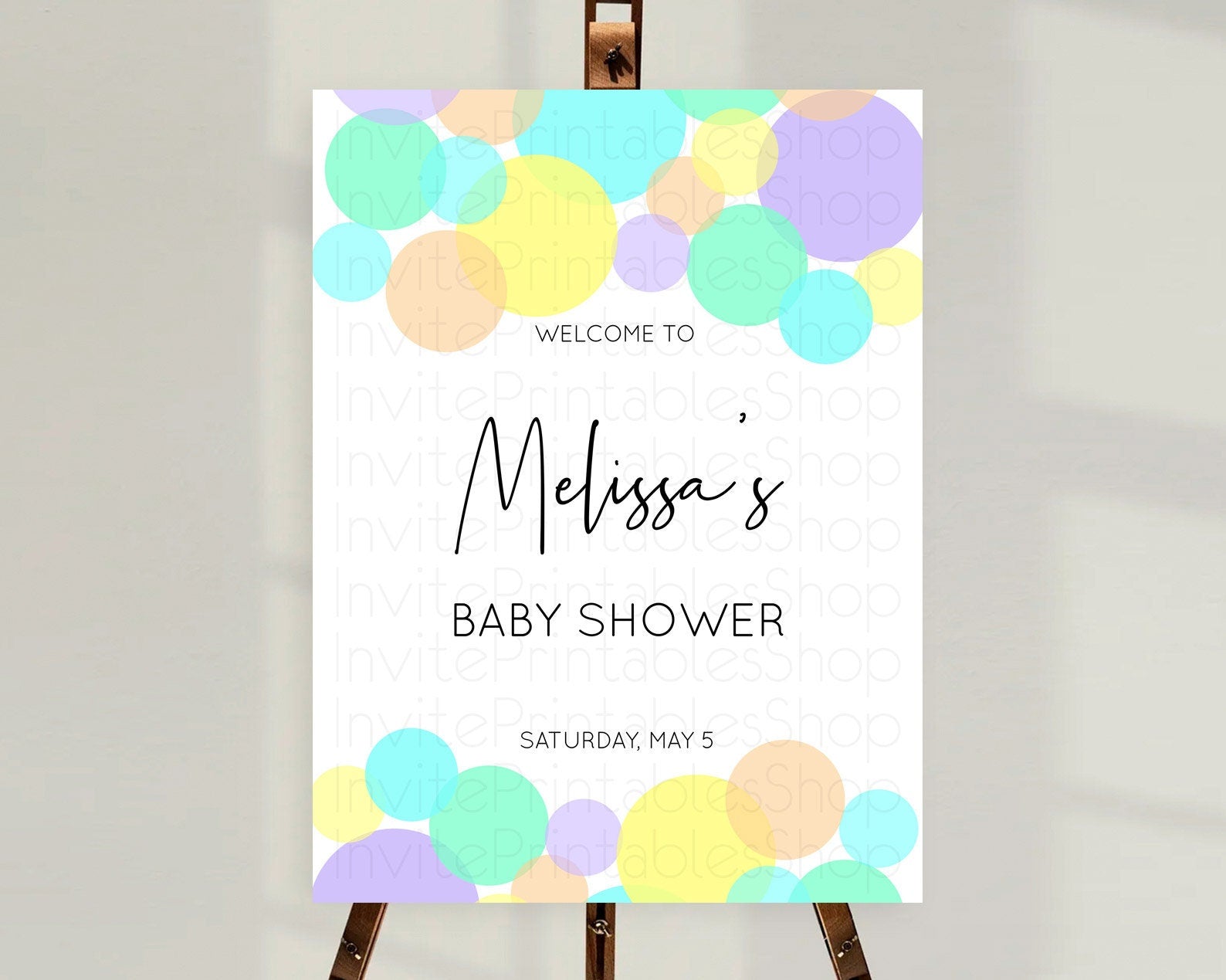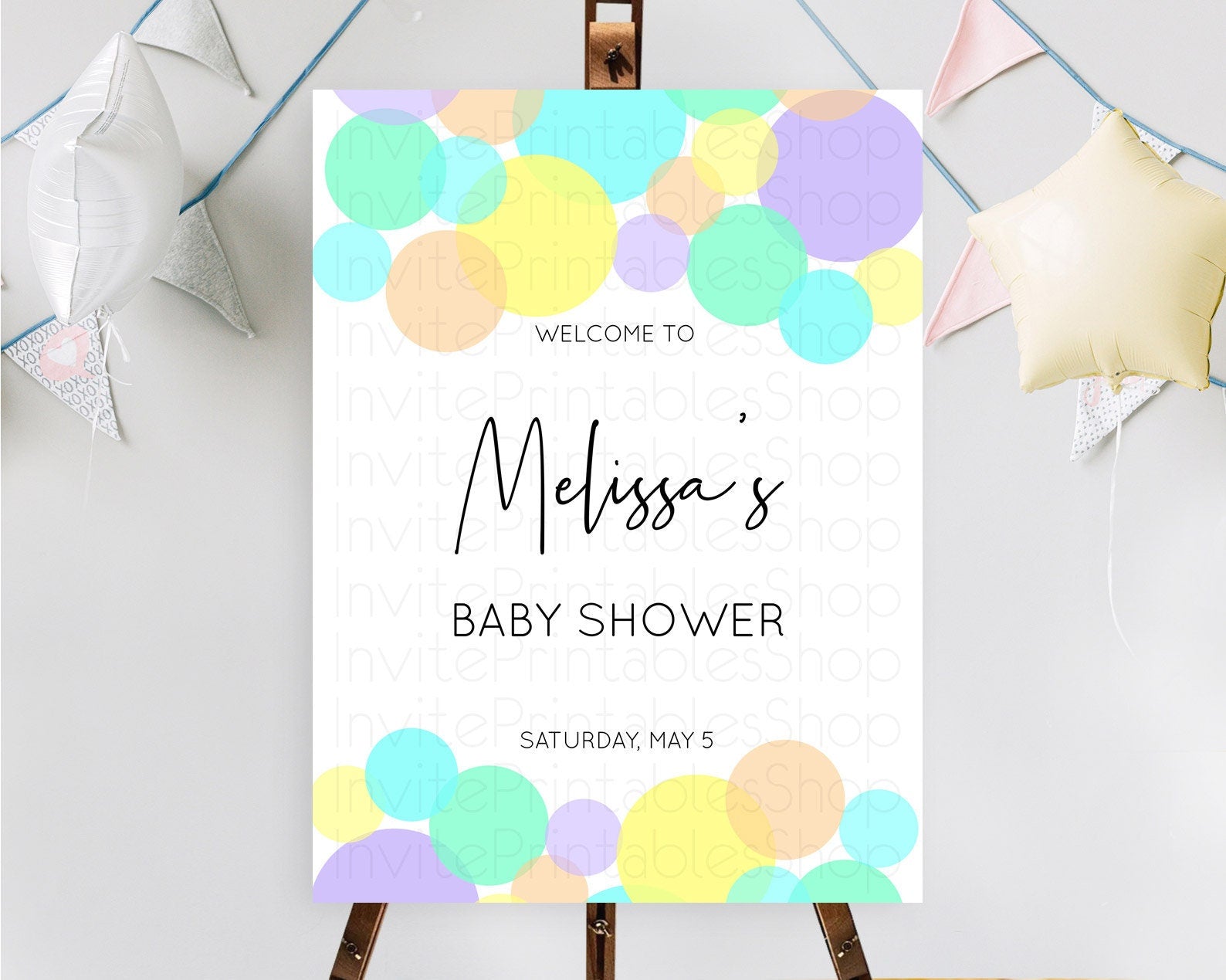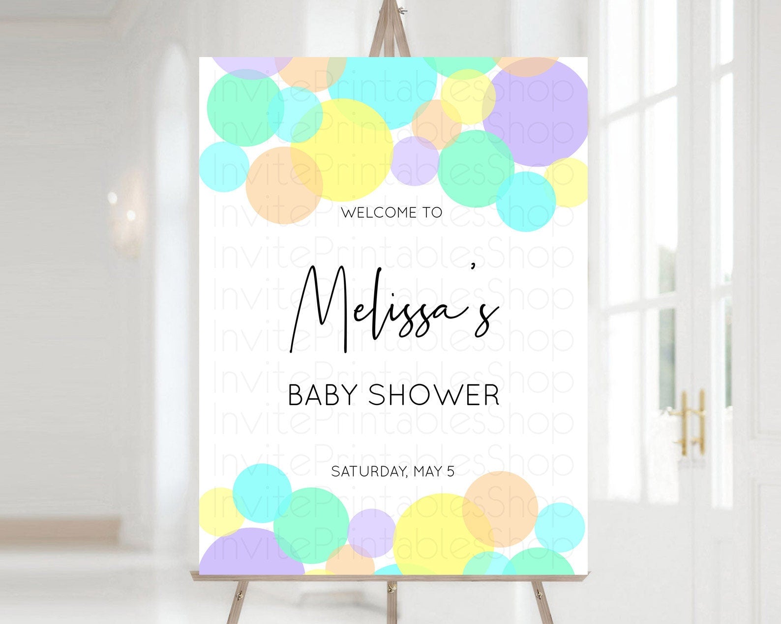 Rainbow Baby Shower Welcome Sign Pastel Welcome Board Pastel Rainbow Confetti Welcome Sign Colorful Bubbles Pastel Welcome Sign D10412