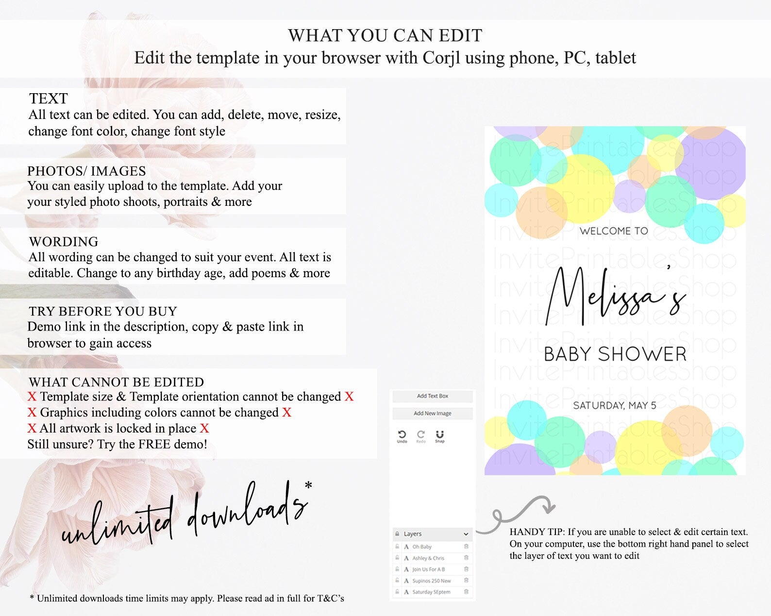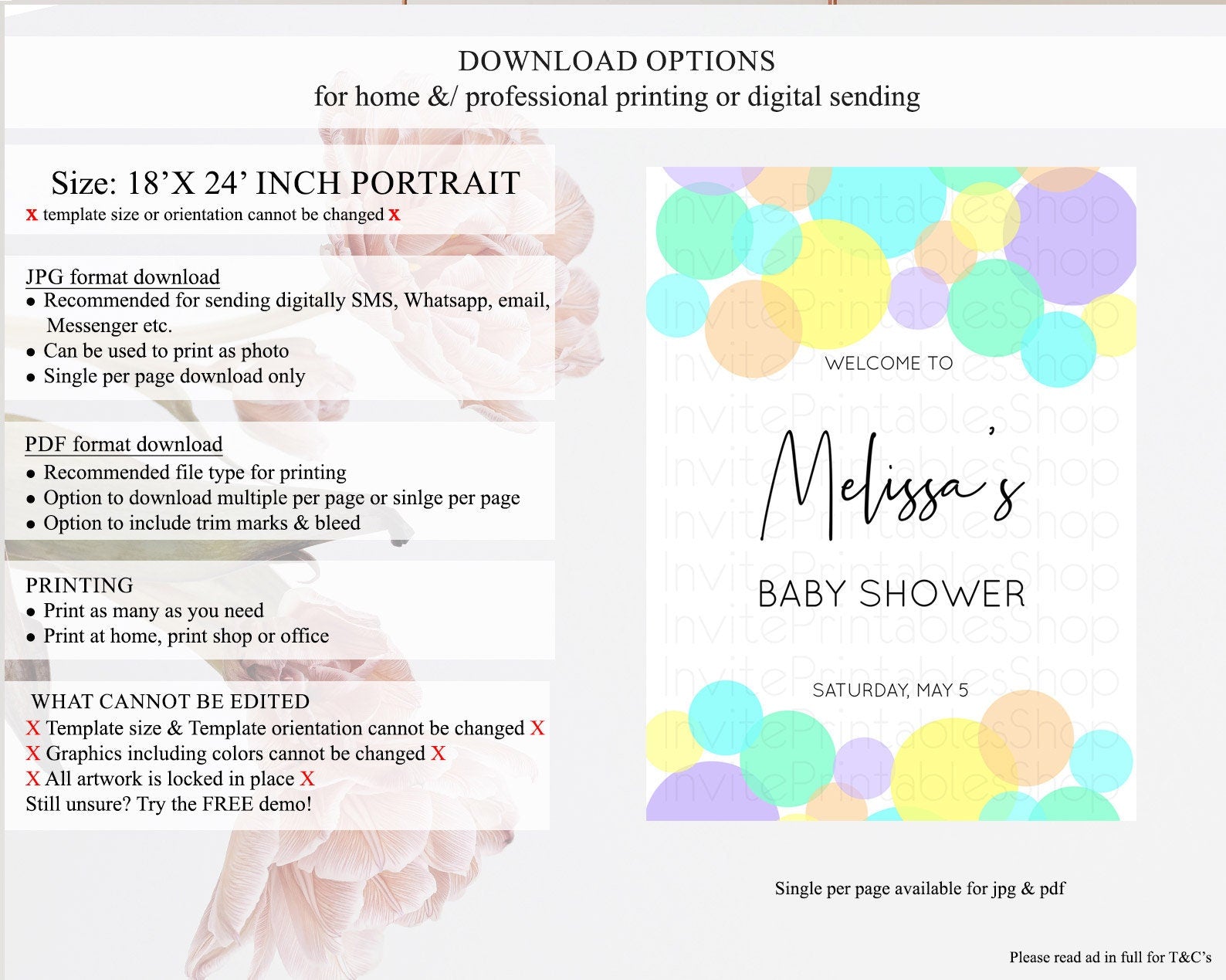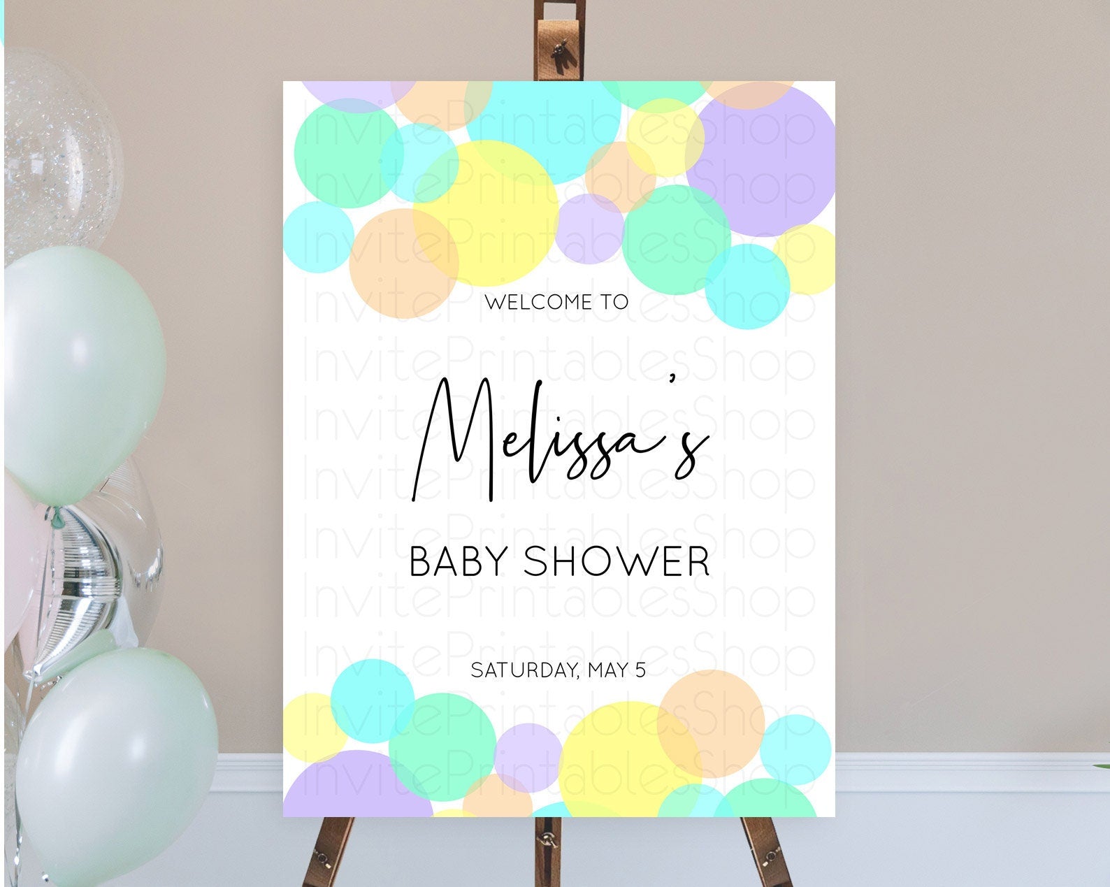 Rainbow Baby Shower Welcome Sign Pastel Welcome Board Pastel Rainbow Confetti Welcome Sign Colorful Bubbles Pastel Welcome Sign D10412