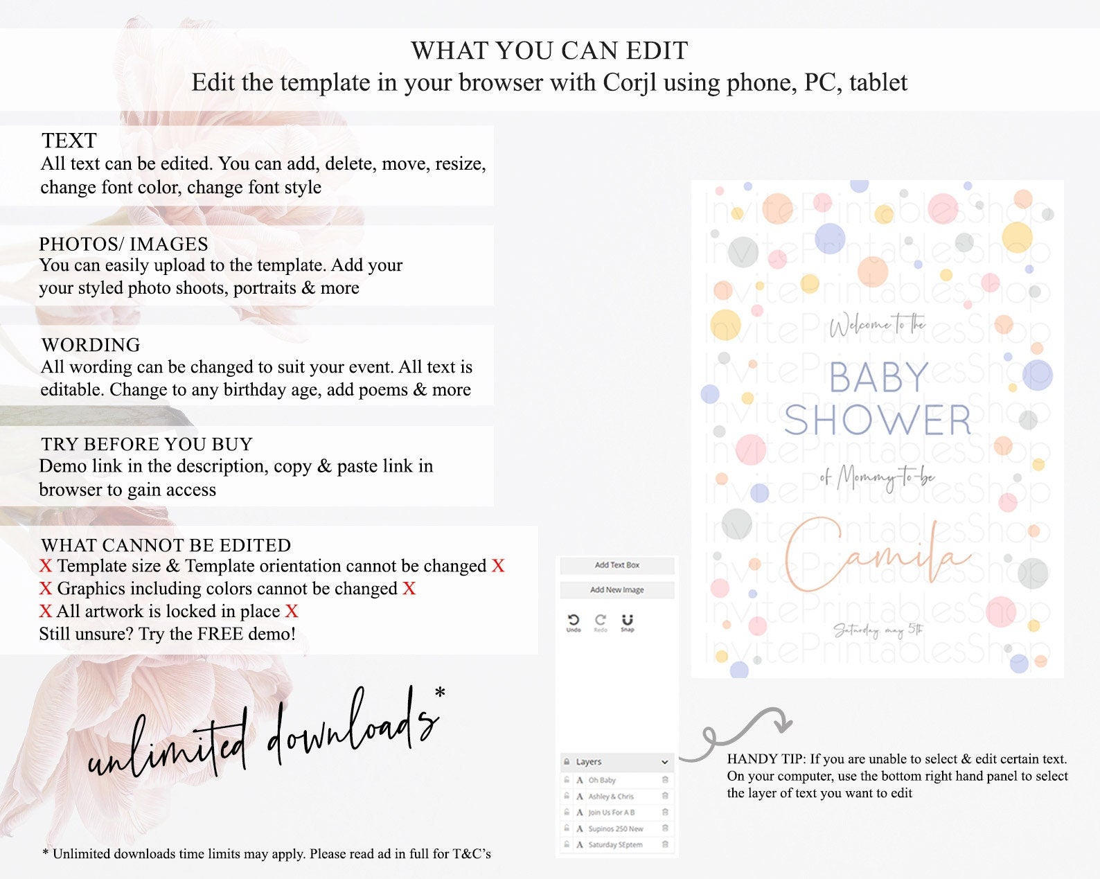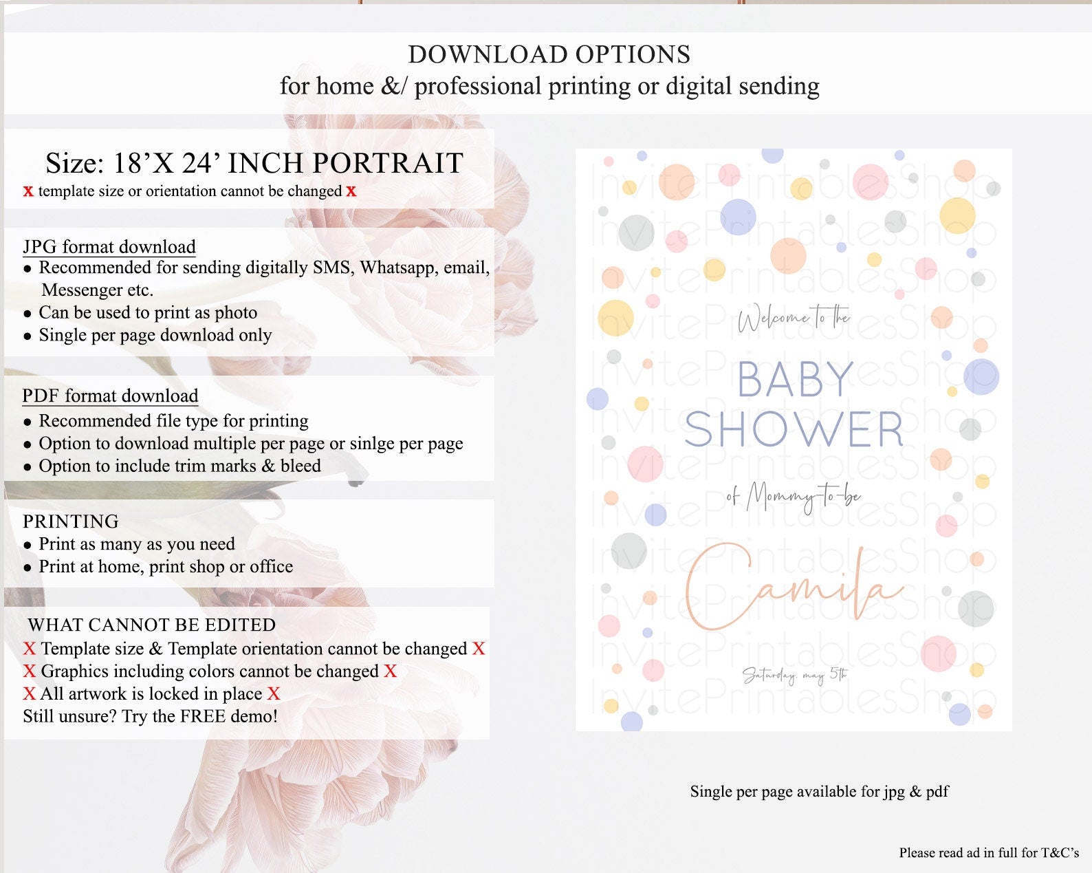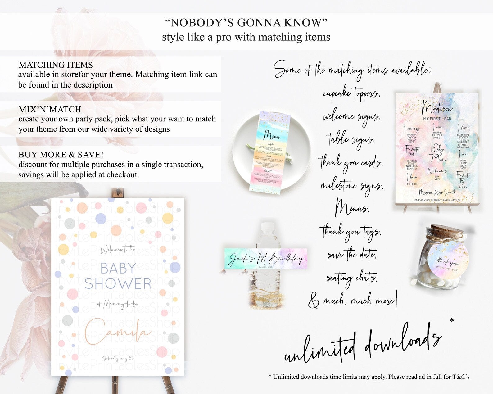 Rainbow Baby Shower Welcome Sign Pastel Welcome Board Pastel Rainbow Confetti Welcome Sign Colorful Bubbles Pastel Welcome Sign D10759