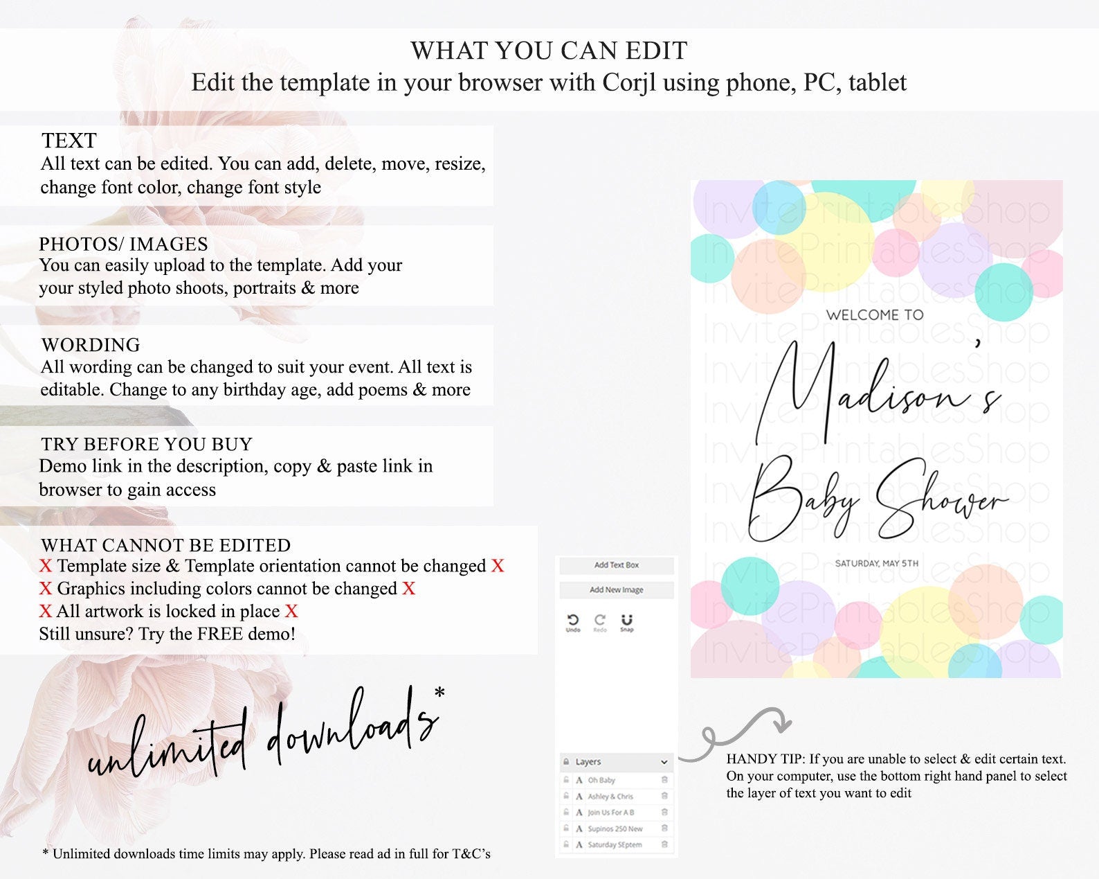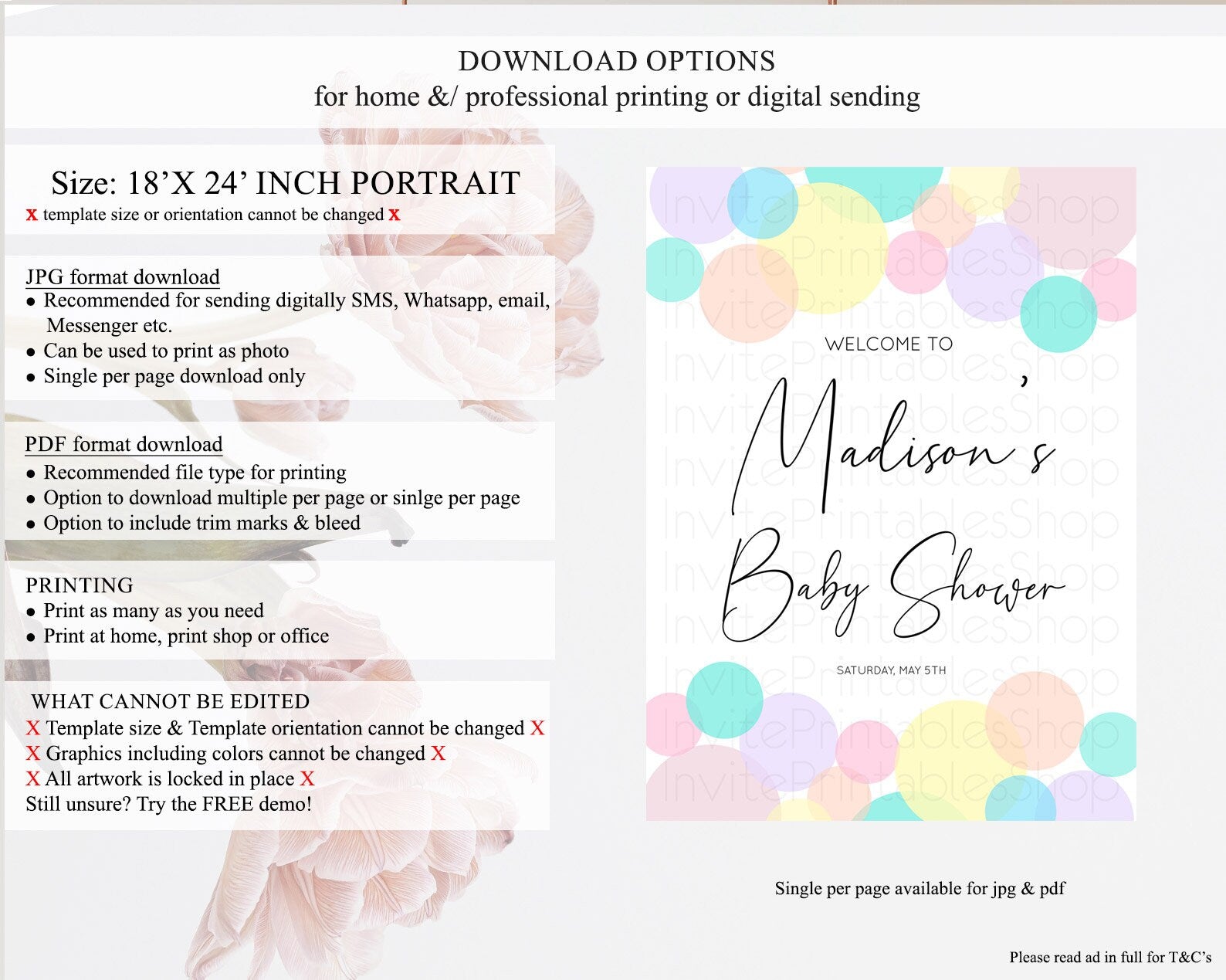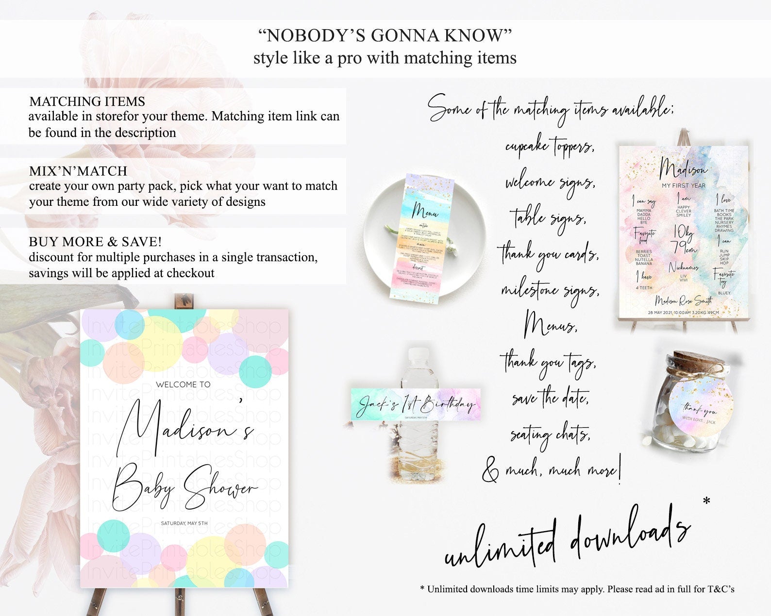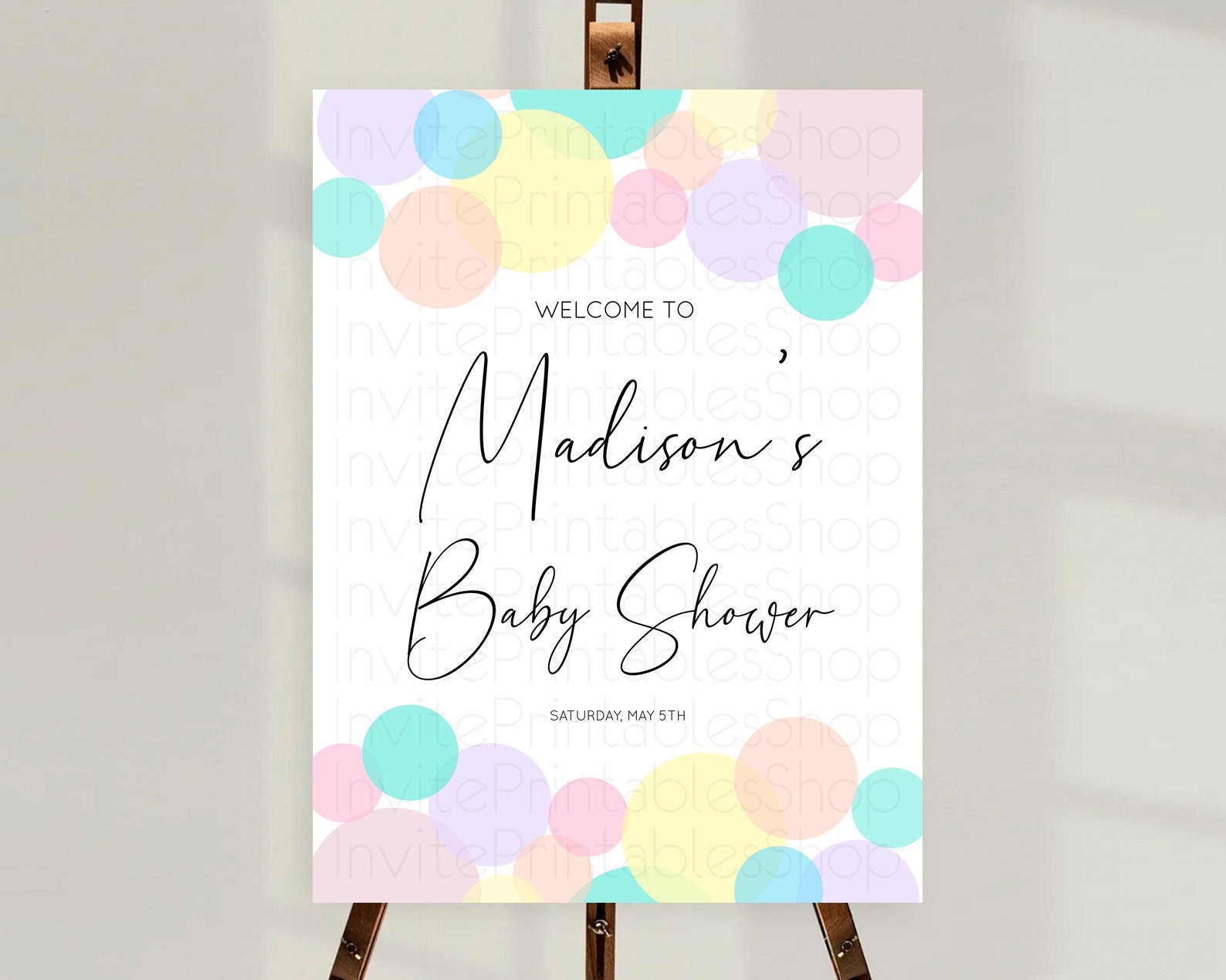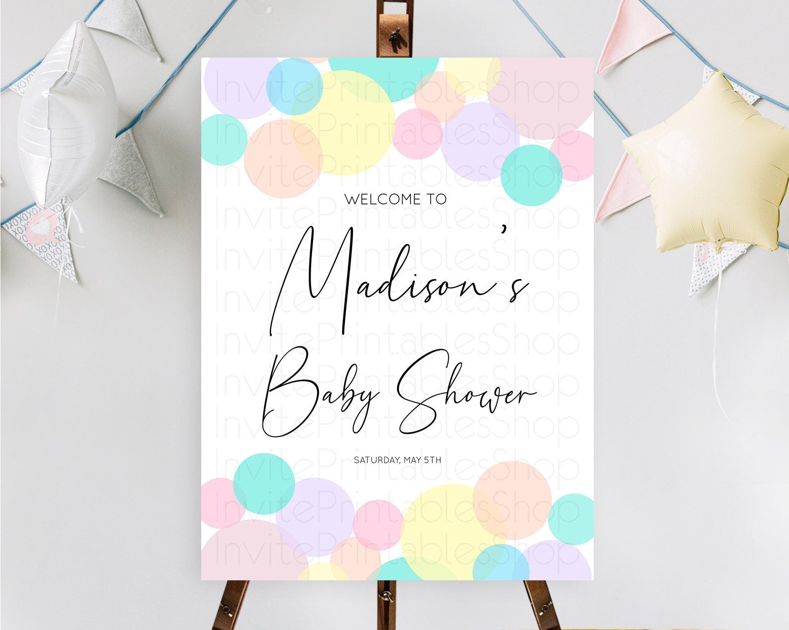 Rainbow Baby Shower Welcome Sign Pastel Welcome Board Pastel Rainbow Confetti Welcome Sign Colorful Bubbles Pastel Welcome Sign D10784