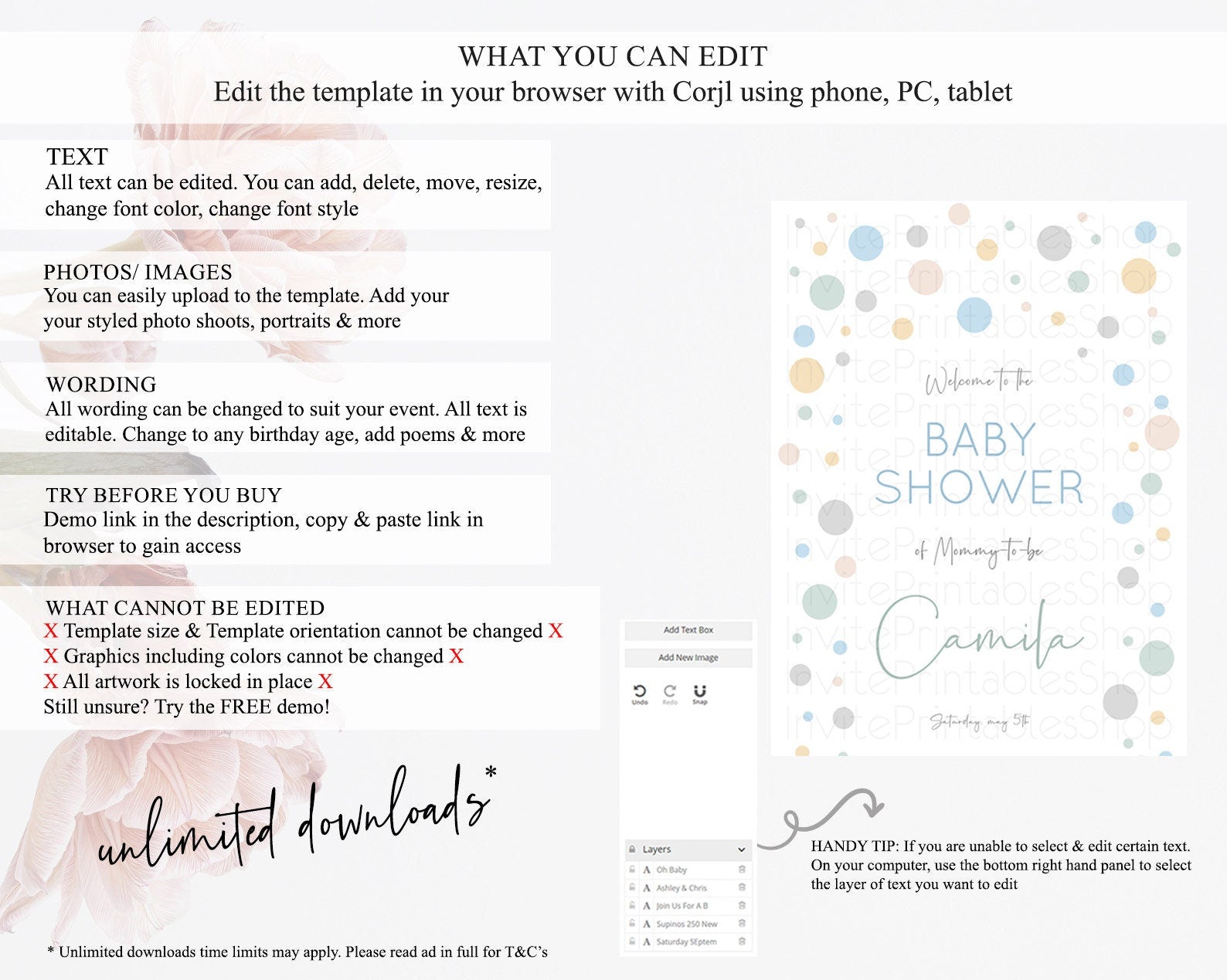 Rainbow Baby Shower Welcome Sign Pastel Welcome Board Pastel Rainbow Confetti Welcome Sign Colorful Bubbles Pastel Welcome Sign D11021
