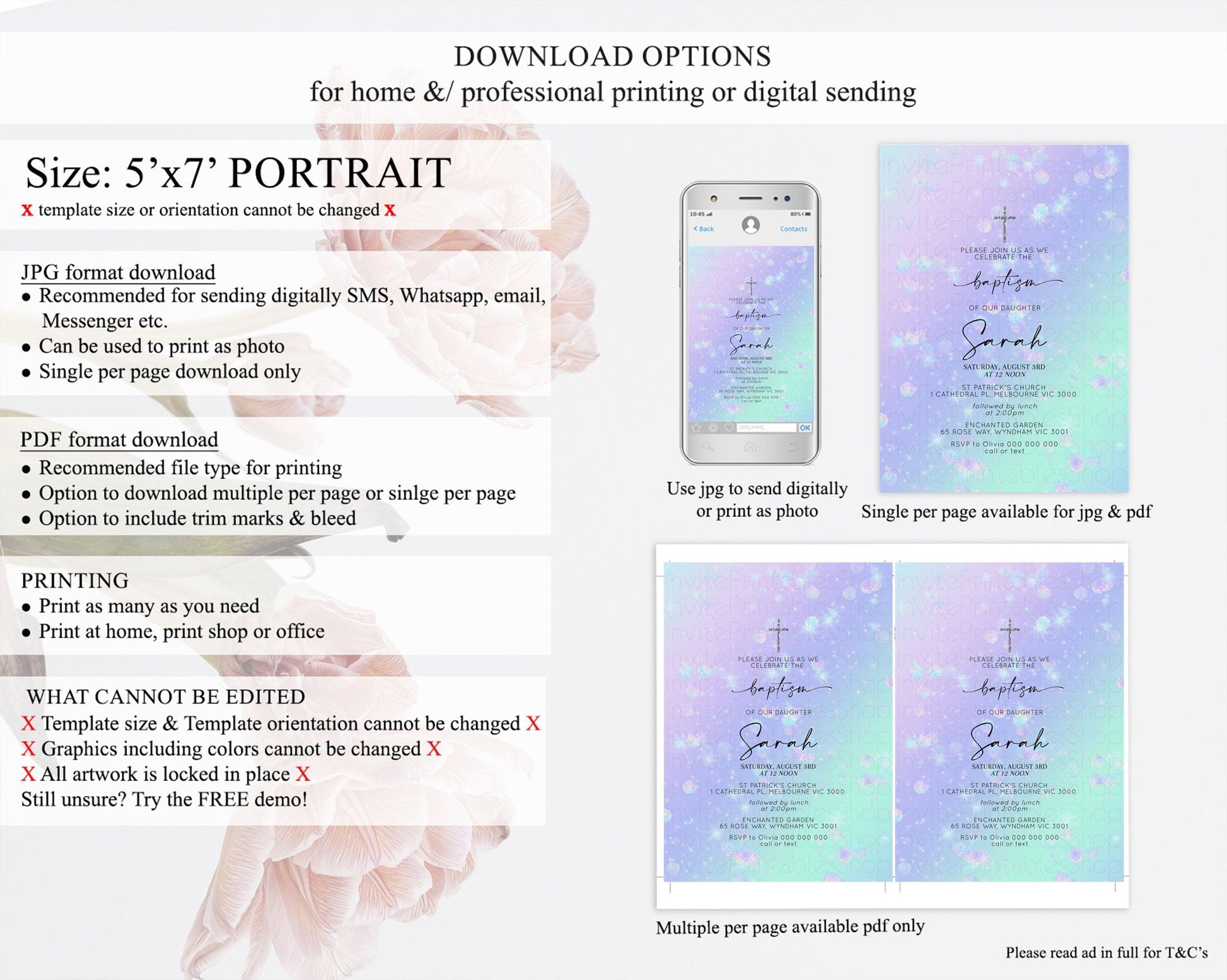 • Template size & orientation cannot be changed. Please use the demo link to confirm this product suits your needs.
