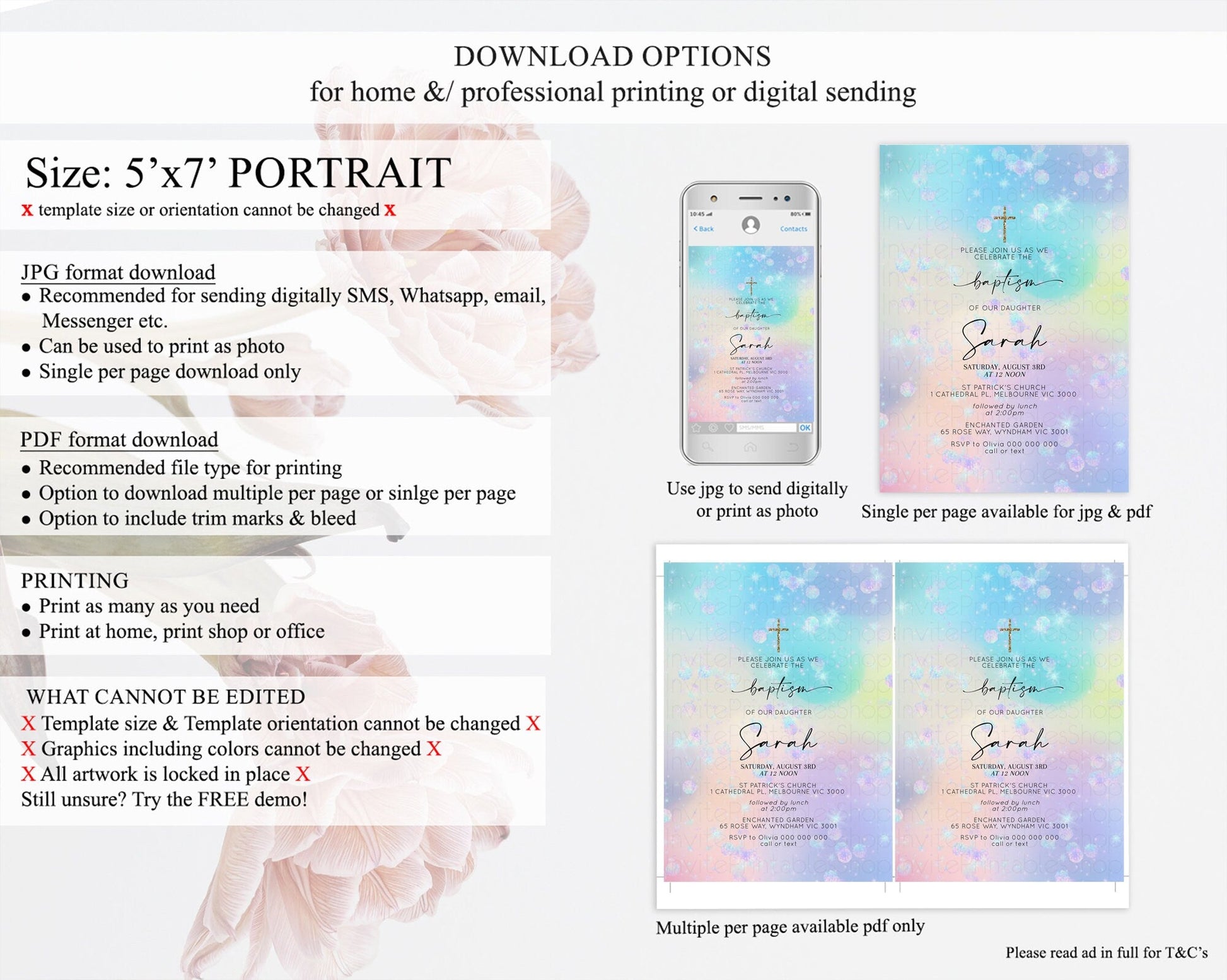• Template size & orientation cannot be changed. Please use the demo link to confirm this product suits your needs.