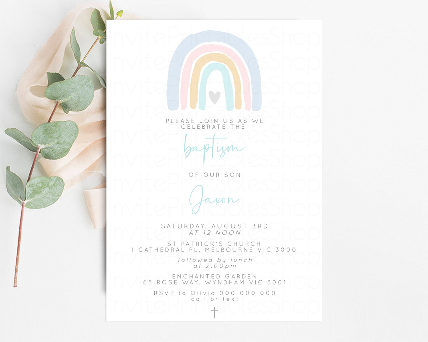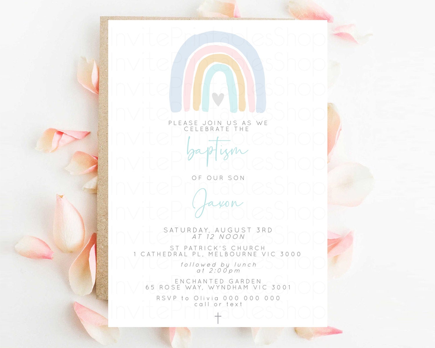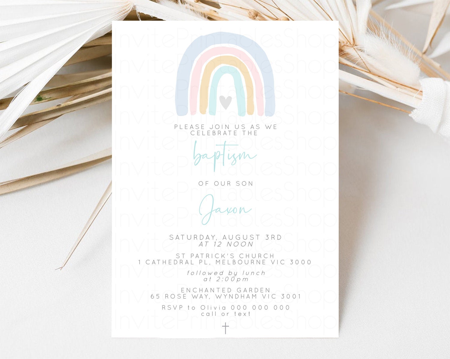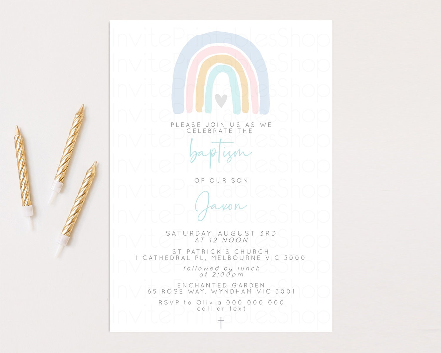 Rainbow Baptism Invitation Pastel Rainbow Christening Invitation Watercolor Boho Rainbow Invite Pastel Colors Rainbow Heart Invite Cross 19