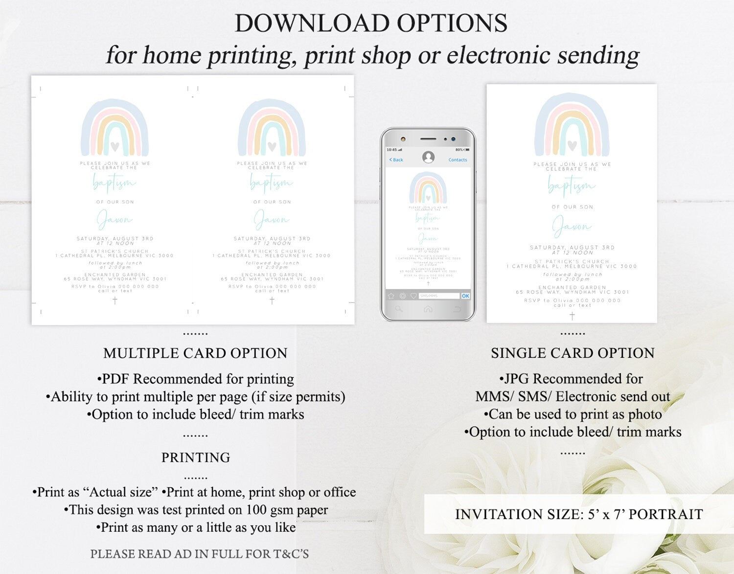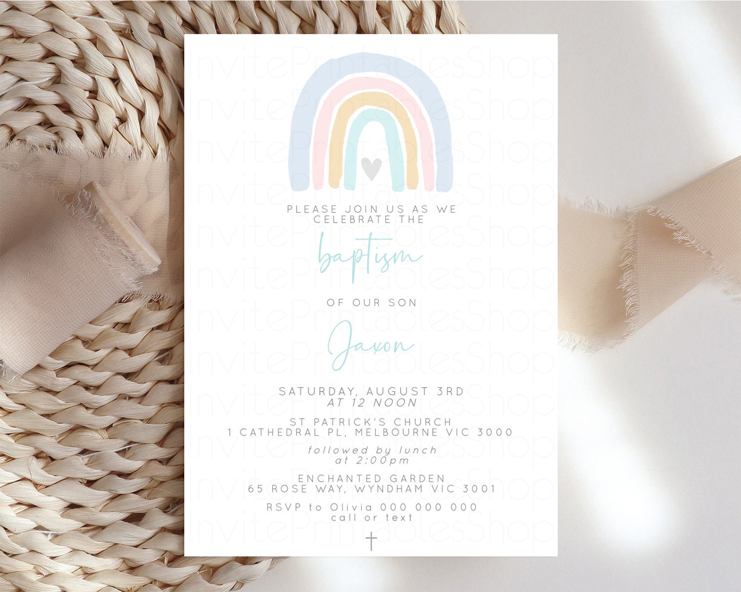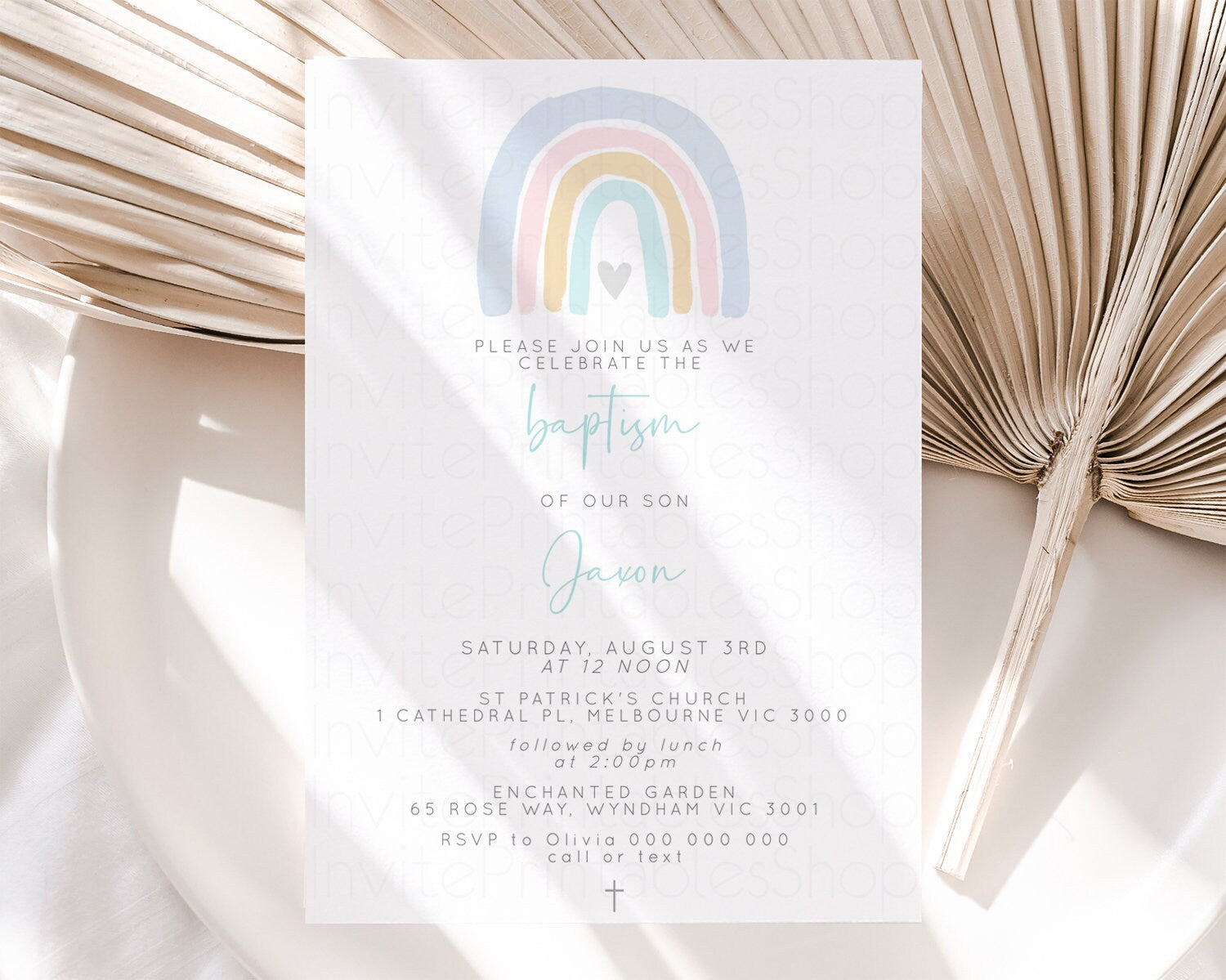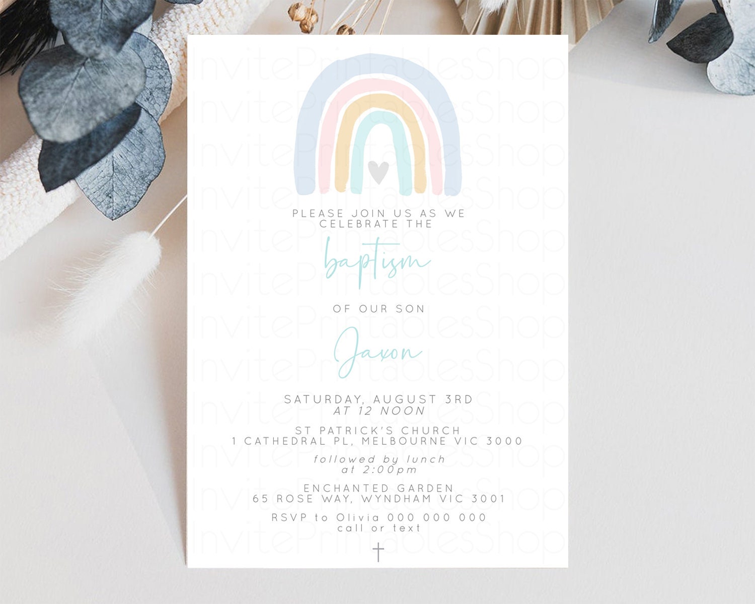 Rainbow Baptism Invitation Pastel Rainbow Christening Invitation Watercolor Boho Rainbow Invite Pastel Colors Rainbow Heart Invite Cross 19