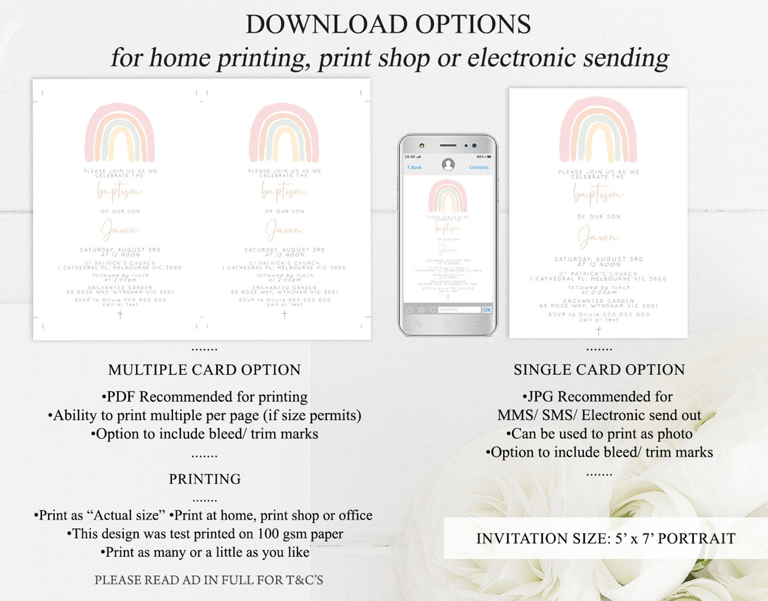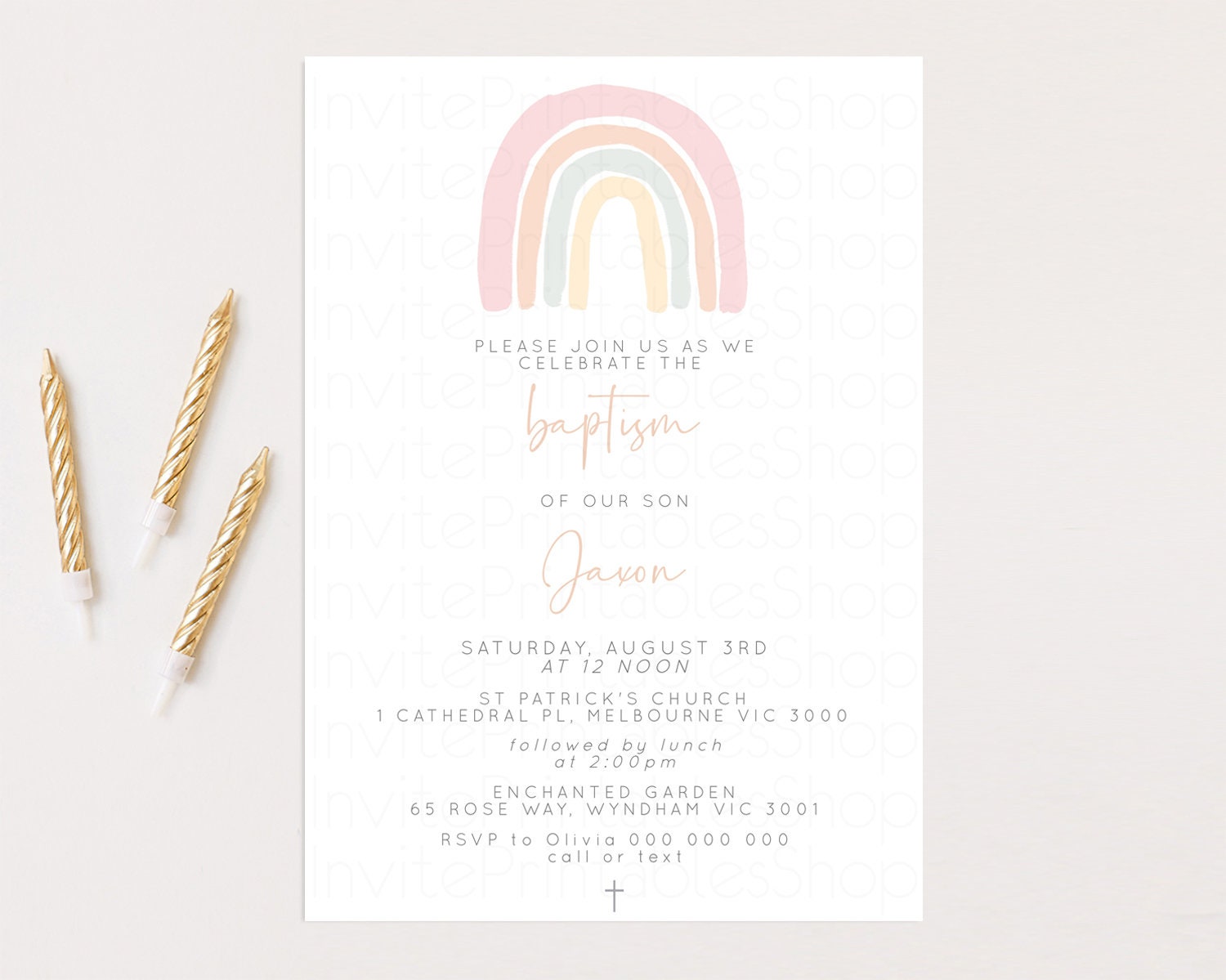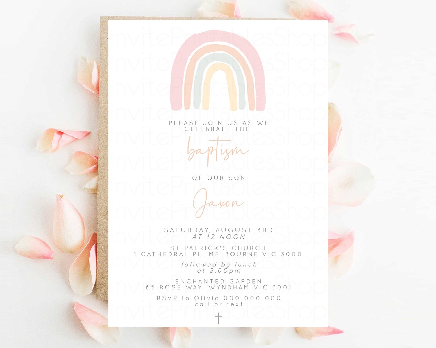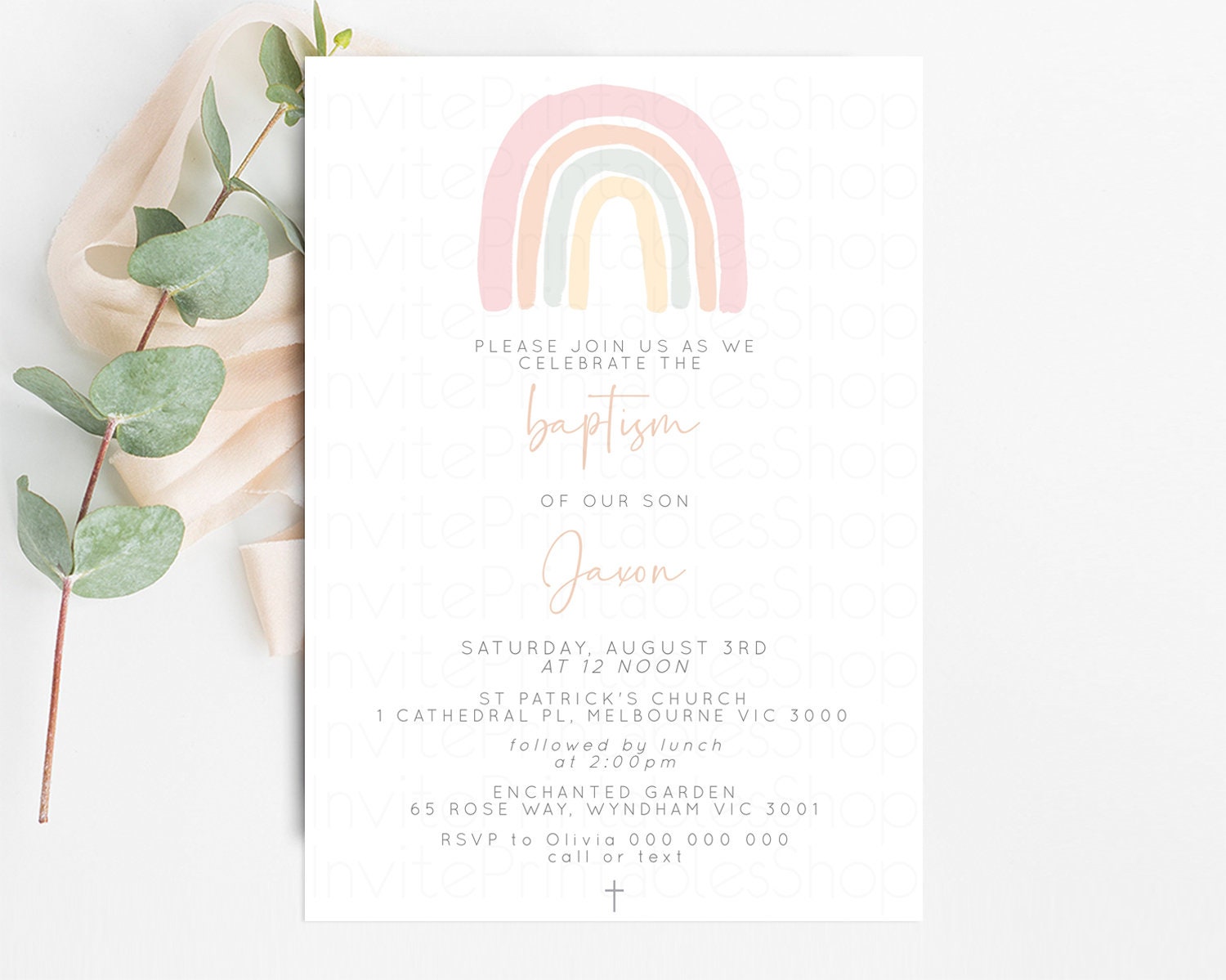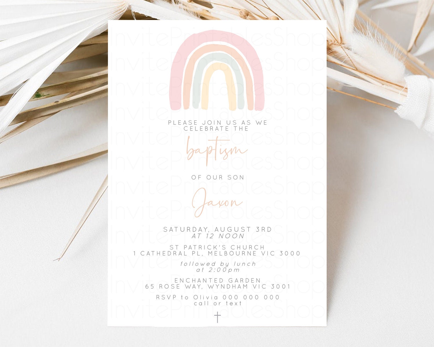 Rainbow Baptism Invitation Pastel Rainbow Christening Invitation Watercolor Rainbow Invite Colorful Rainbow Invite Boho Rainbow Pastel 14