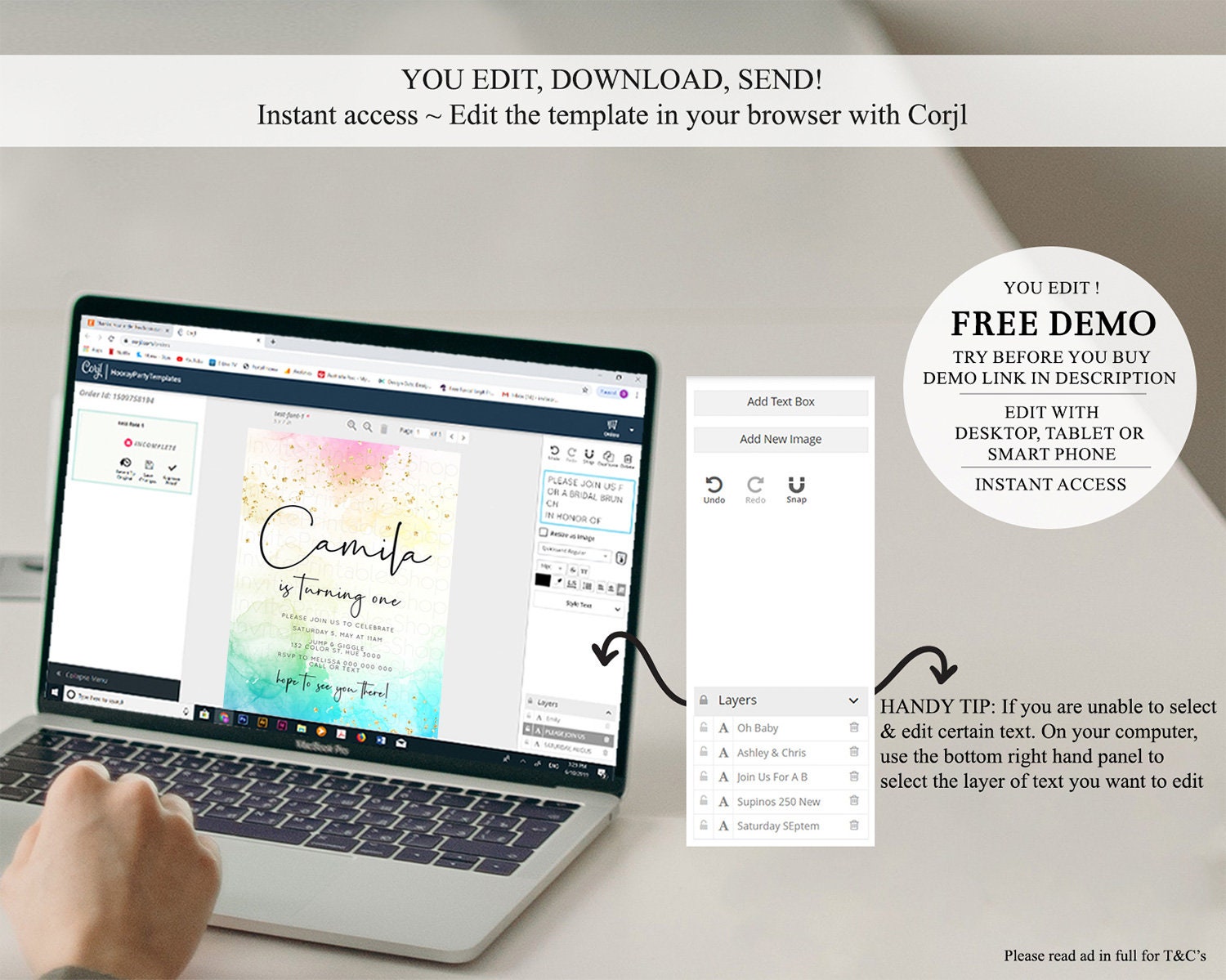 • After purchase, Corjl emails your editing link. Allow up to 15 minutes for delivery.