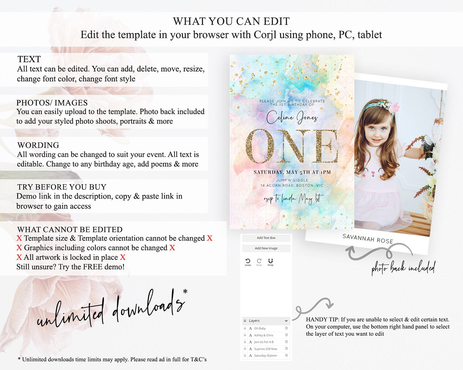 • After purchase, Corjl emails your editing link. Allow up to 15 minutes for delivery.