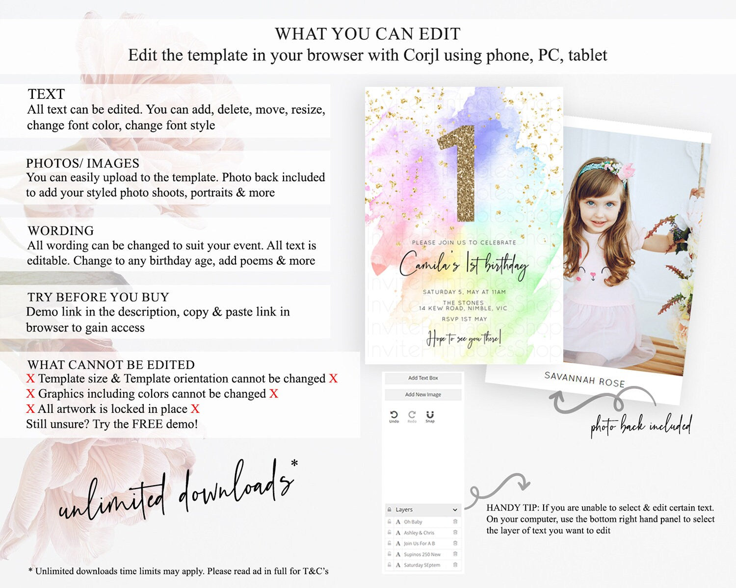 • After purchase, Corjl emails your editing link. Allow up to 15 minutes for delivery.