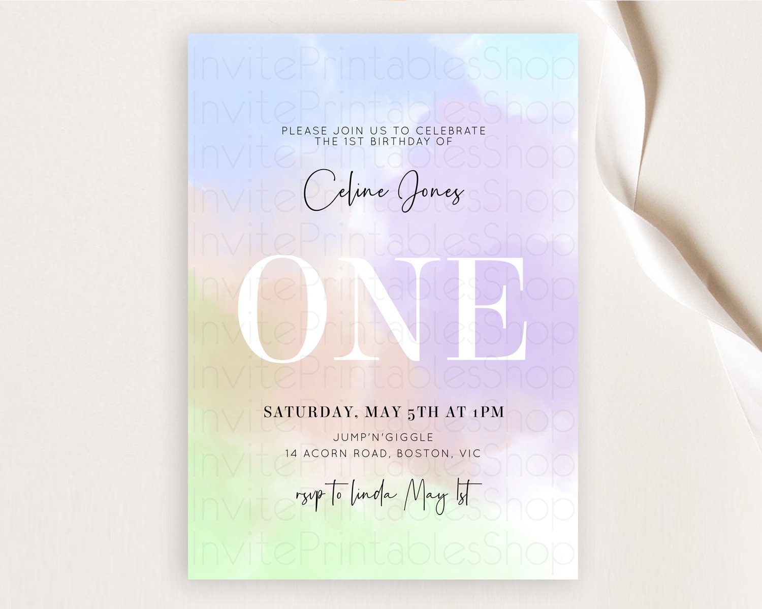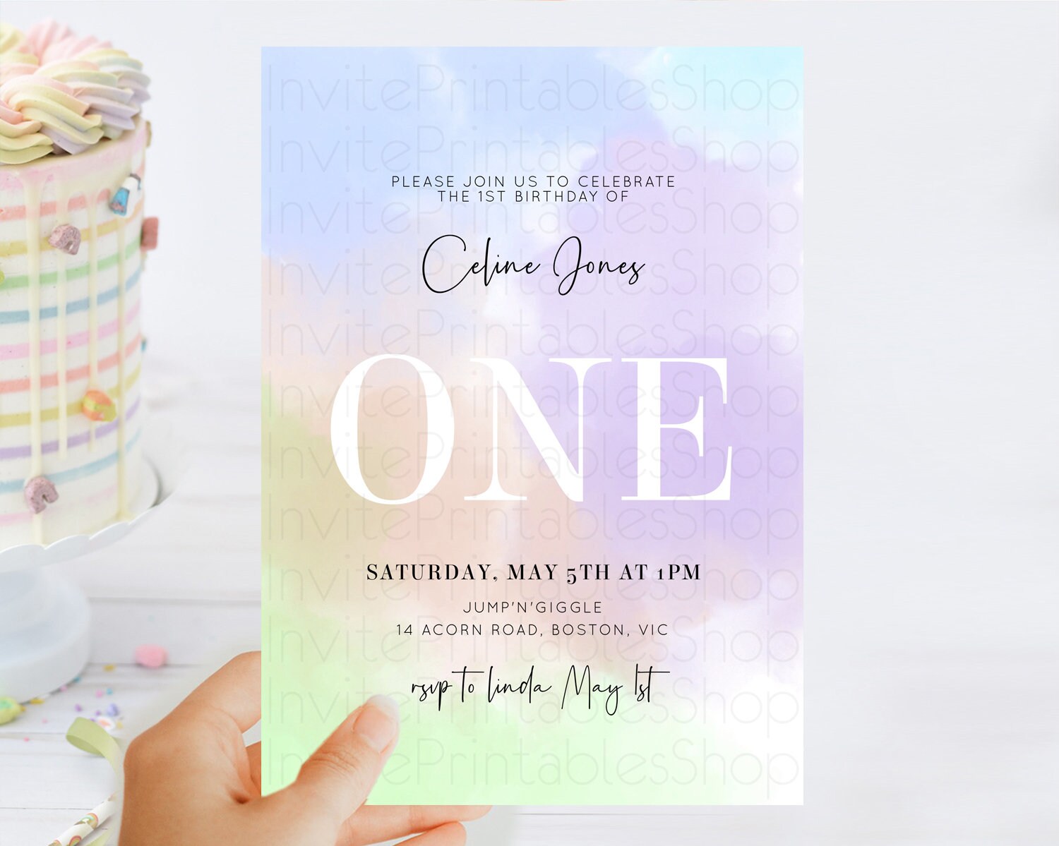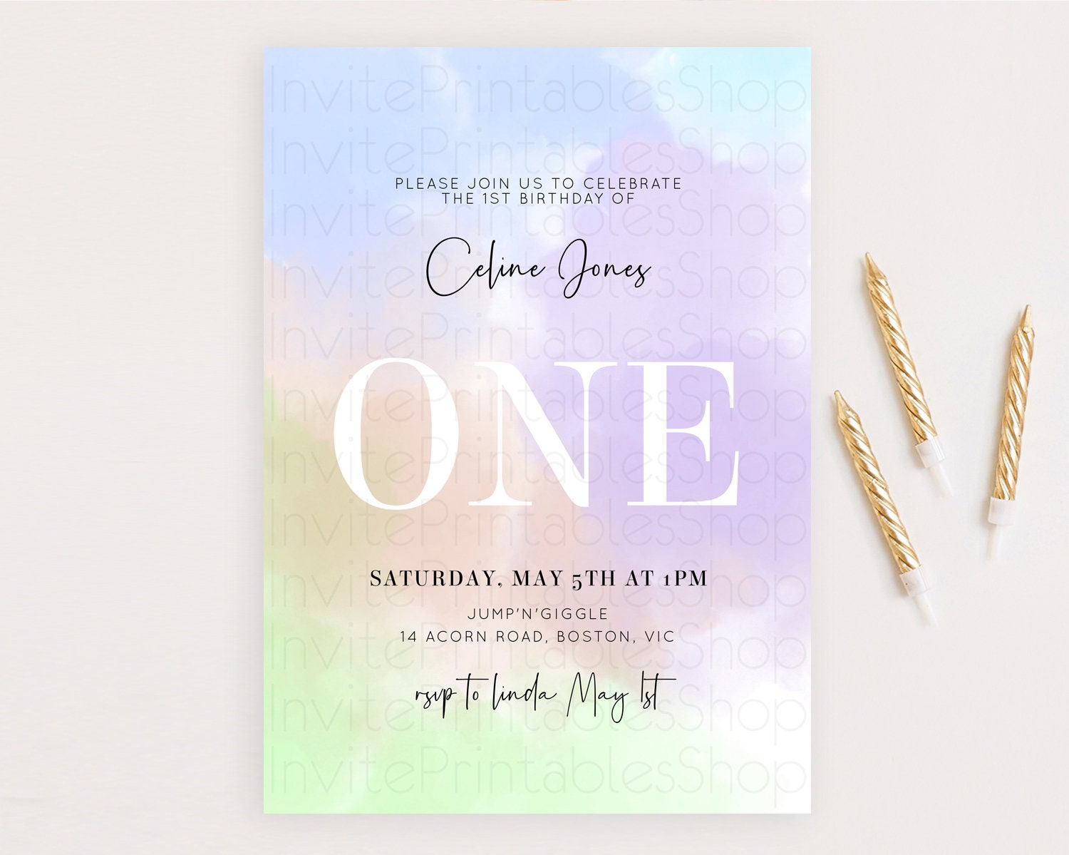 Rainbow Birthday Invitation Colorful Pastel Watercolor Invitation Gold Glitter Sprinkles Ombre Pastel 1st 2nd 3rd Birthday D10371
