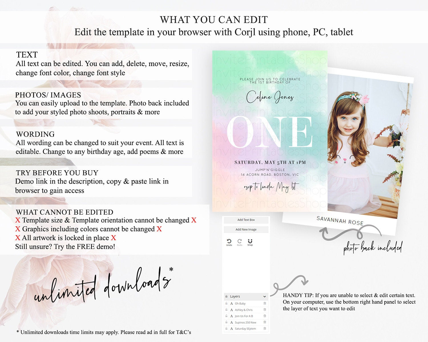 • After purchase, Corjl emails your editing link. Allow up to 15 minutes for delivery.