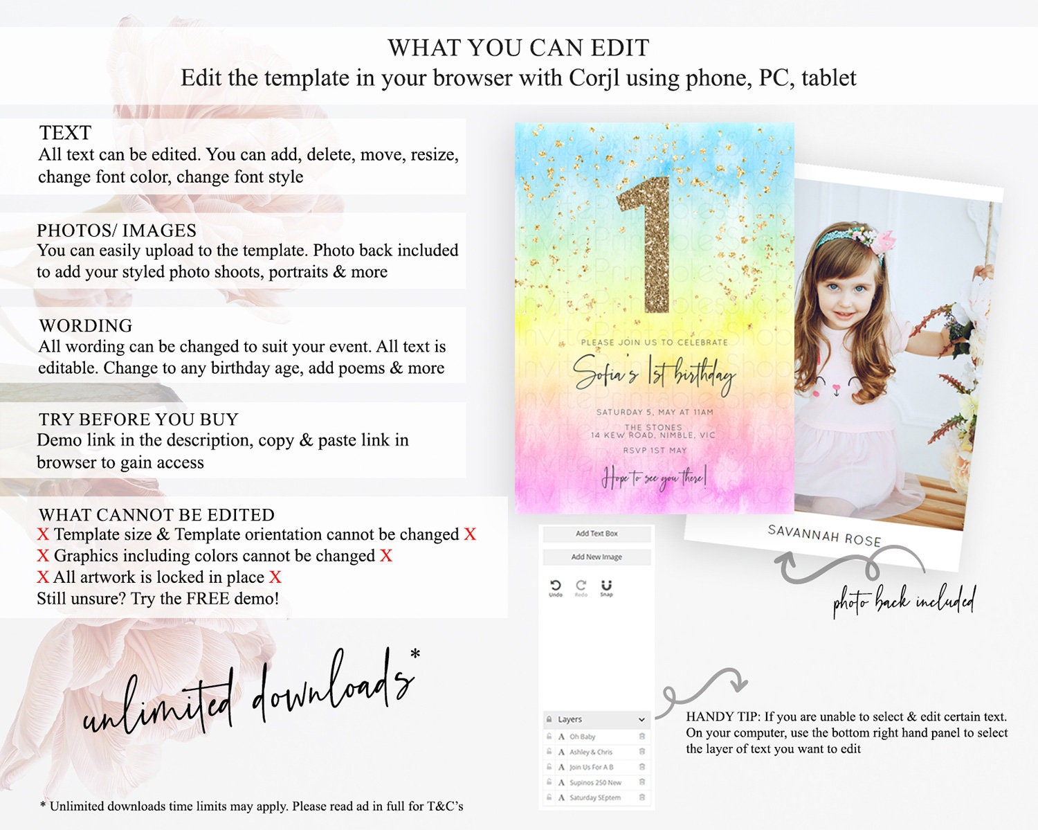 • After purchase, Corjl emails your editing link. Allow up to 15 minutes for delivery.