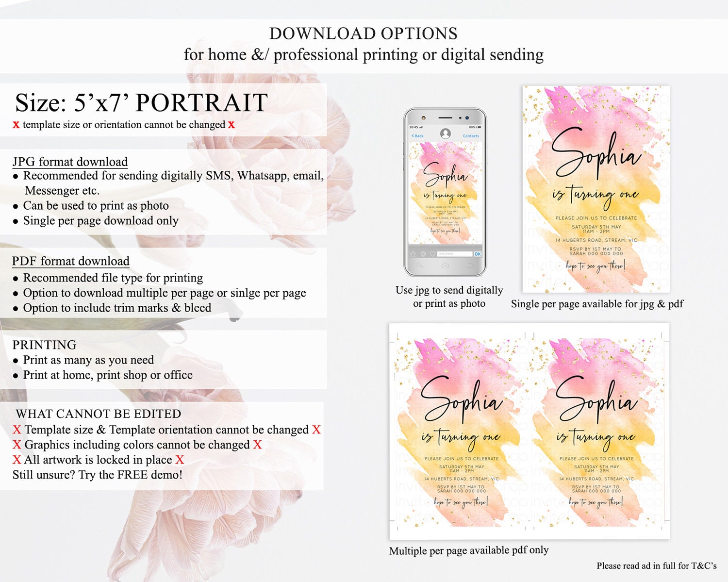 • Template size & orientation cannot be changed. Please use the demo link to confirm this product suits your needs.