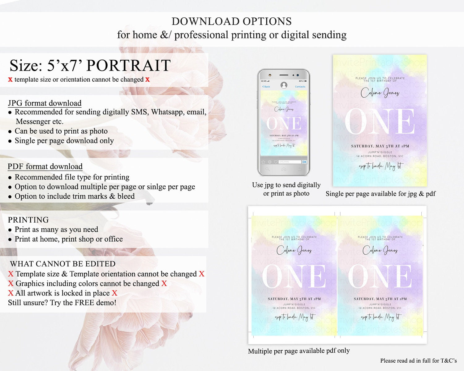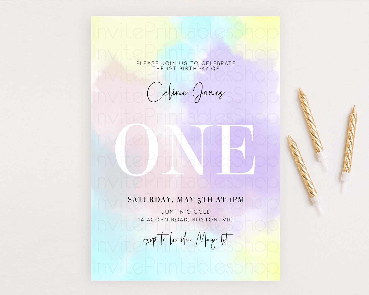 Rainbow Birthday Invitation Colorful Pastel Watercolor Invitation Gold Glitter Sprinkles Ombre Pastel 1st 2nd 3rd Birthday D10617