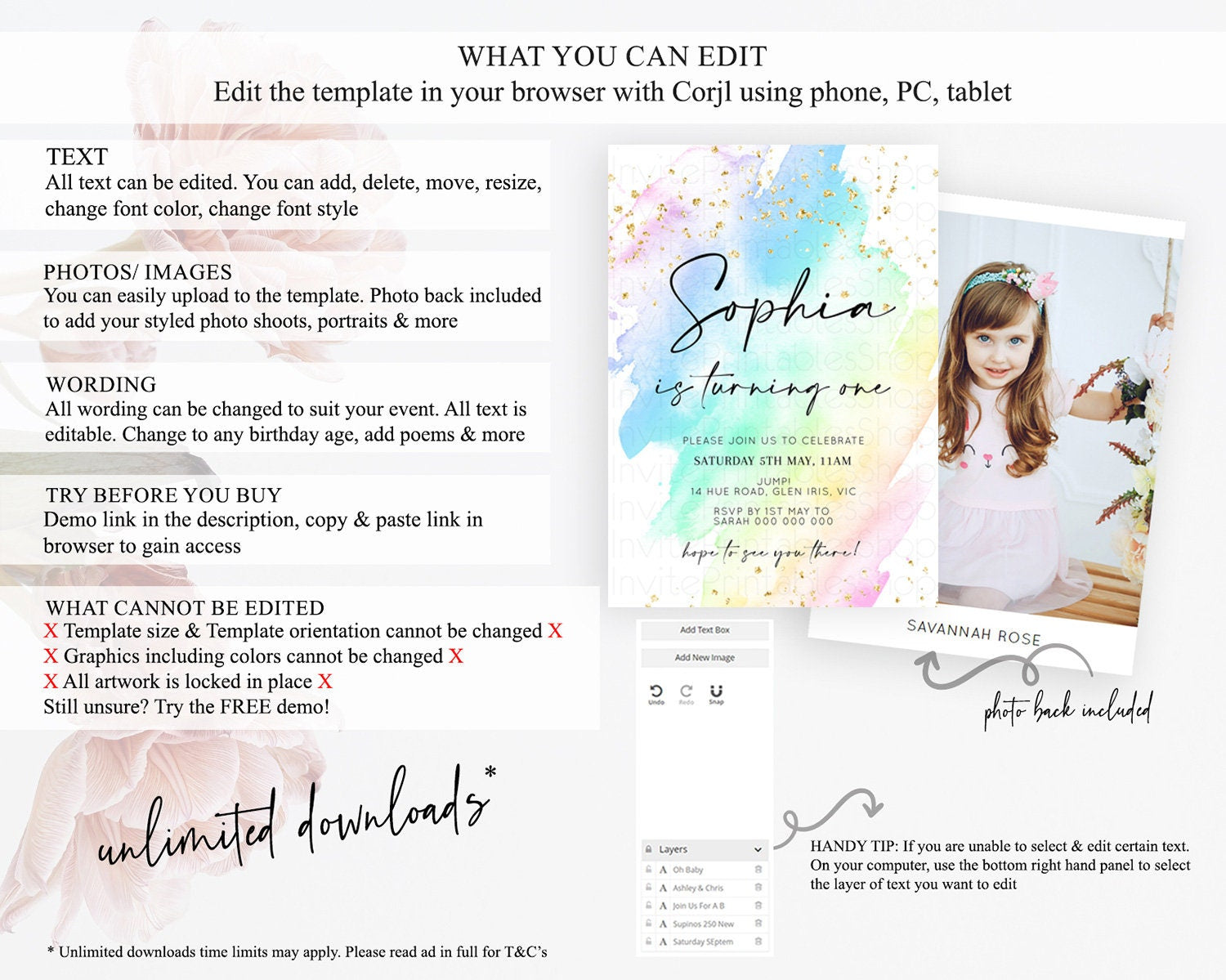 • After purchase, Corjl emails your editing link. Allow up to 15 minutes for delivery.