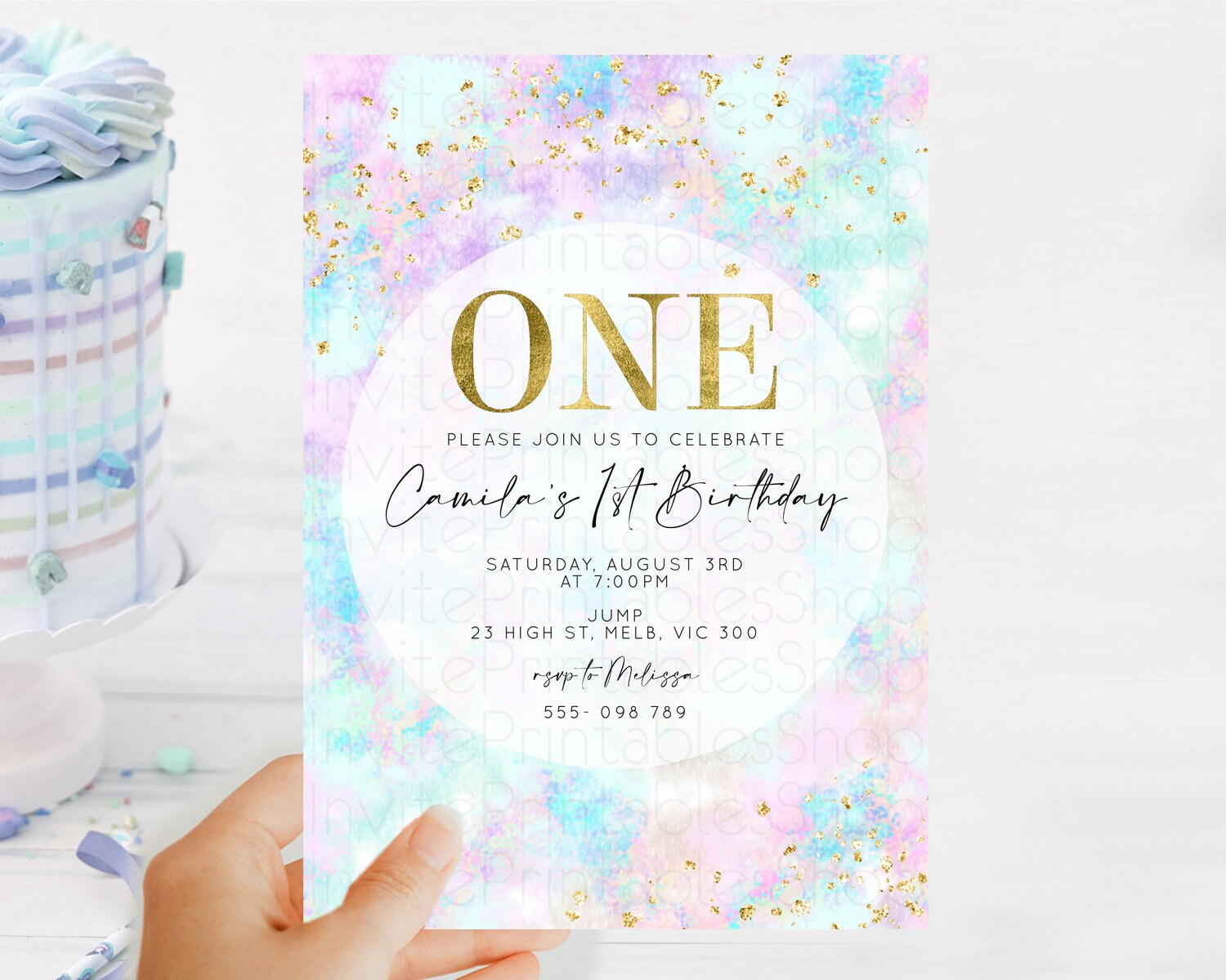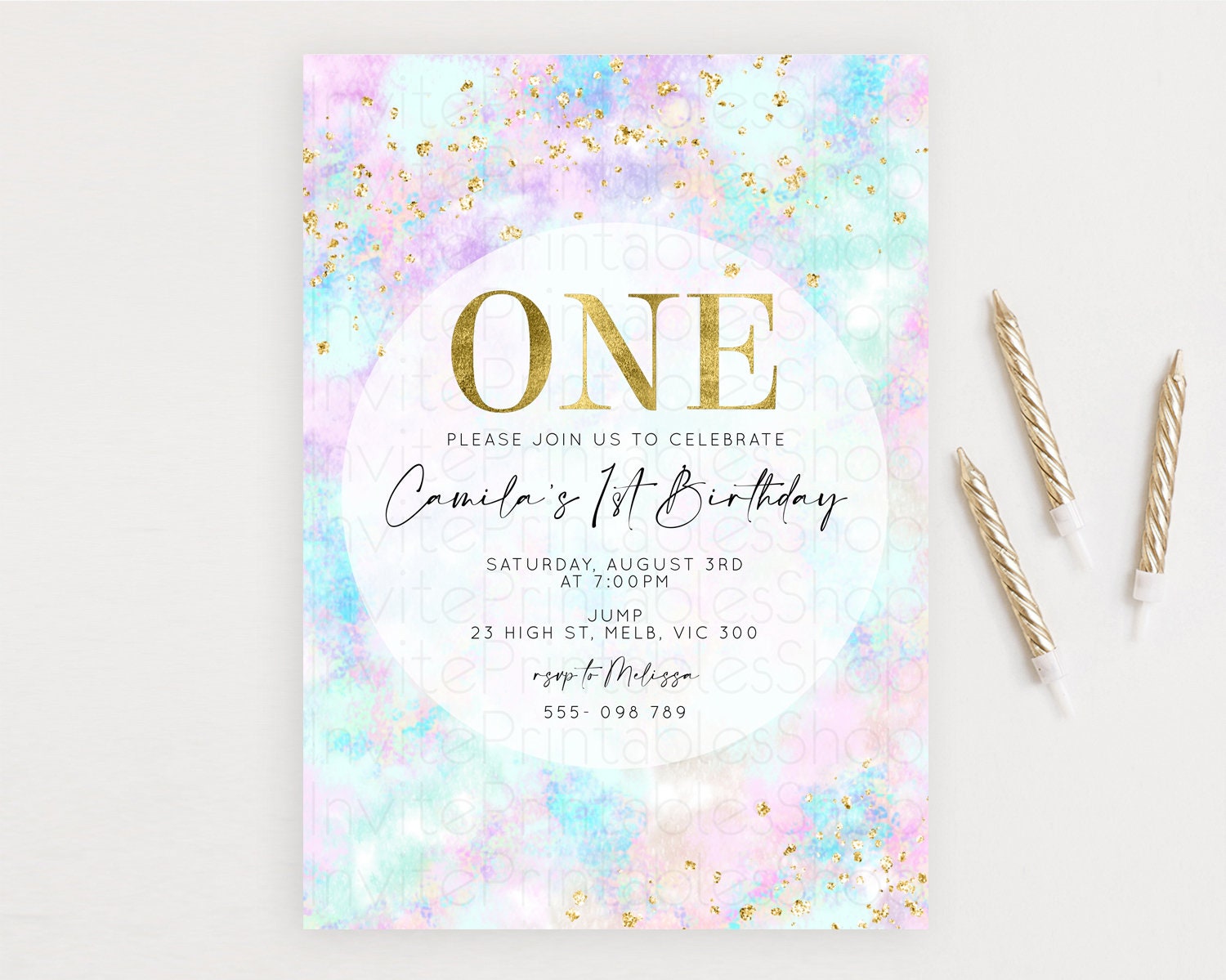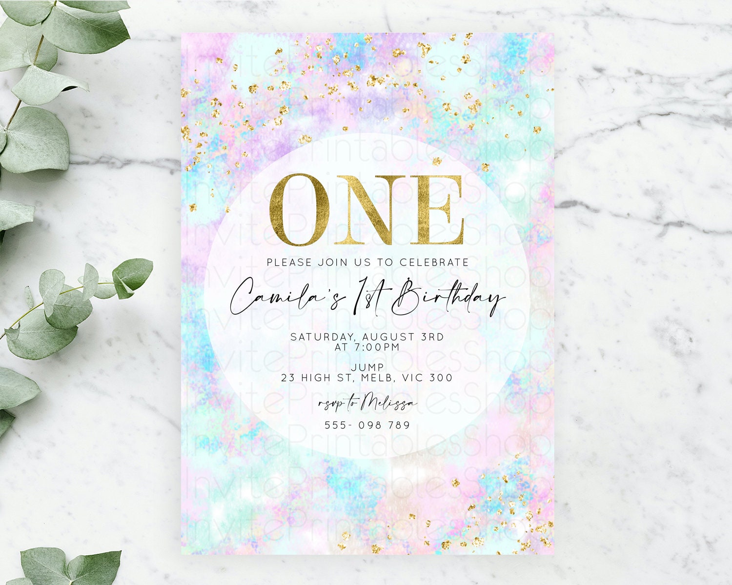 Rainbow Birthday Invitation Colorful Pastel Watercolor Invitation Gold Glitter Sprinkles Ombre Pastel 1st 2nd 3rd Birthday D10652