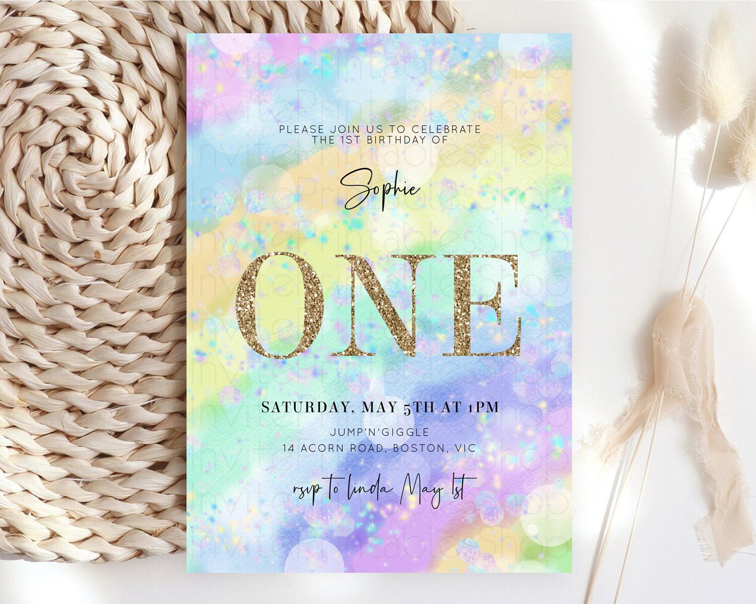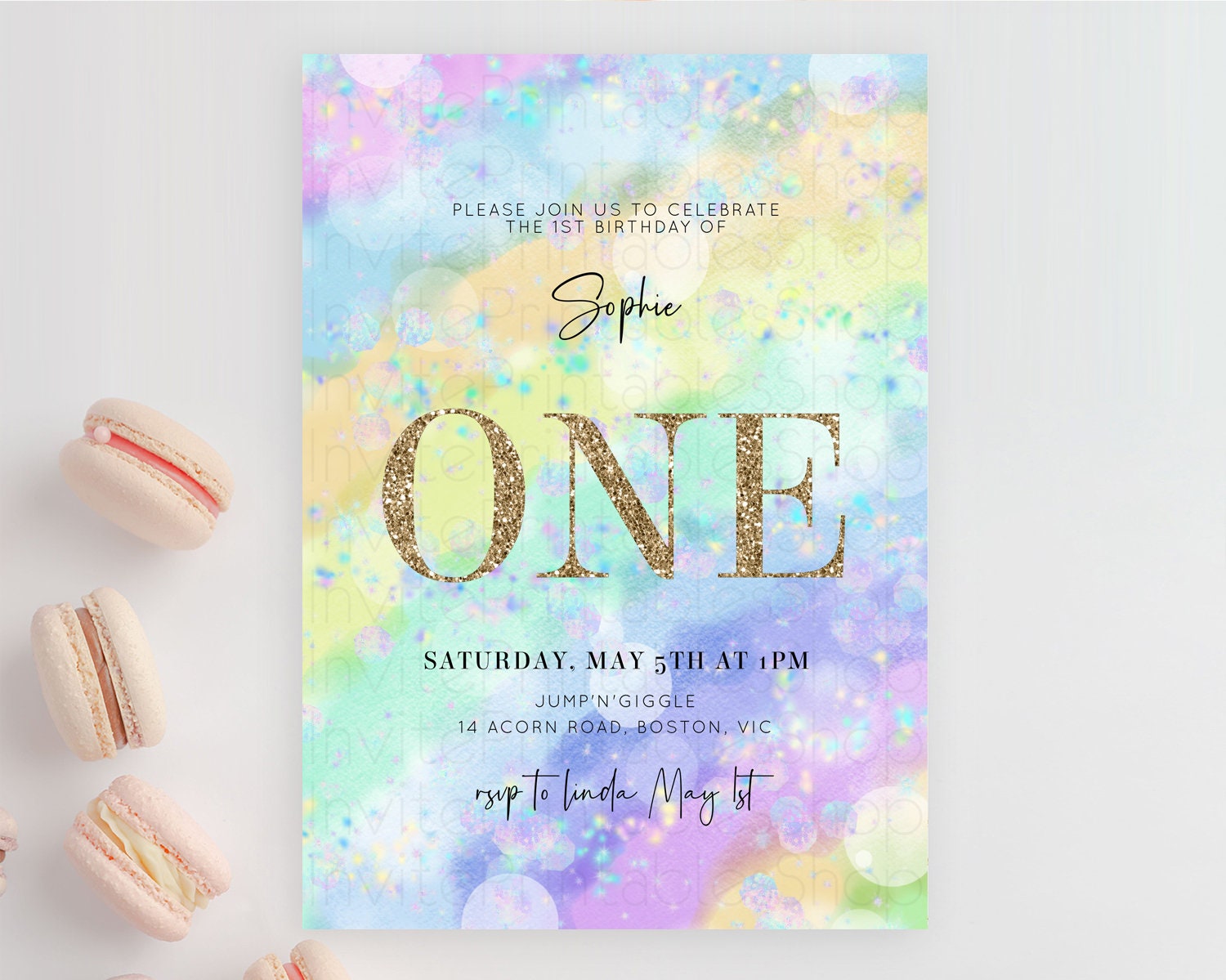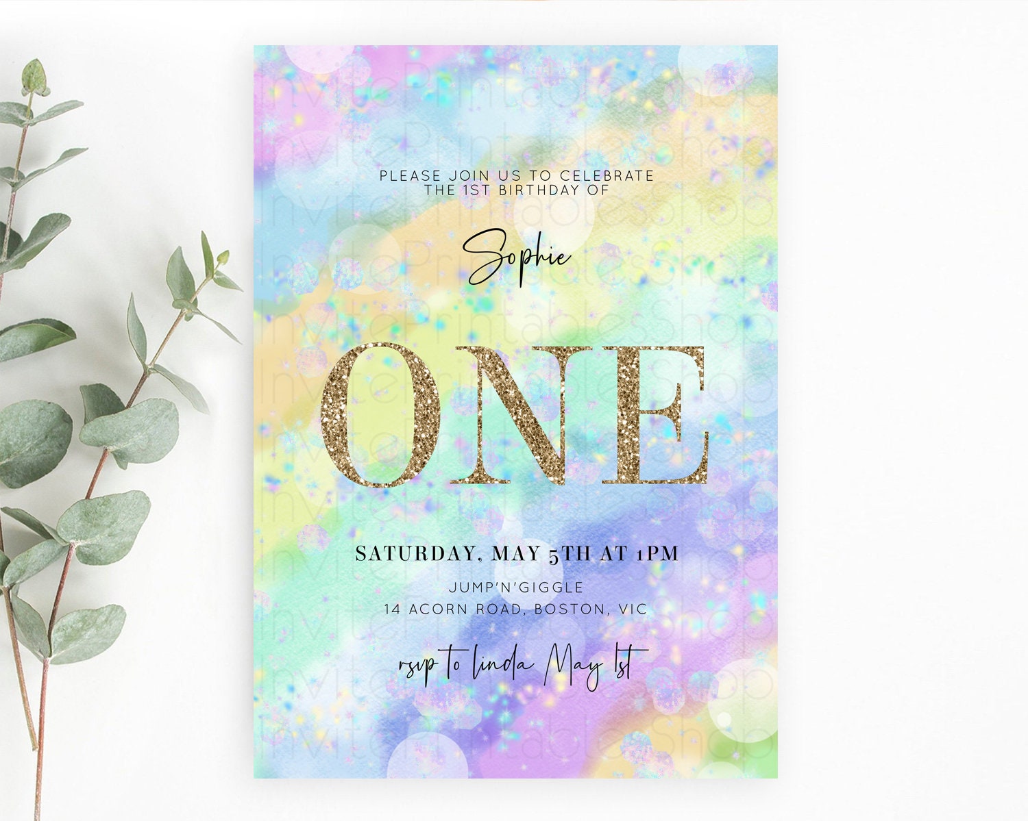 Rainbow Birthday Invitation Colorful Pastel Watercolor Invitation Gold Glitter Sprinkles Ombre Pastel 1st 2nd 3rd Birthday D10689